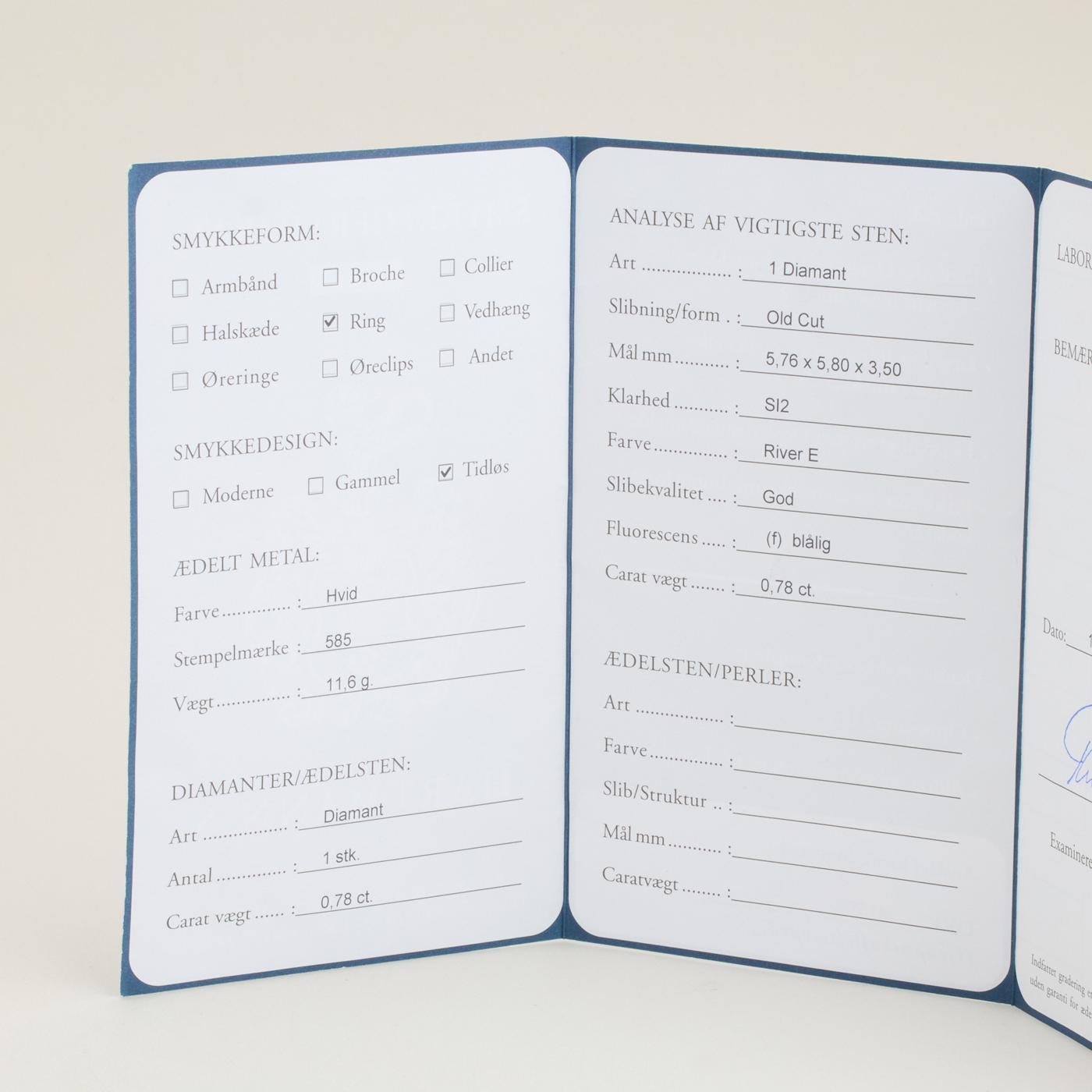 Hartmann's solitairering med diamant (0.78 ct) i 18 karat str. 54