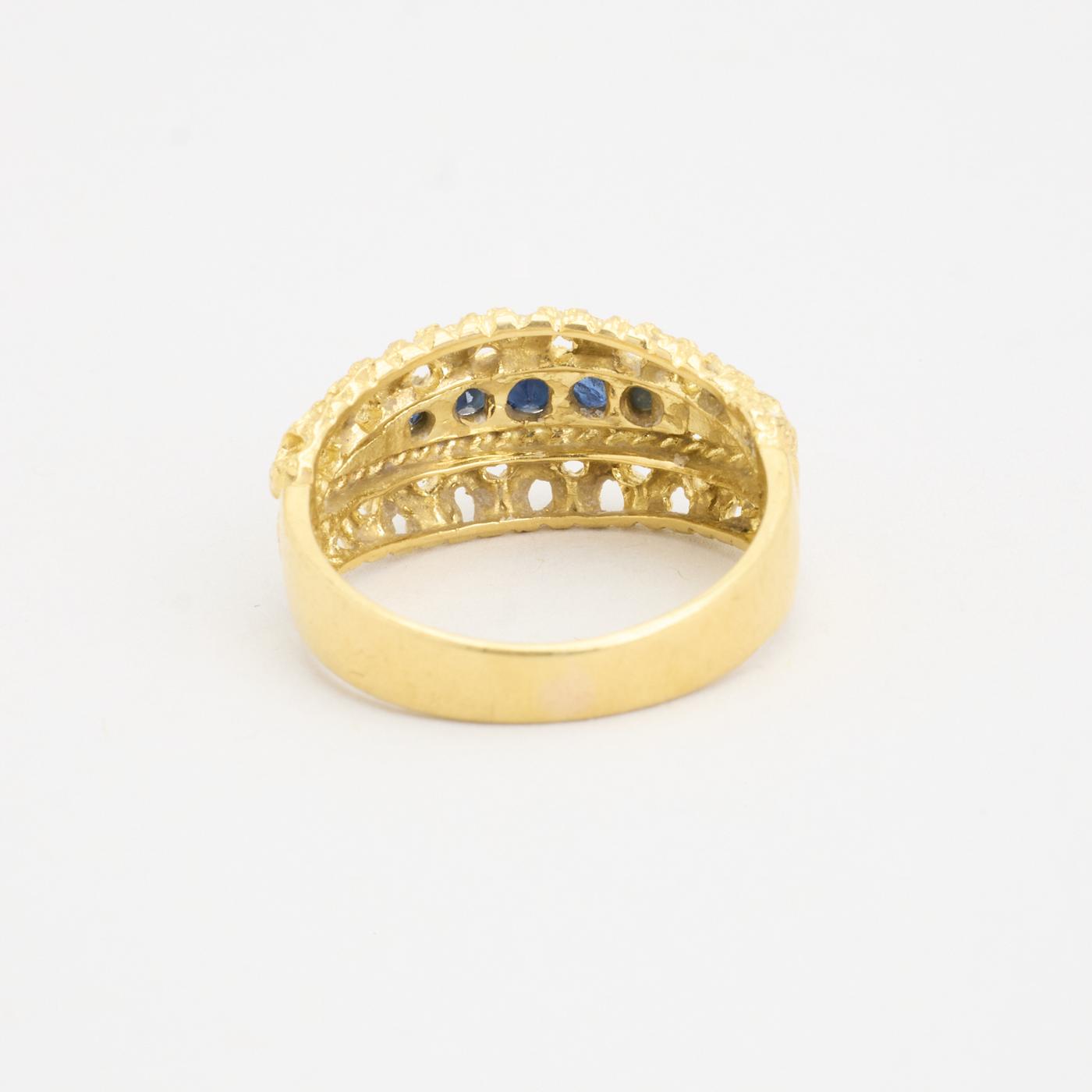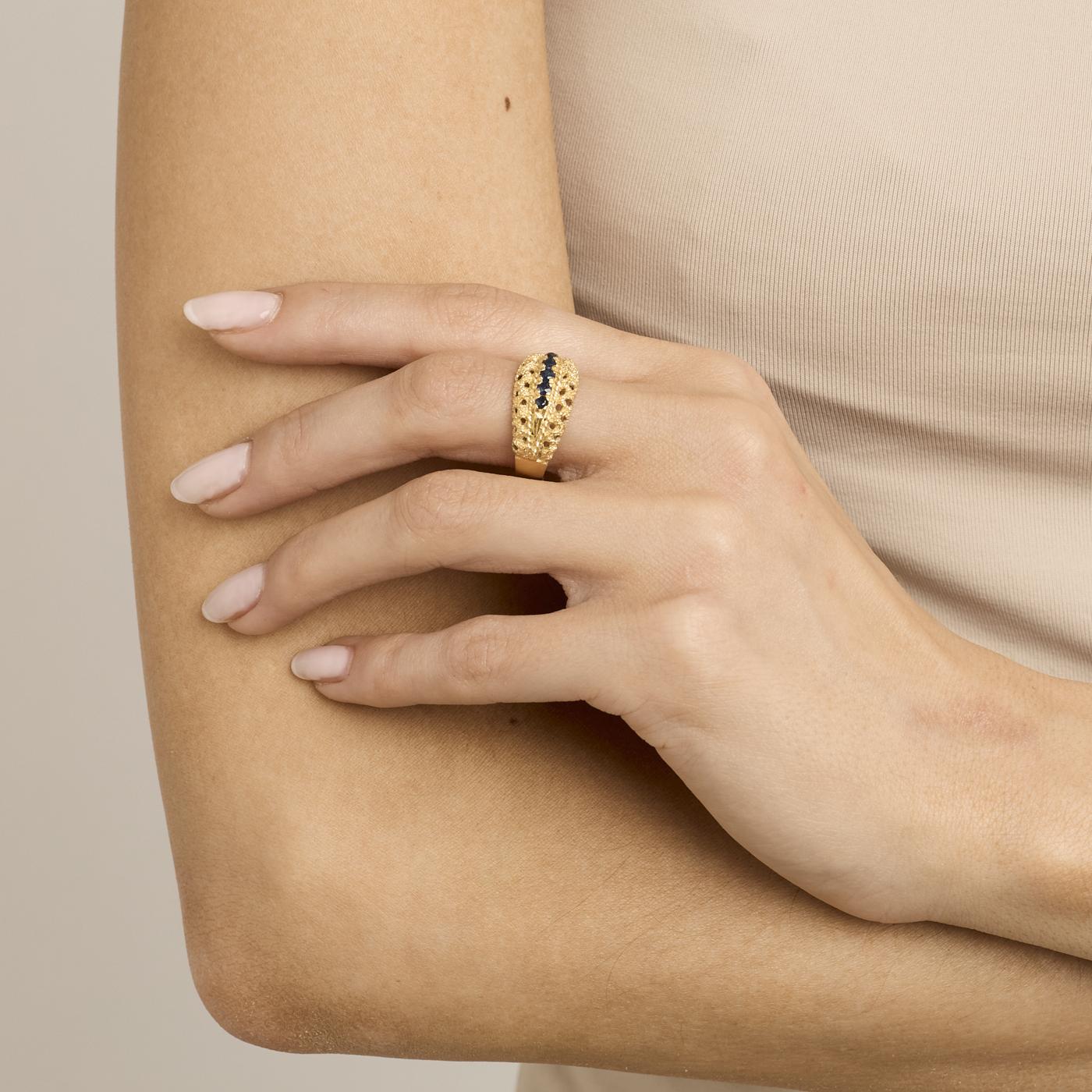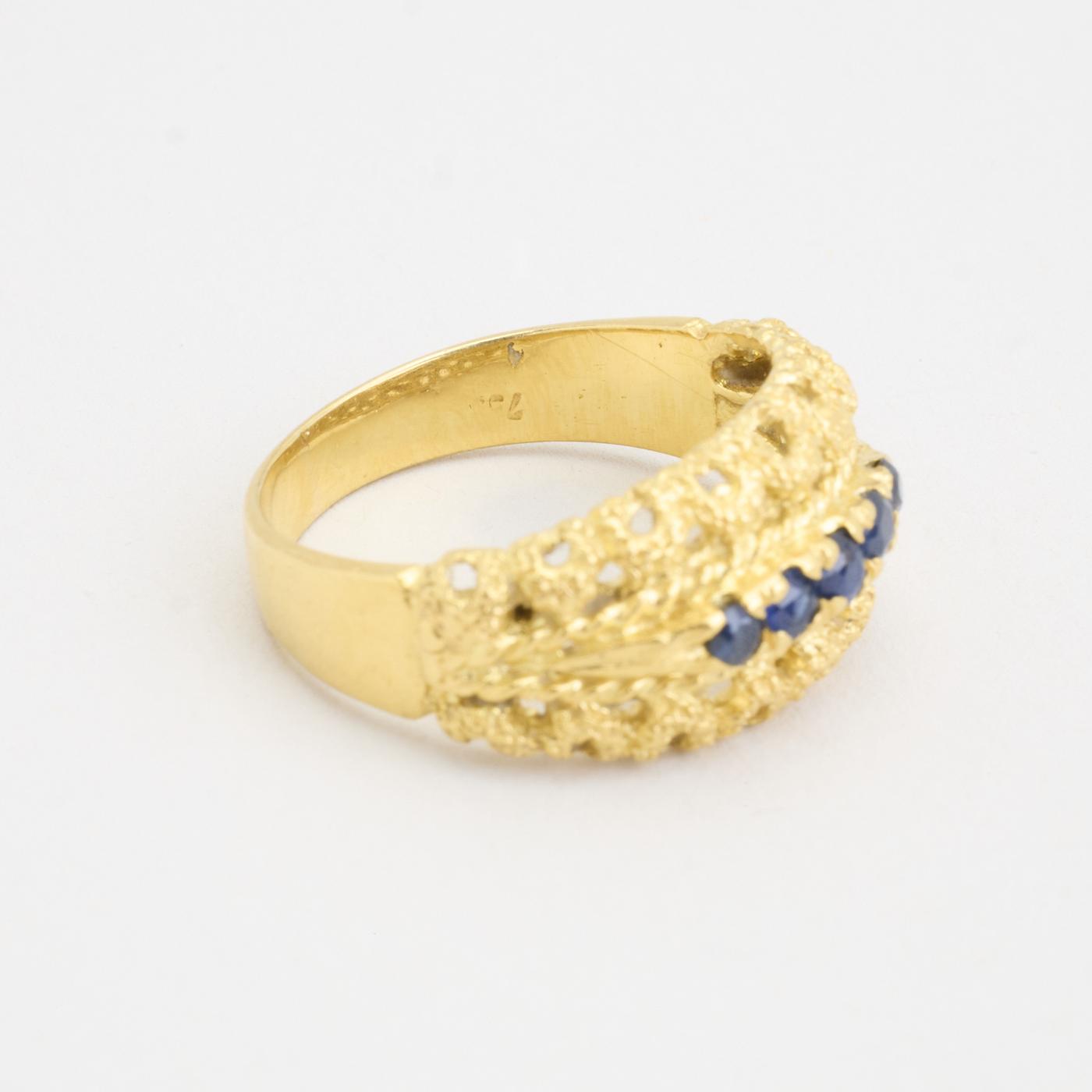 Statementring i 18K guld med syv blå facetterede sten, Str. 54