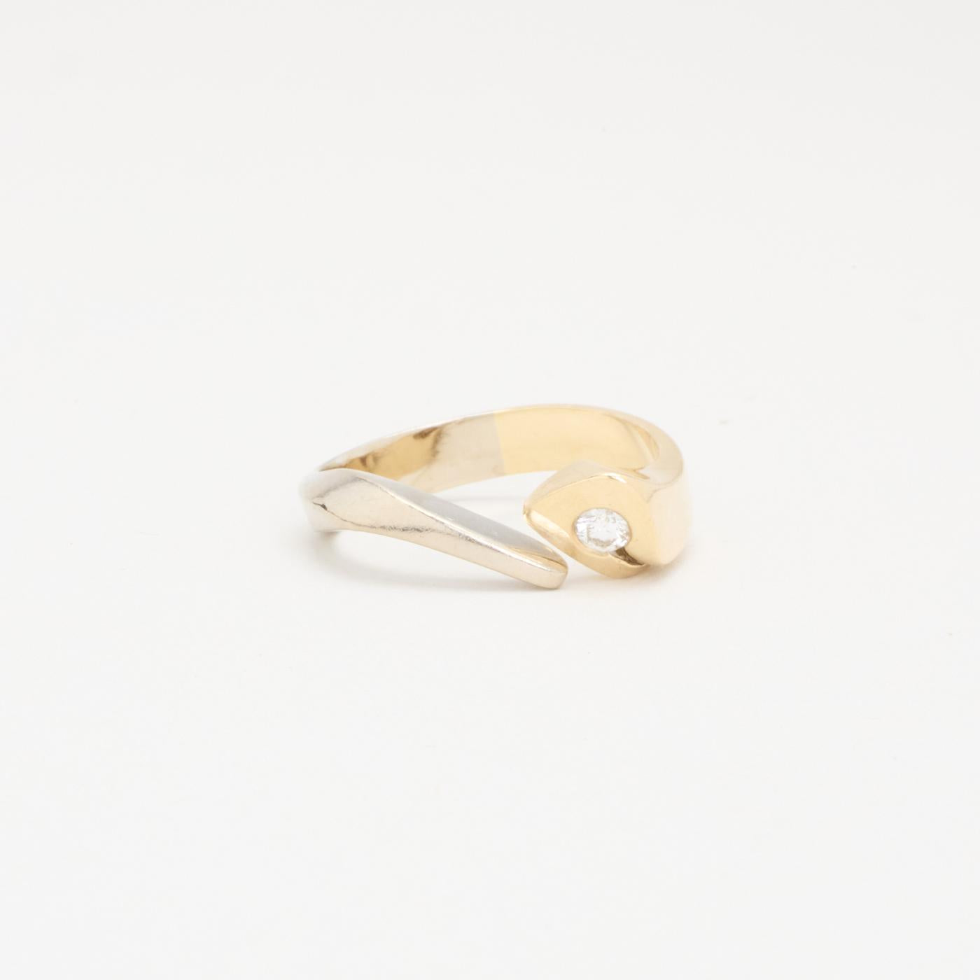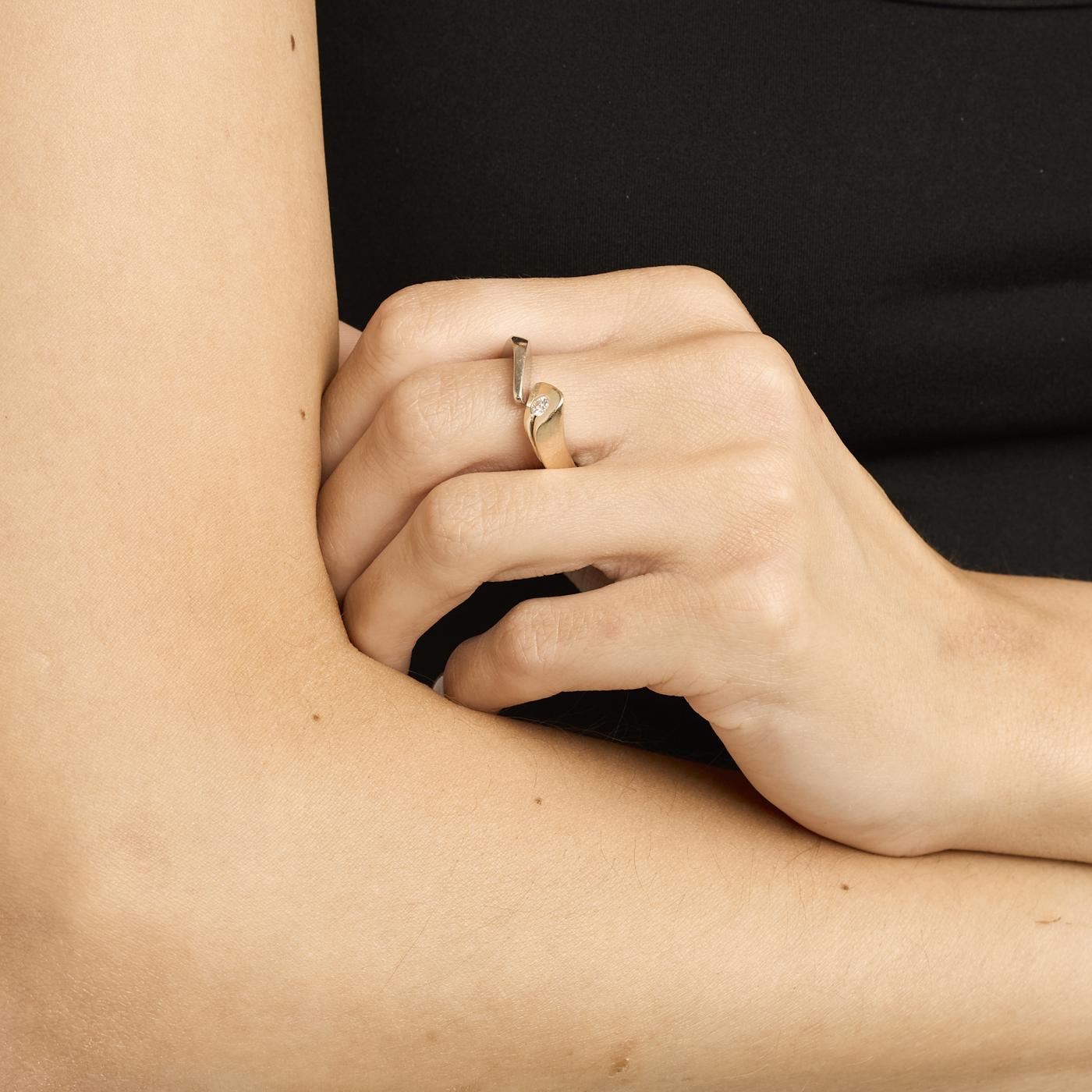 Per Borup ring i 14K guld og hvidguld med en diamant (0.11 ct), Str. 58