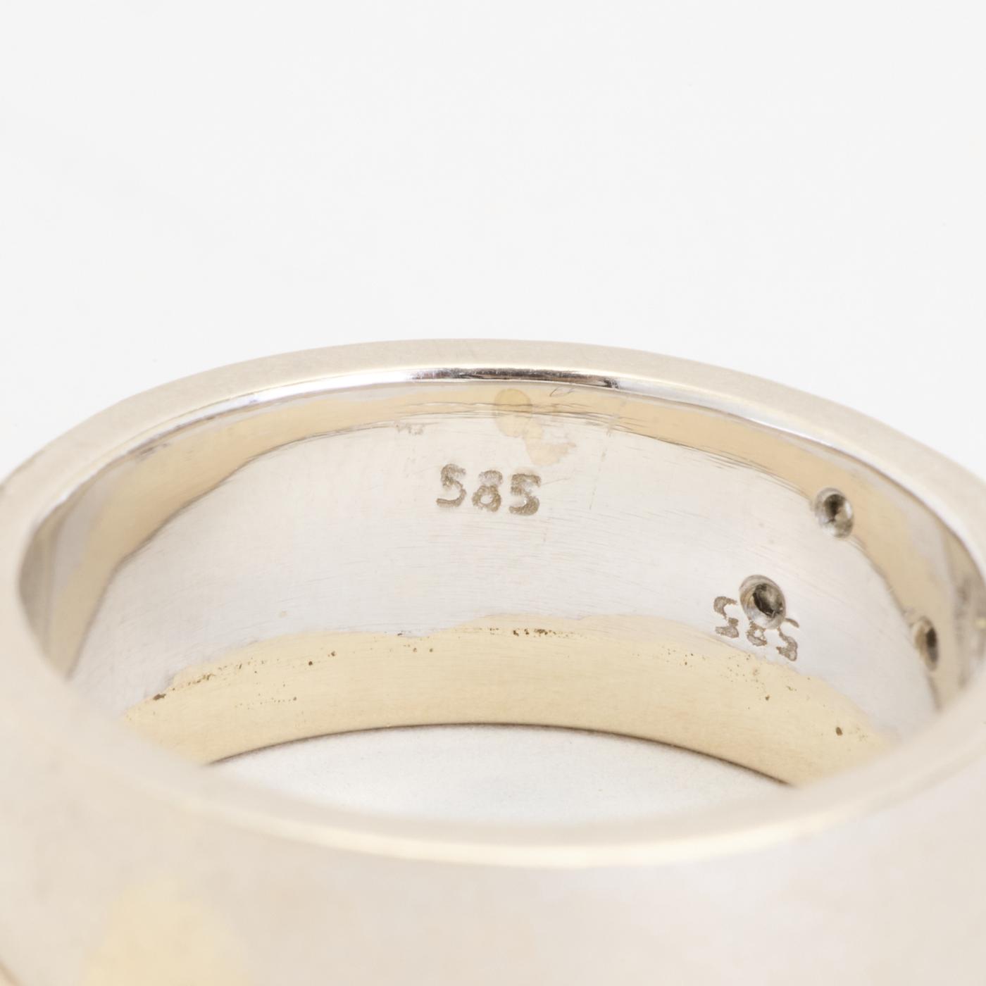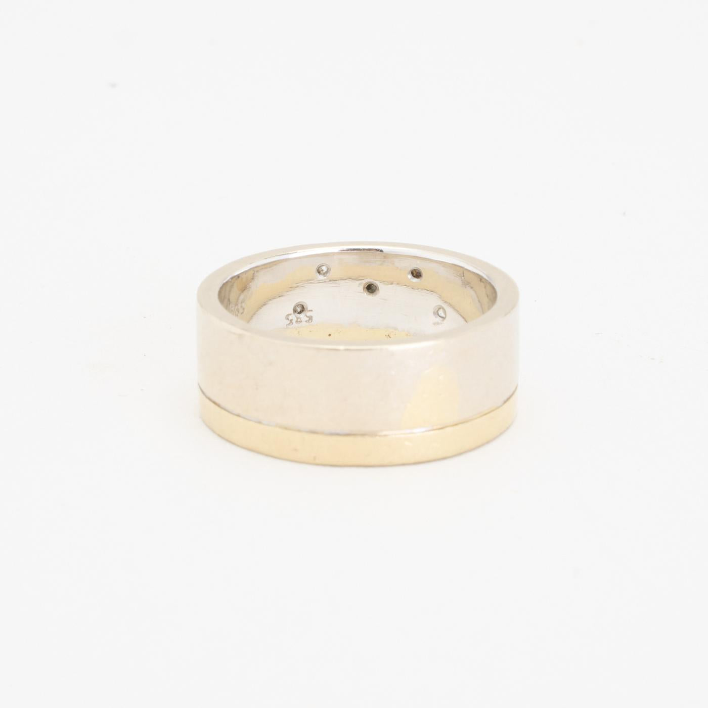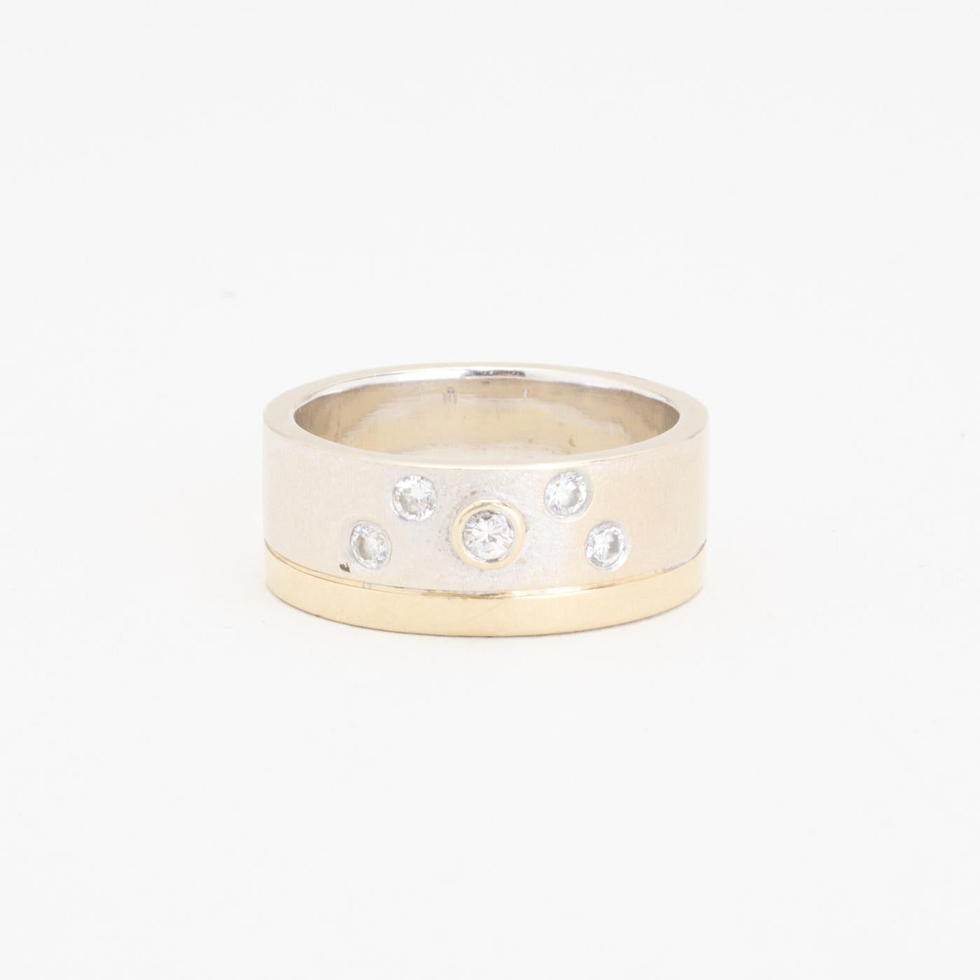 Bred båndring i 14K tofarvet guld med seks diamanter (0.14 ct), Str. 56