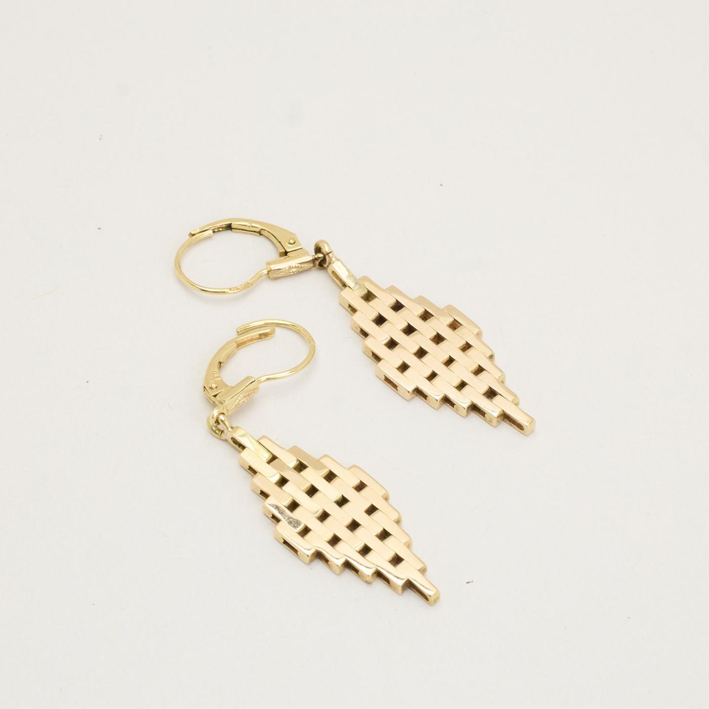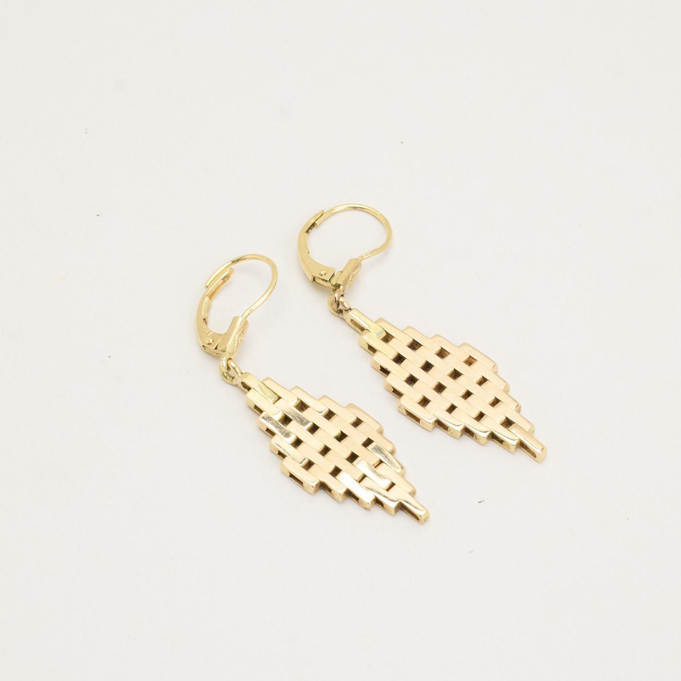 Ørehængere i 14K guld med geometrisk mønster, 4,7 cm