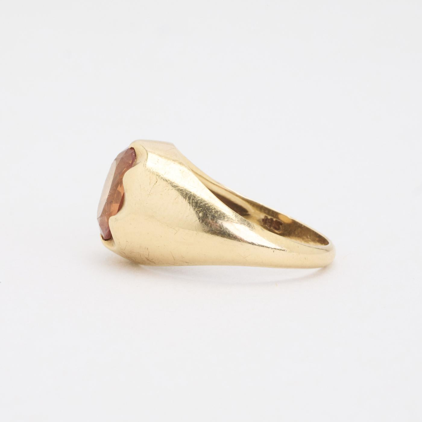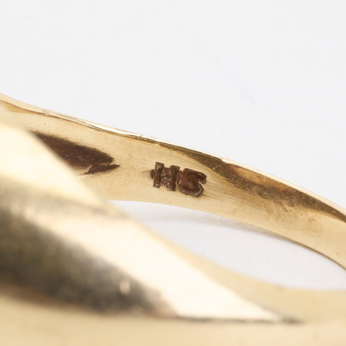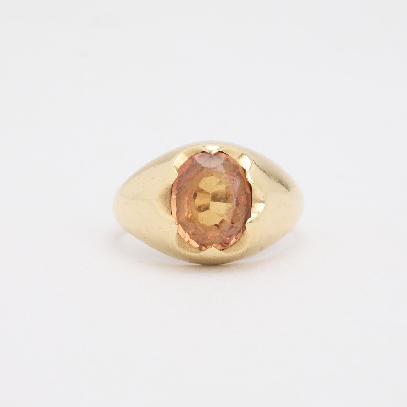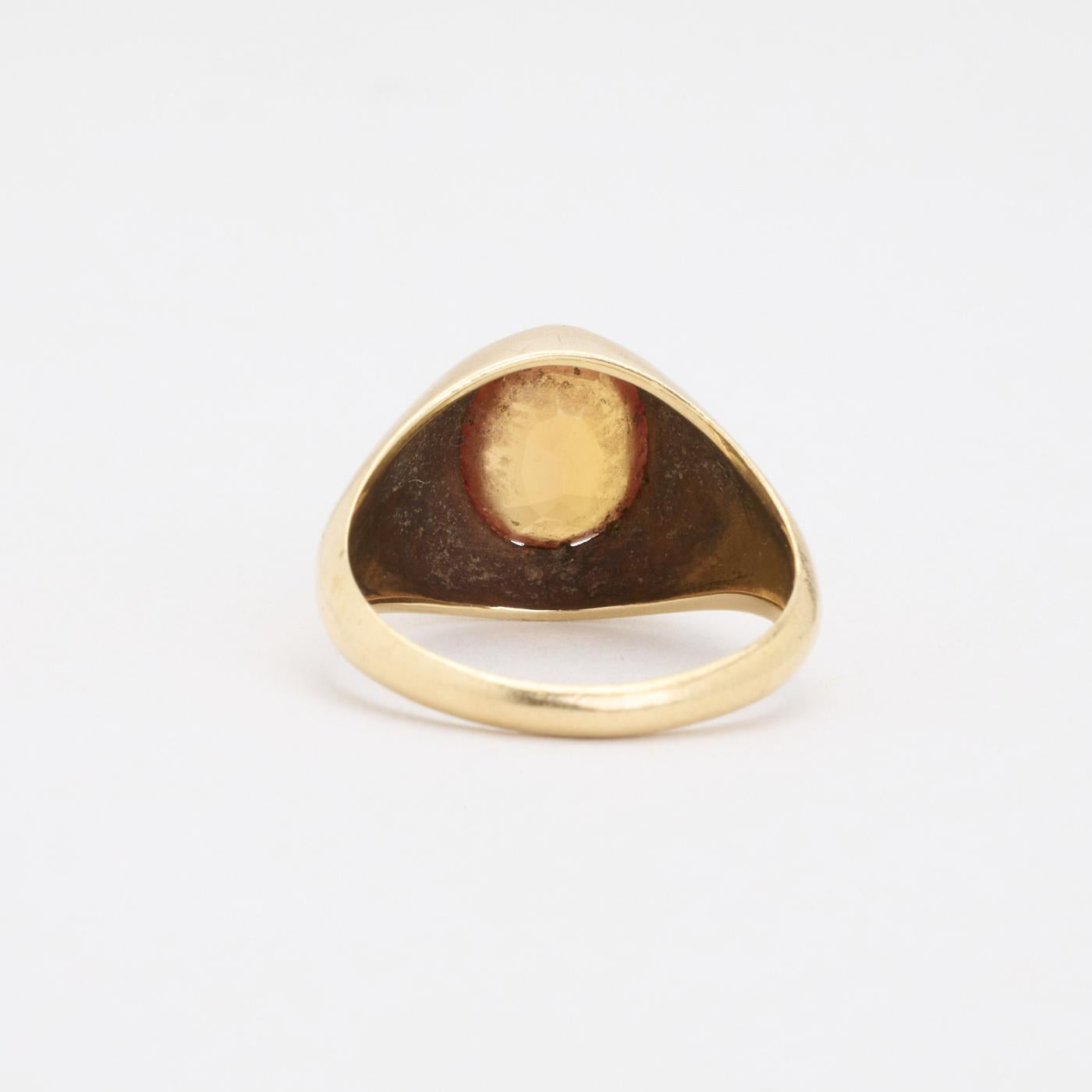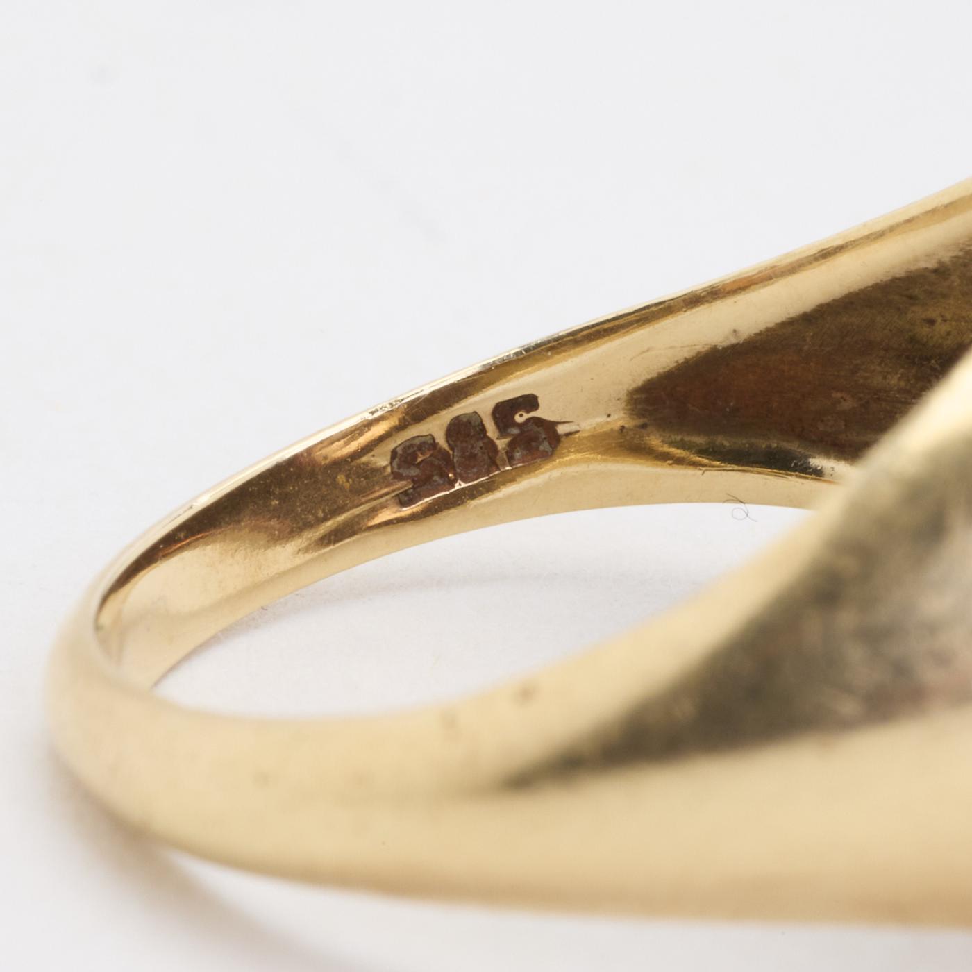 Signet ring i 14K guld med syntetisk safir, Str. 54