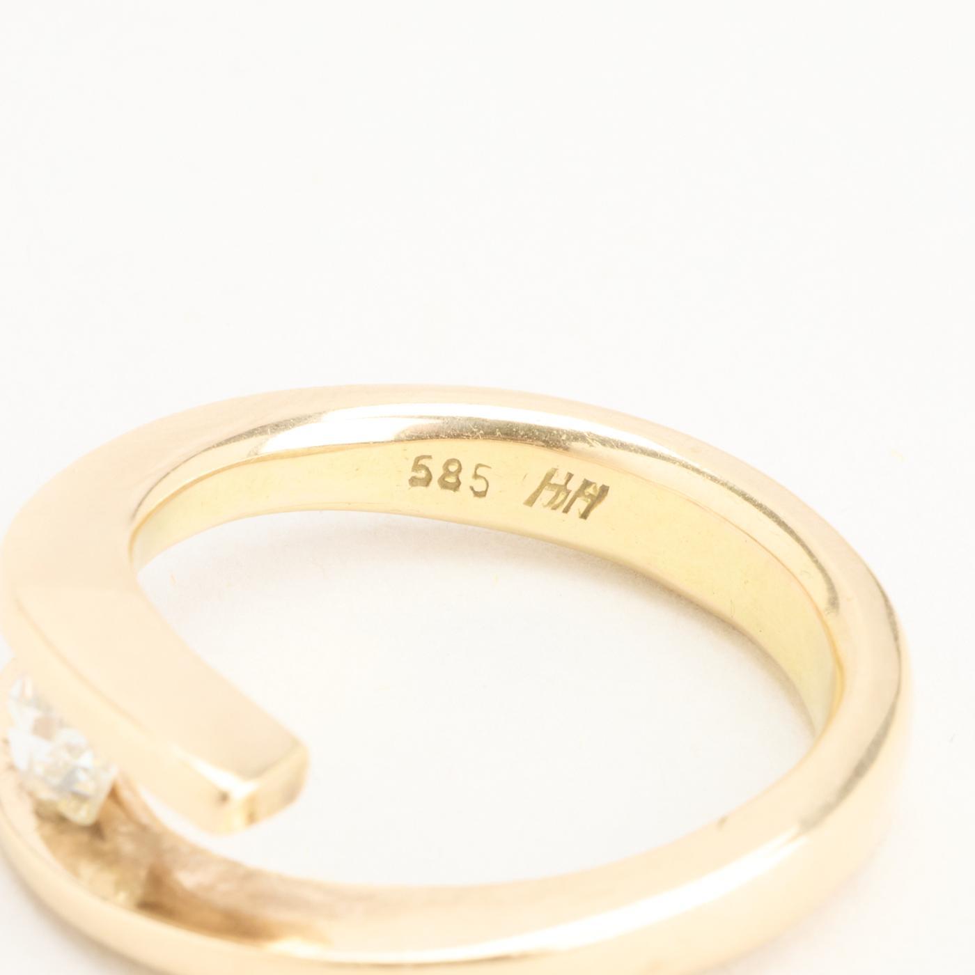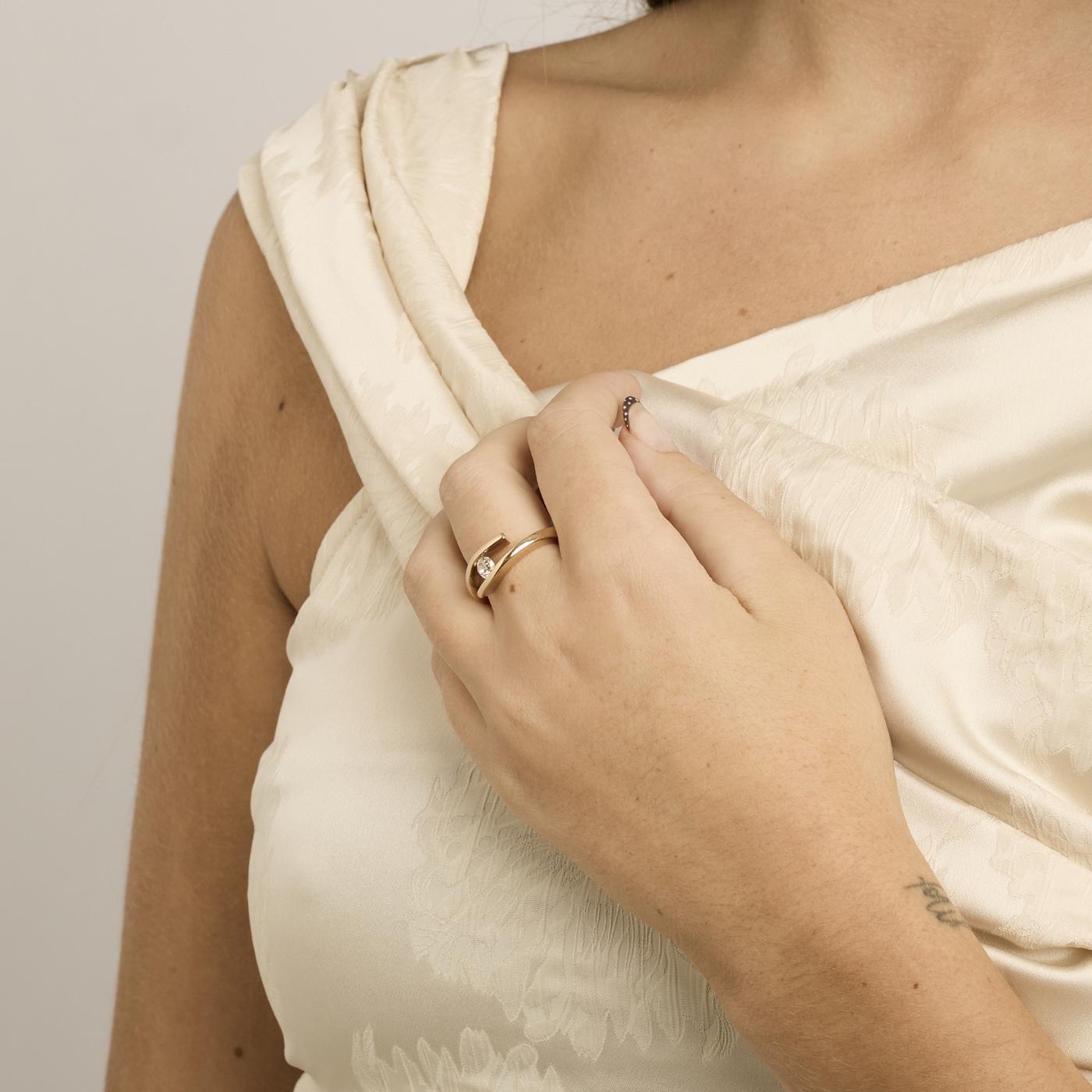 Crossover ring i 14K guld, med diamant (0,43 ct), Str. 58