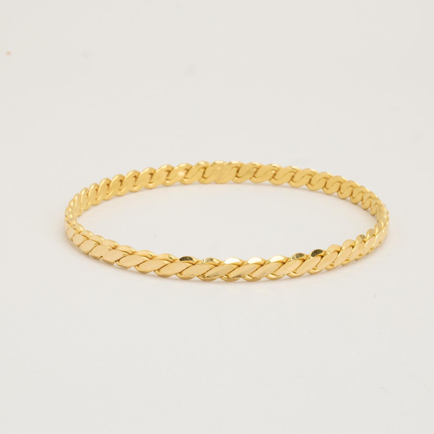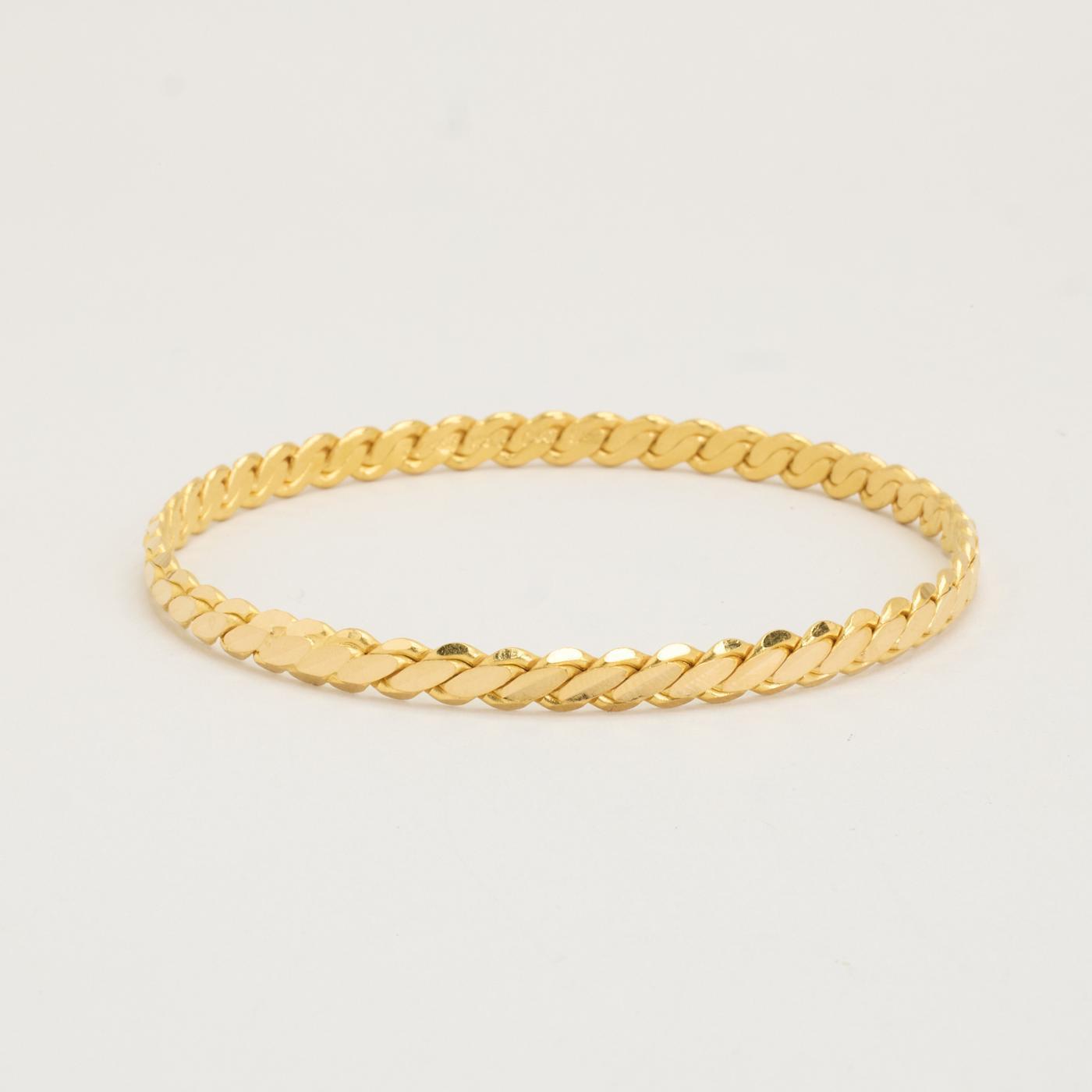 Armring i 22 karat guld med flad panserdesign, diameter 6,3 cm