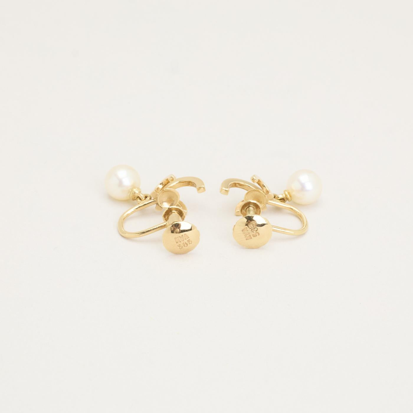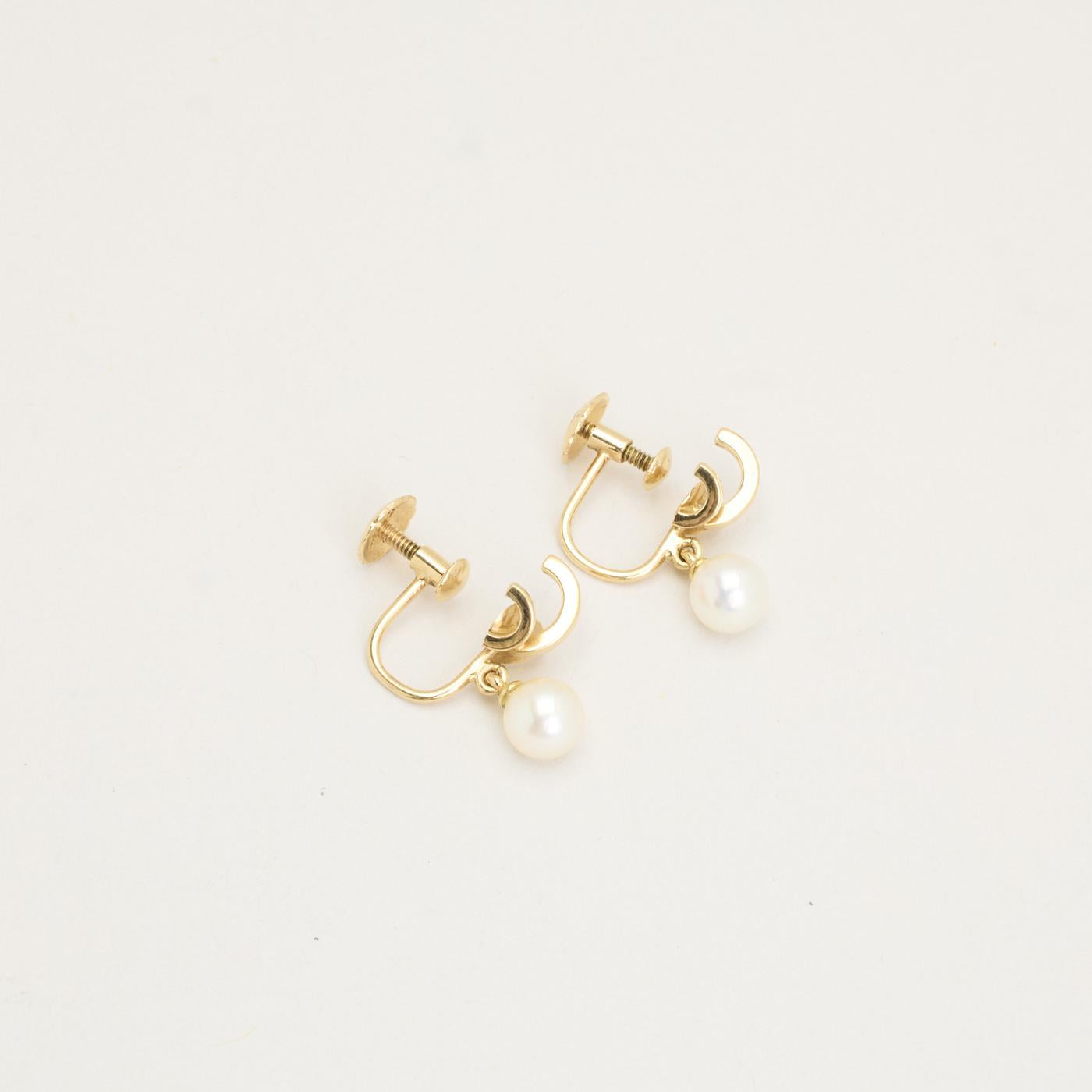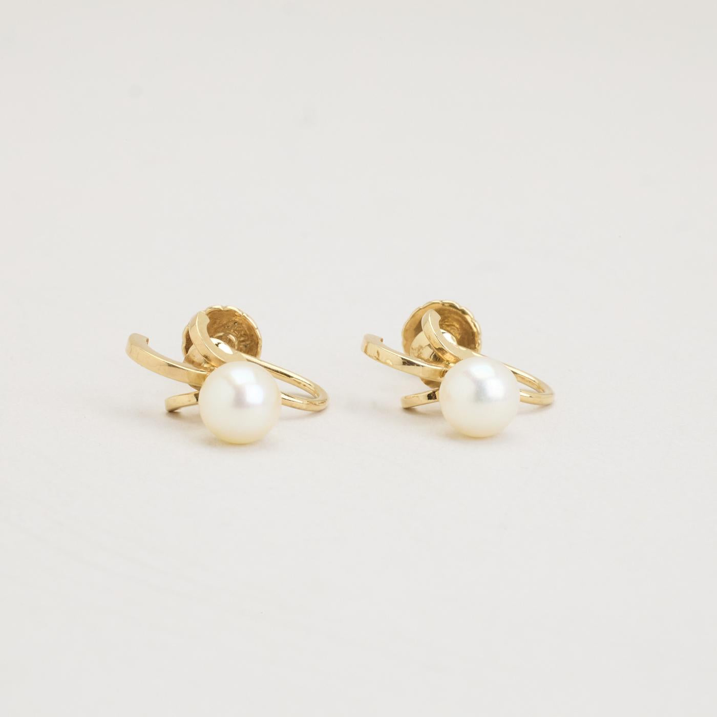 Clipsøreringe i 14K guld med hvide perler, 2 cm