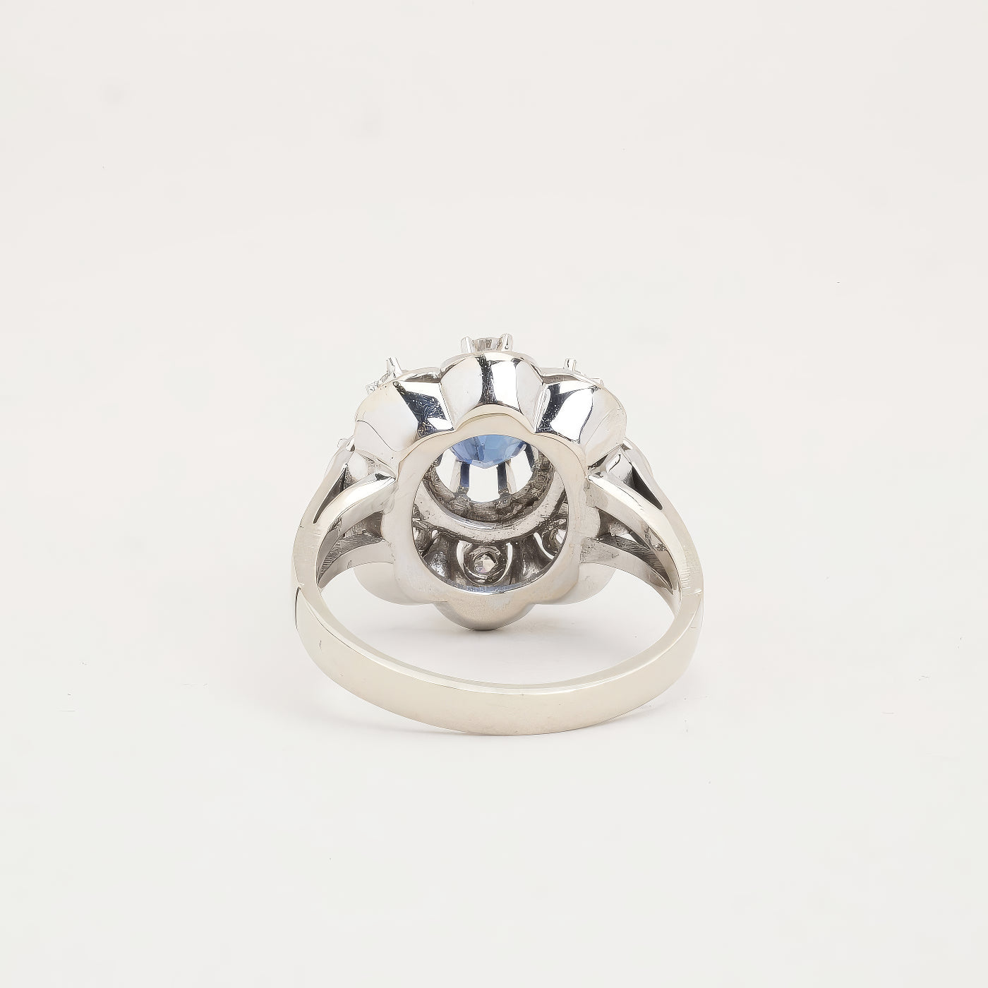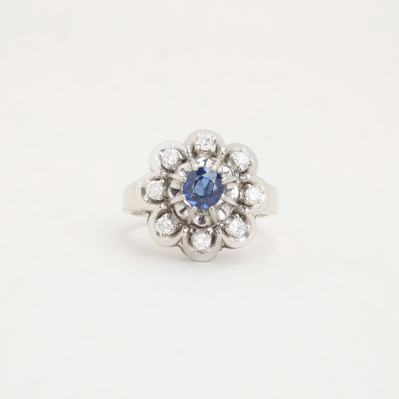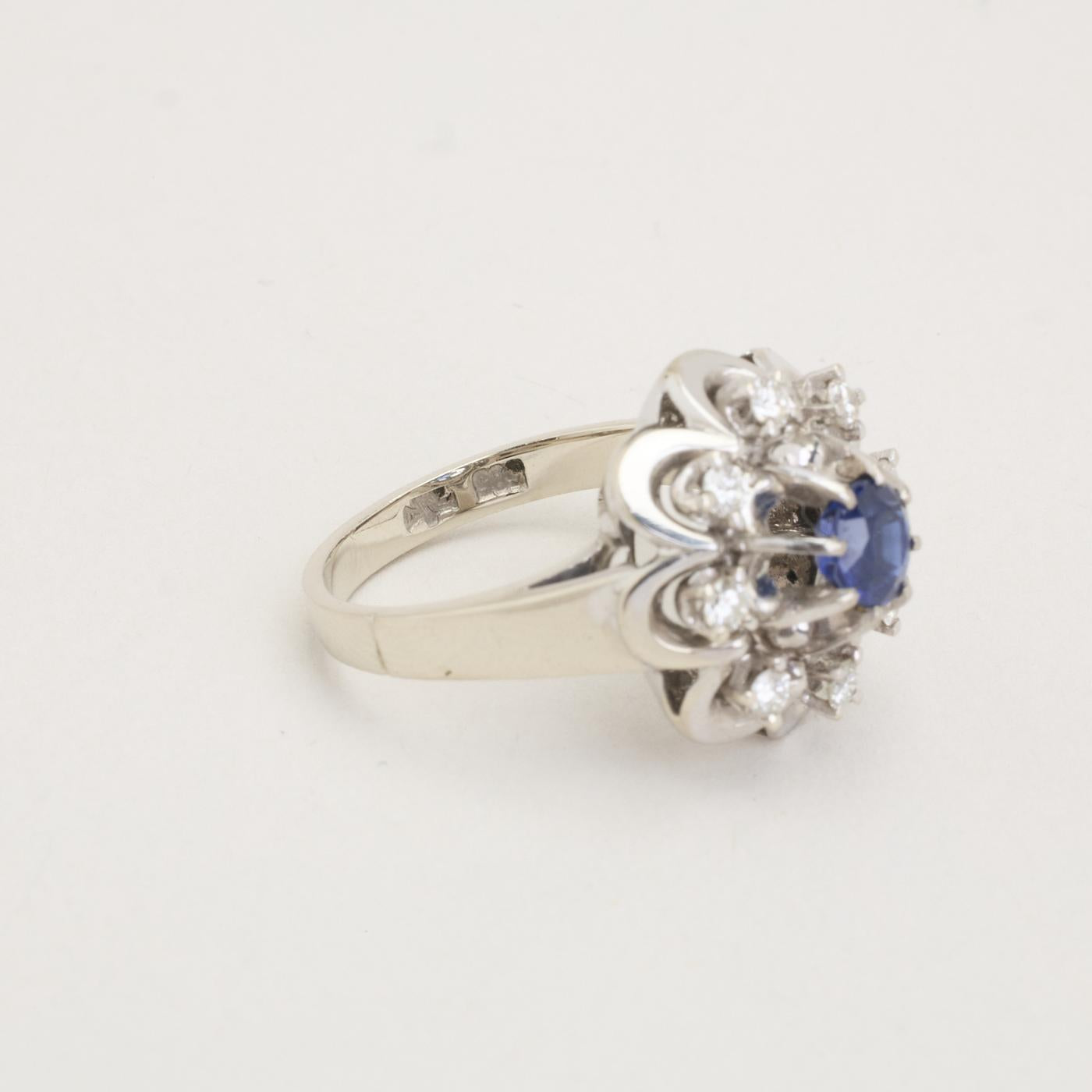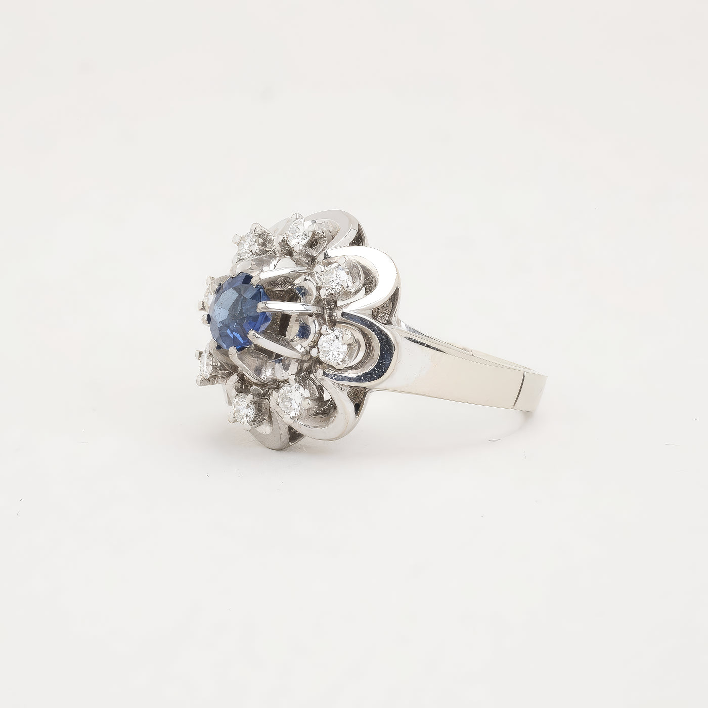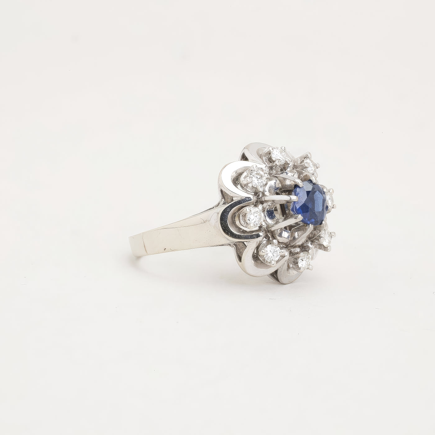 Rosetring i 14K hvidguld med en safir og diamanter (0,25 ct), Str. 51