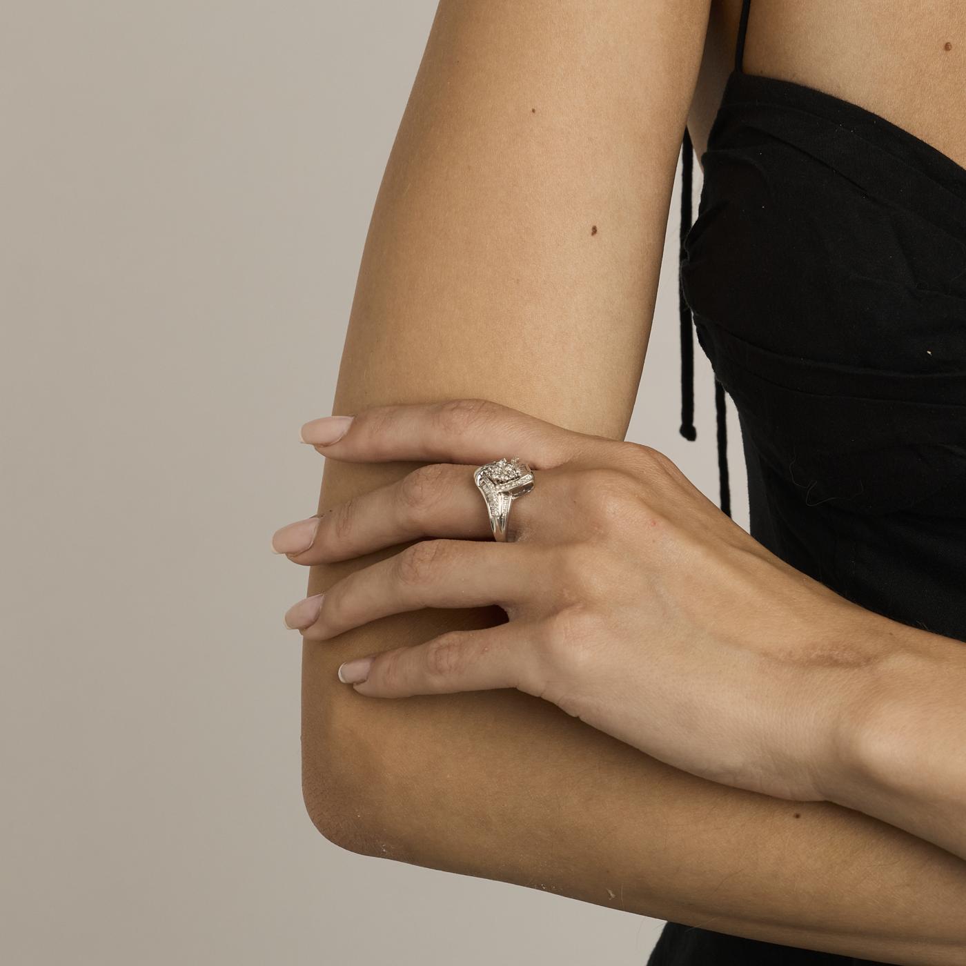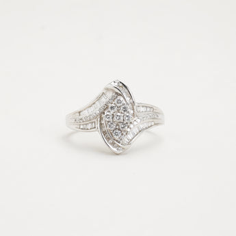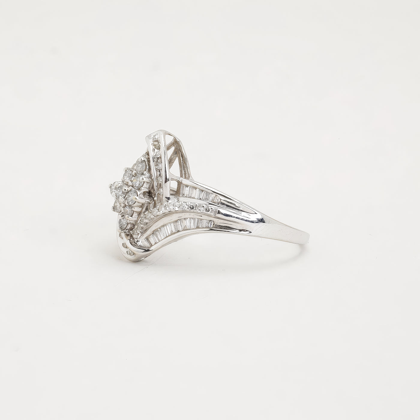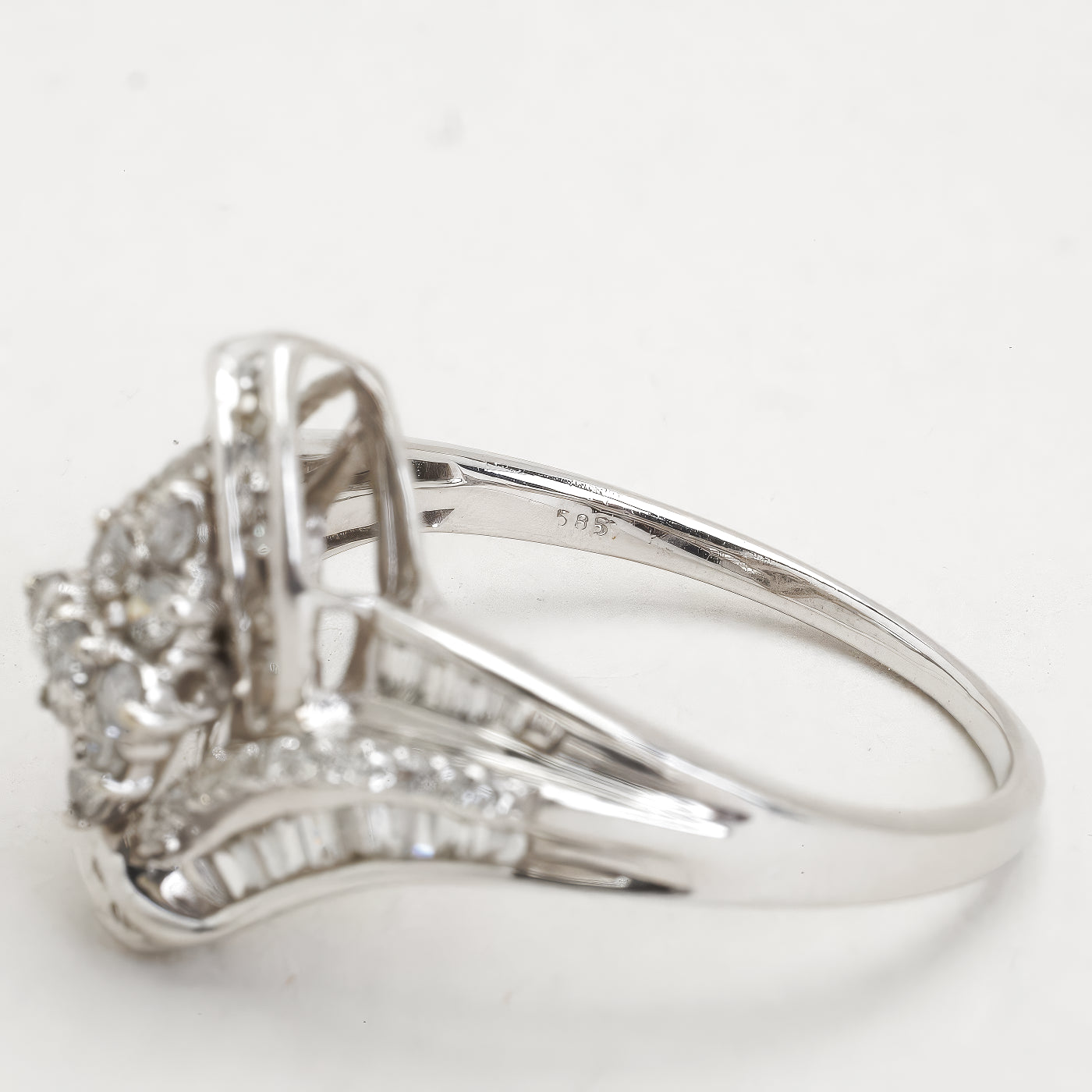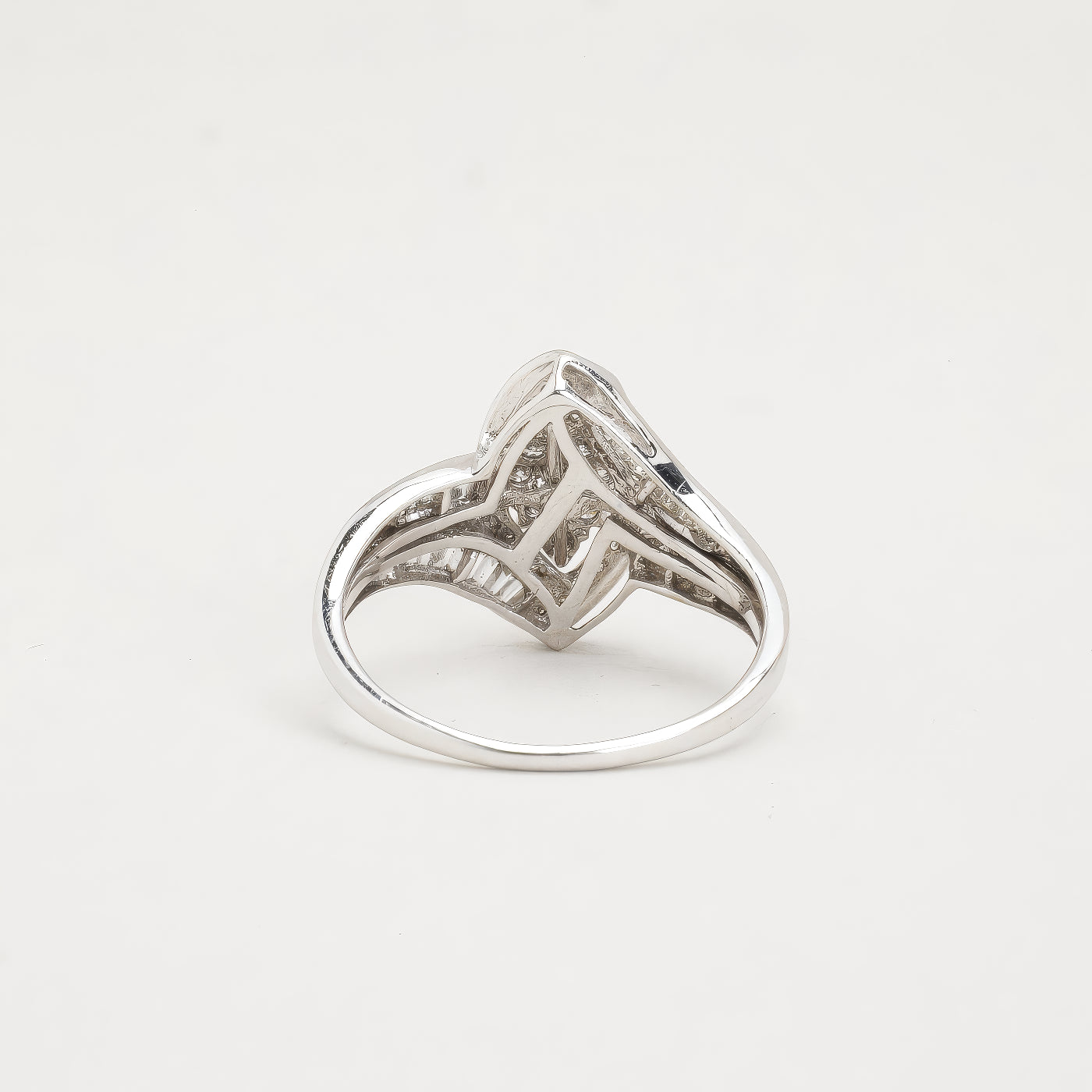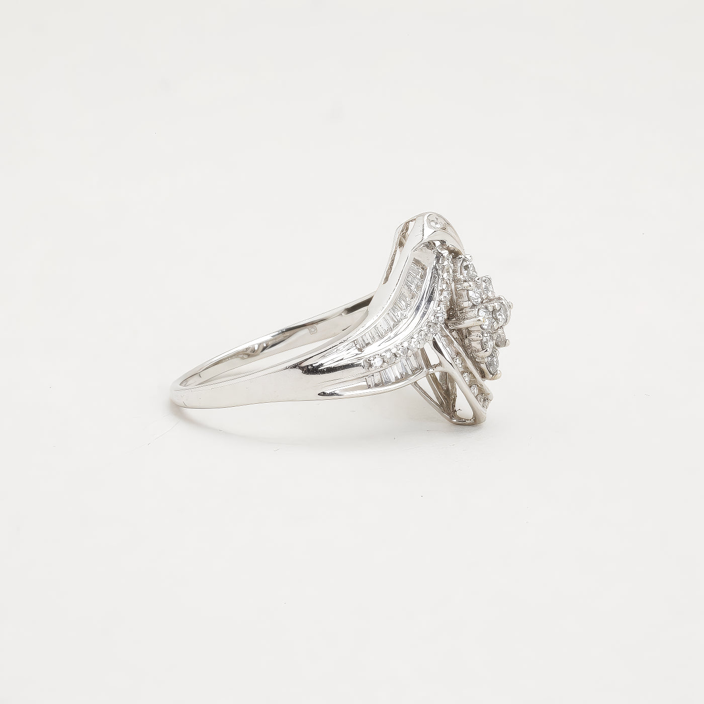 Egenskaber: Ring i 14 karat Hvidguld isat 30 x 0.01 ct. baguetteslebne Diamanter, i alt 0.3 ct.