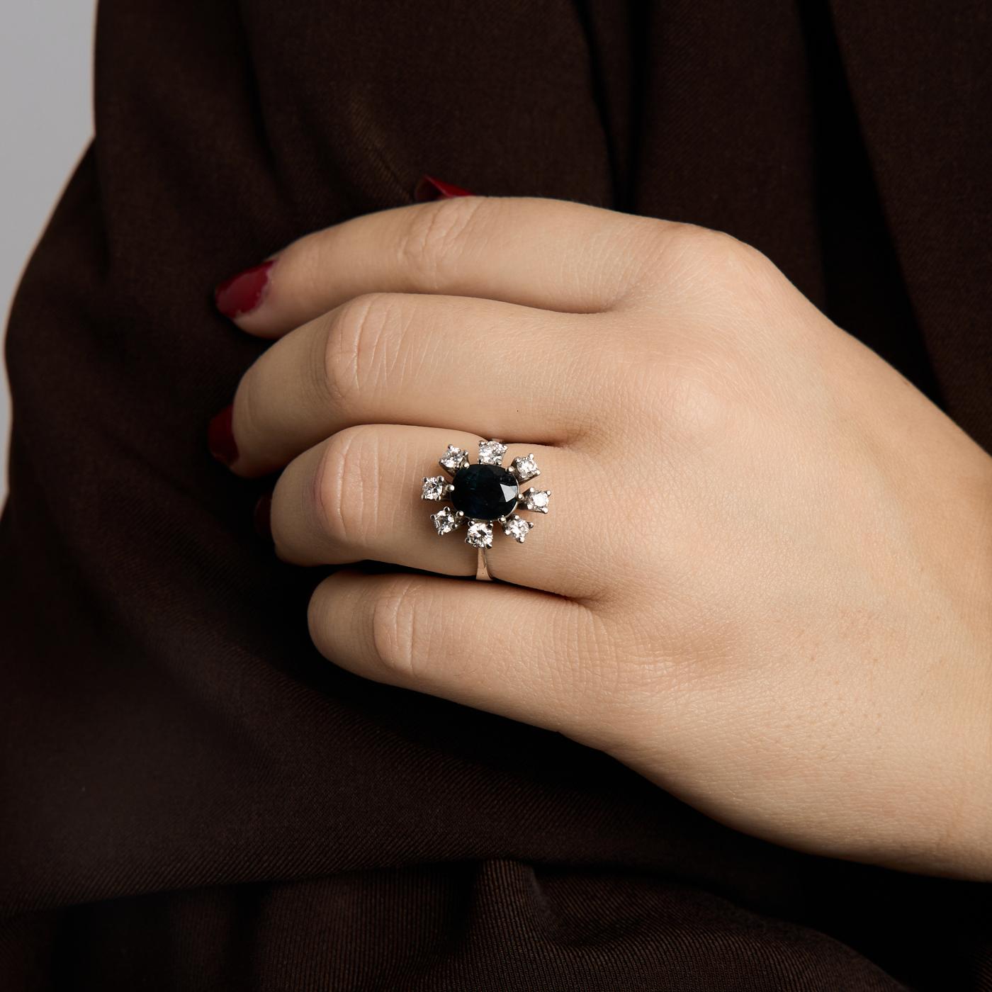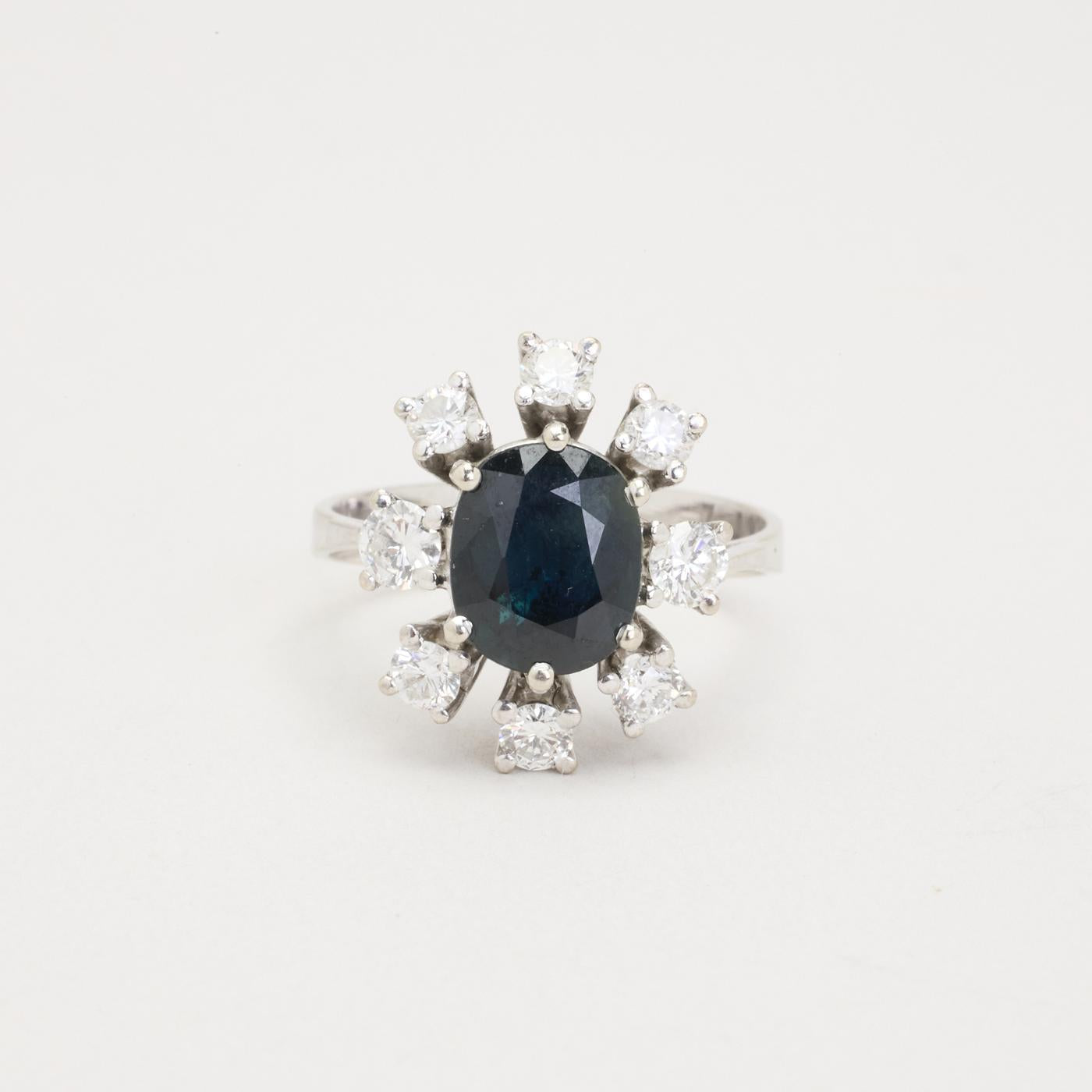 Rosetring med diamant (0.8 ct) i 14 karat med en Safir str. 54