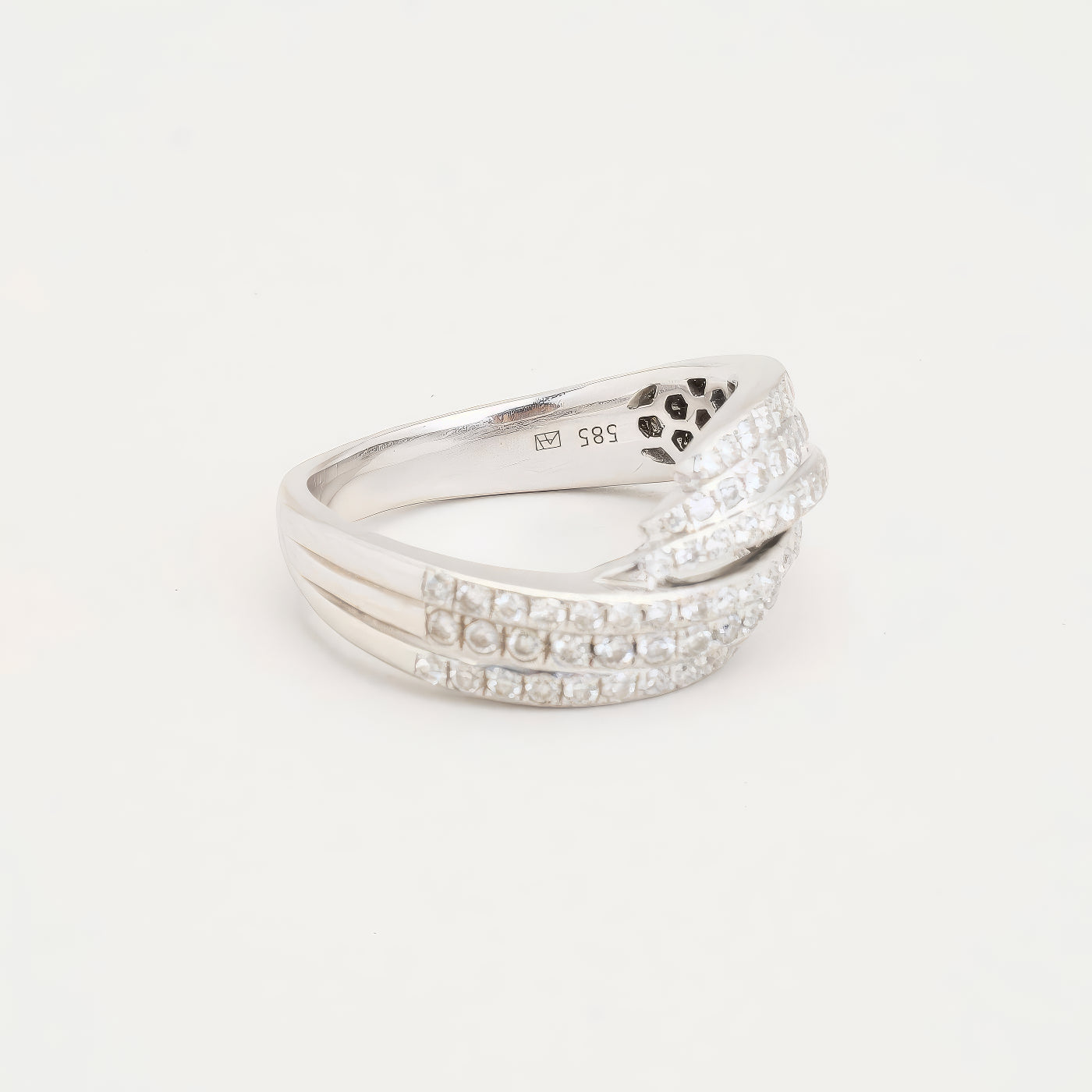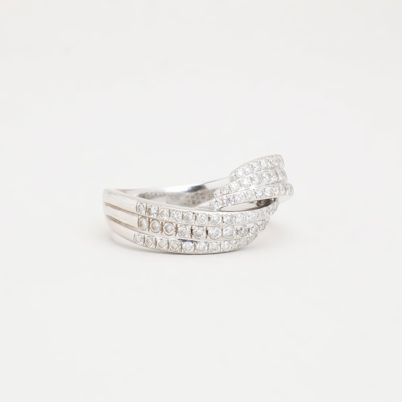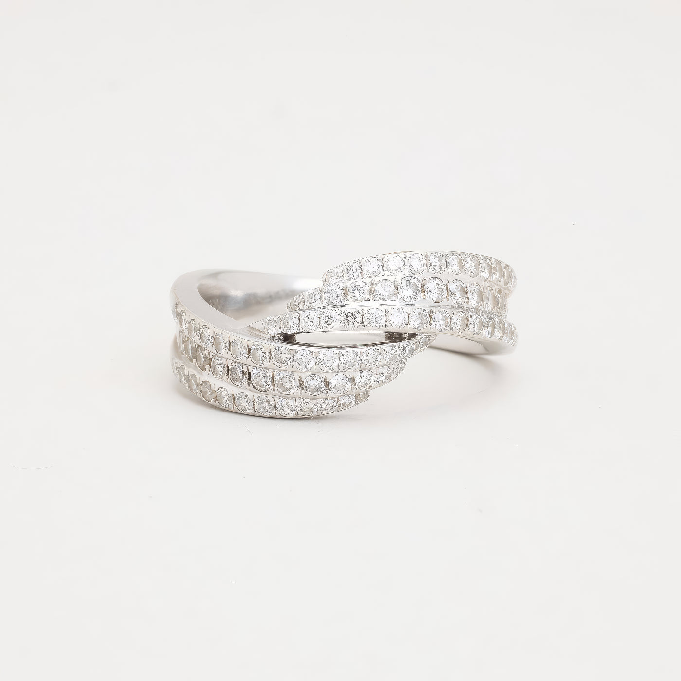 Pavé Crossover ring i 14K hvidguld, med diamanter (0.92 ct), Str. 56