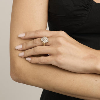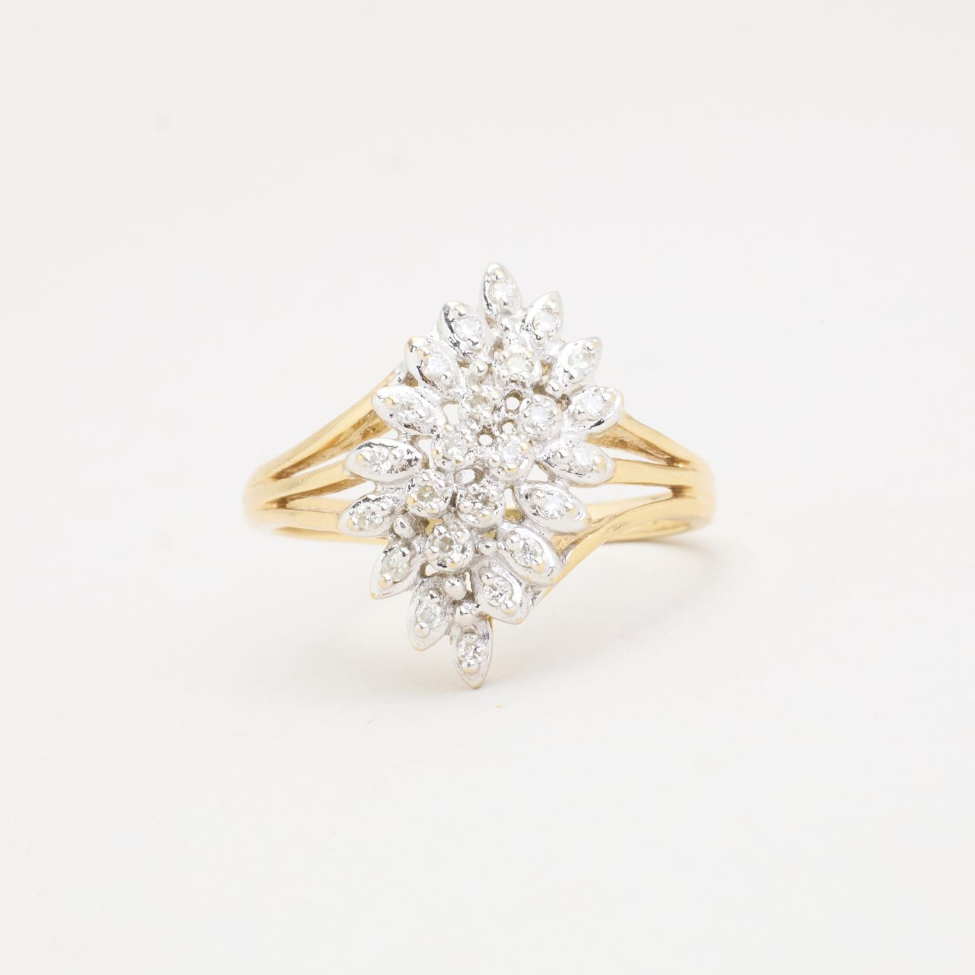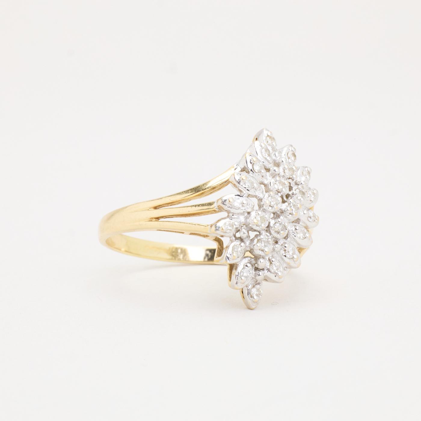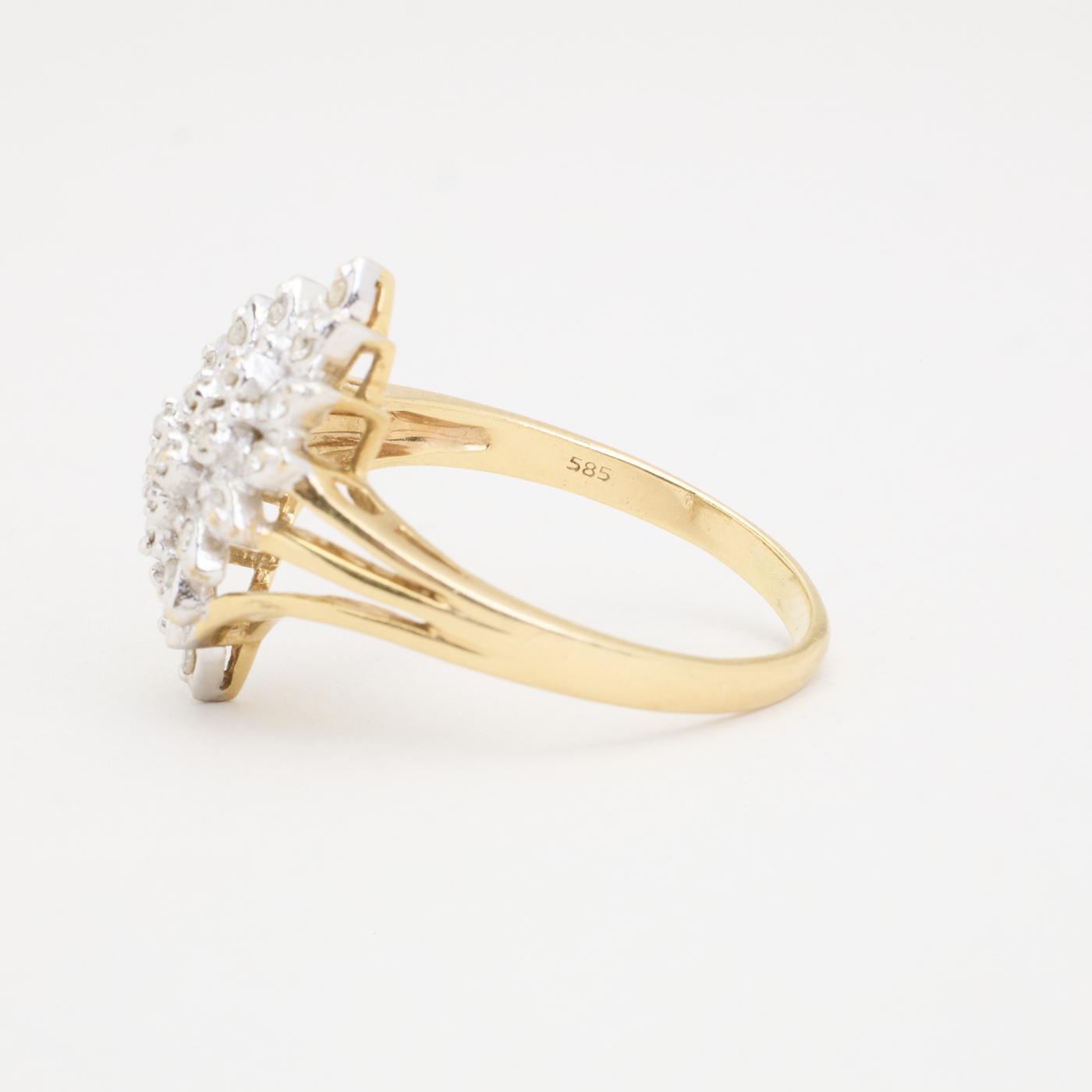 Cluster ring i 14K guld og hvidguld, med diamanter (0,25 ct), Str. 63