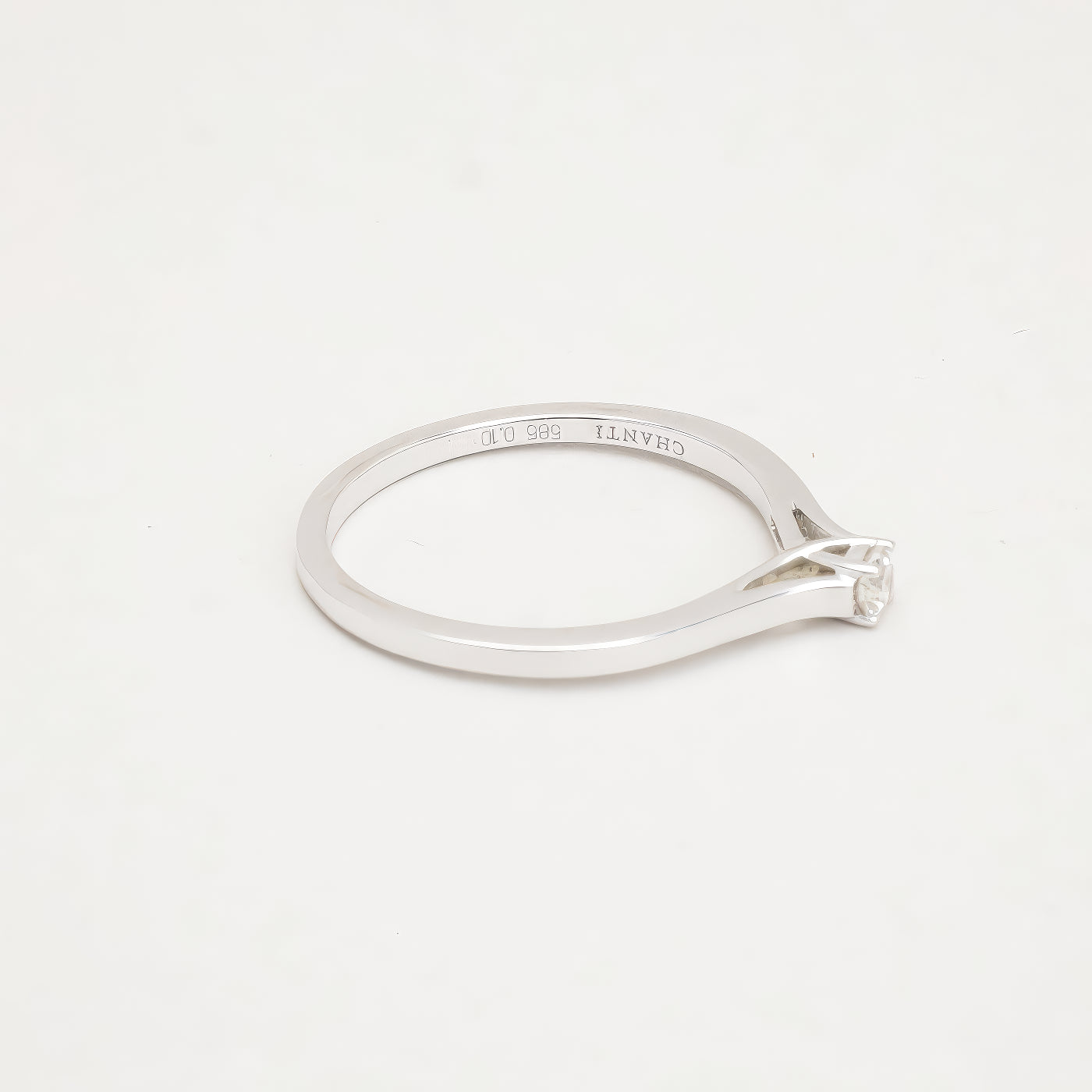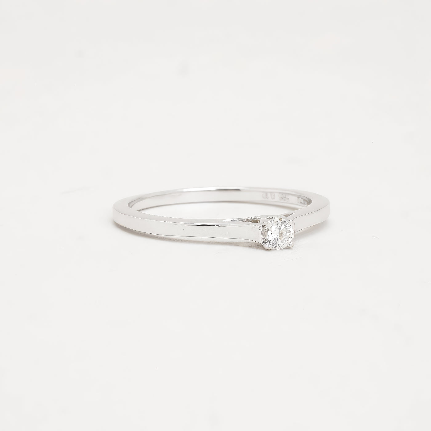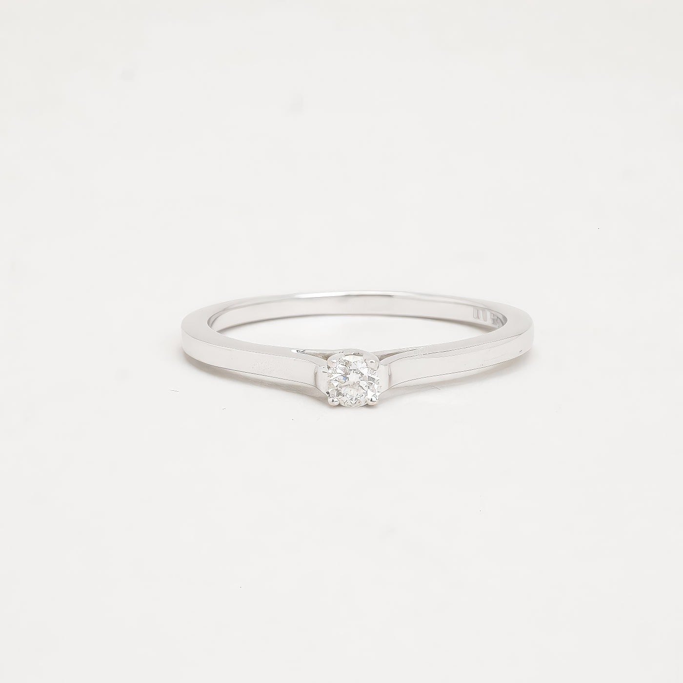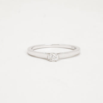 solitaire ring i 14K hvidguld, med en diamant (0,11 ct), Str. 56