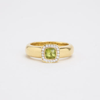 Haloring i 18K guld med grønne sten og hvide sten (0.11 ct), Str. 57