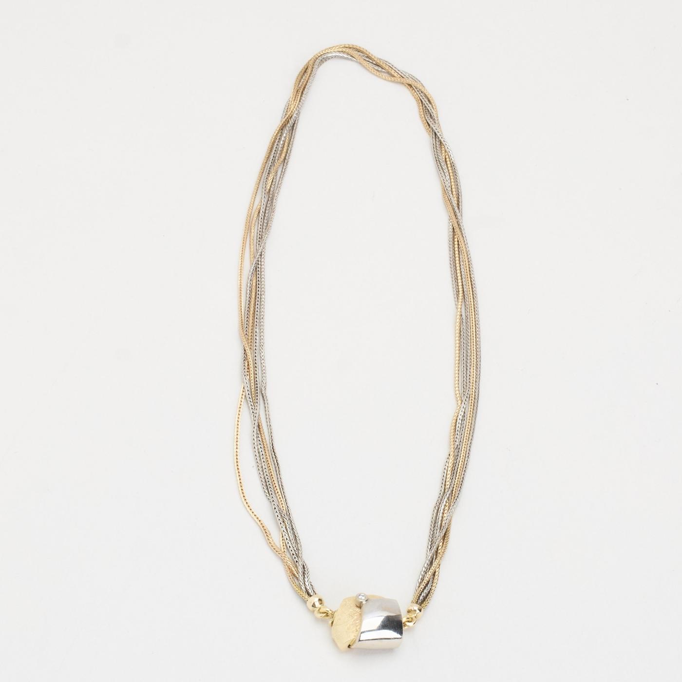 Per Borup Wheat halskæde i 14K guld med tofarvet vedhæng og en diamant (0.02 ct), 43 cm, kasselås