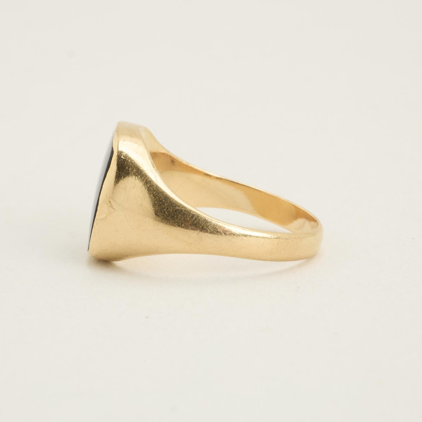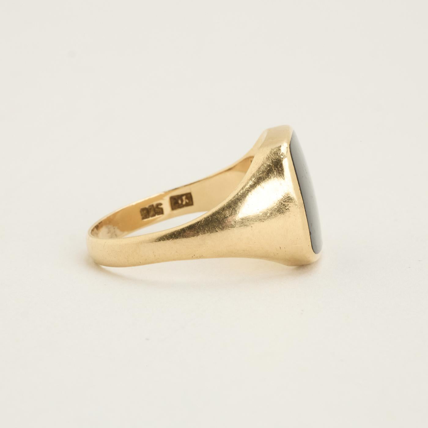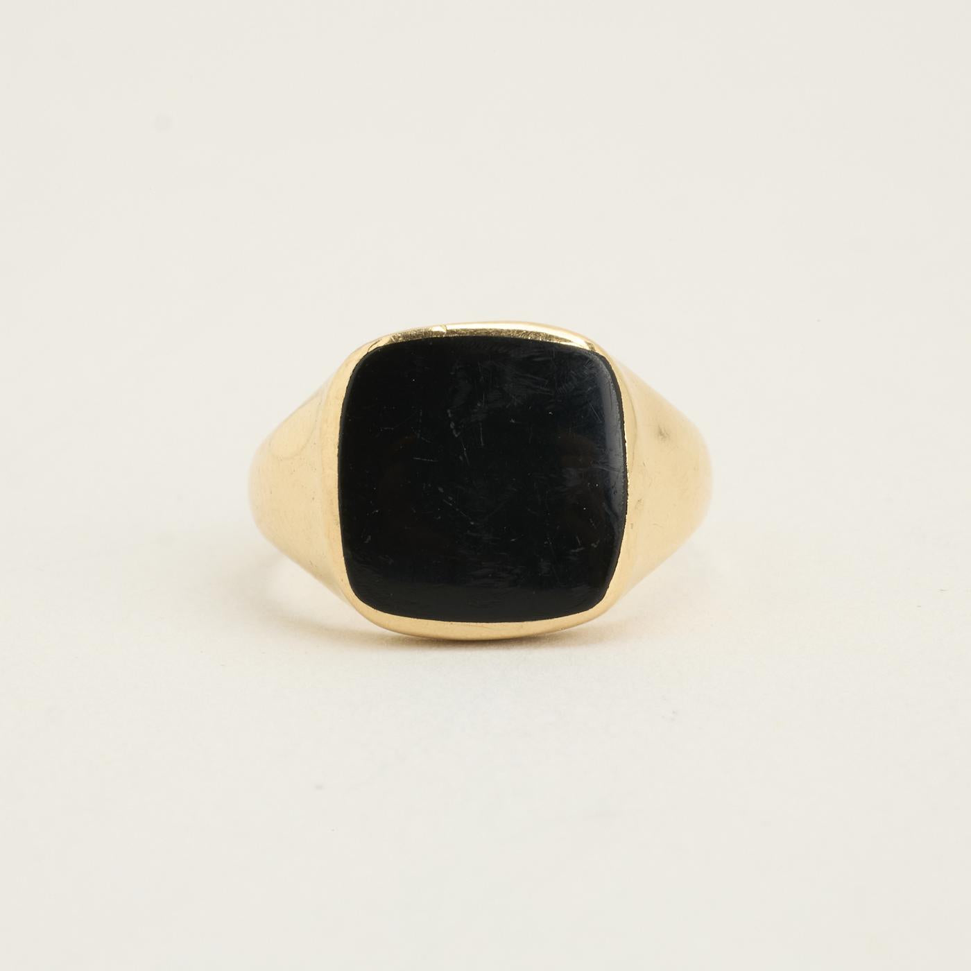 Signetring i 14K guld med sort, uigennemsigtig indlæg, Str. 59
