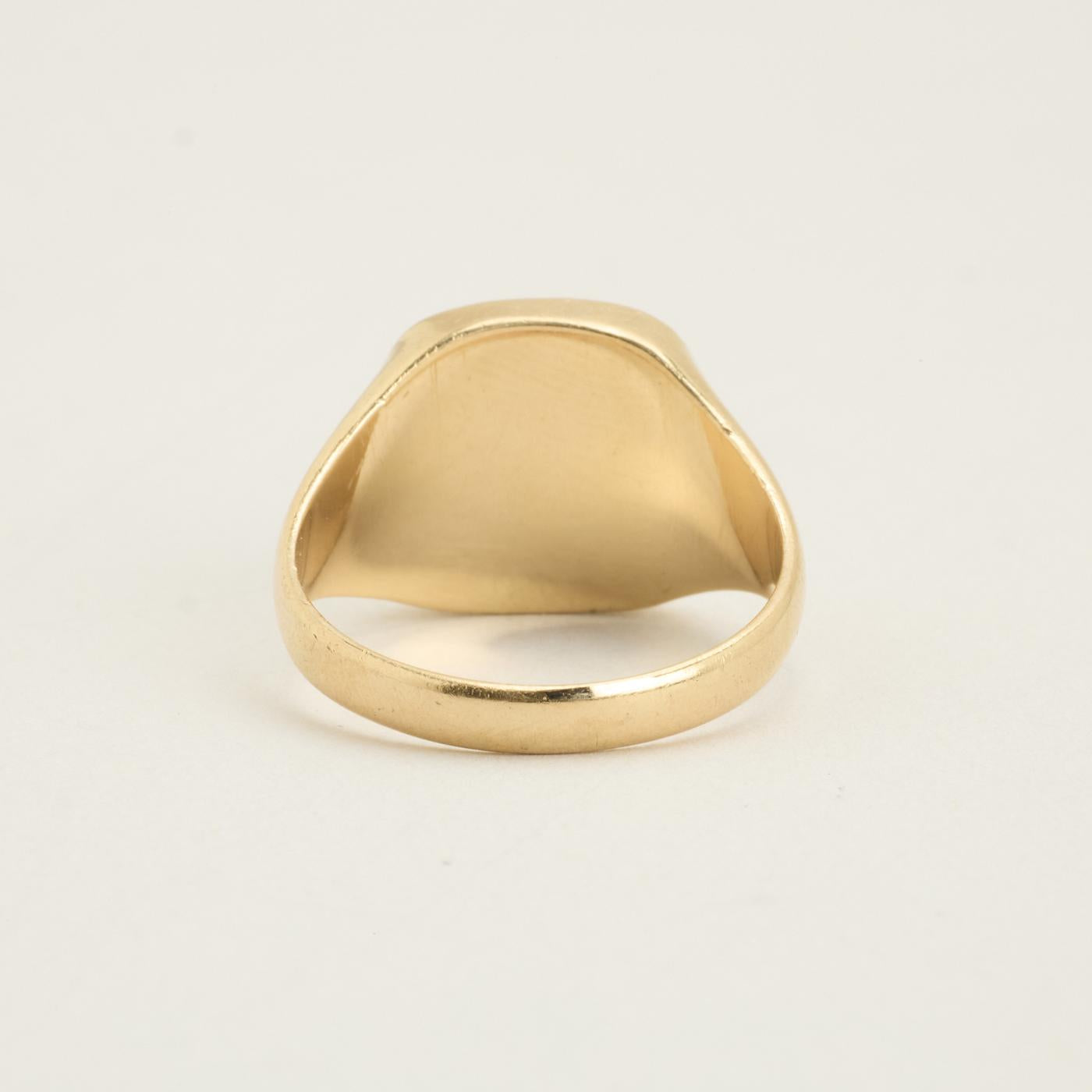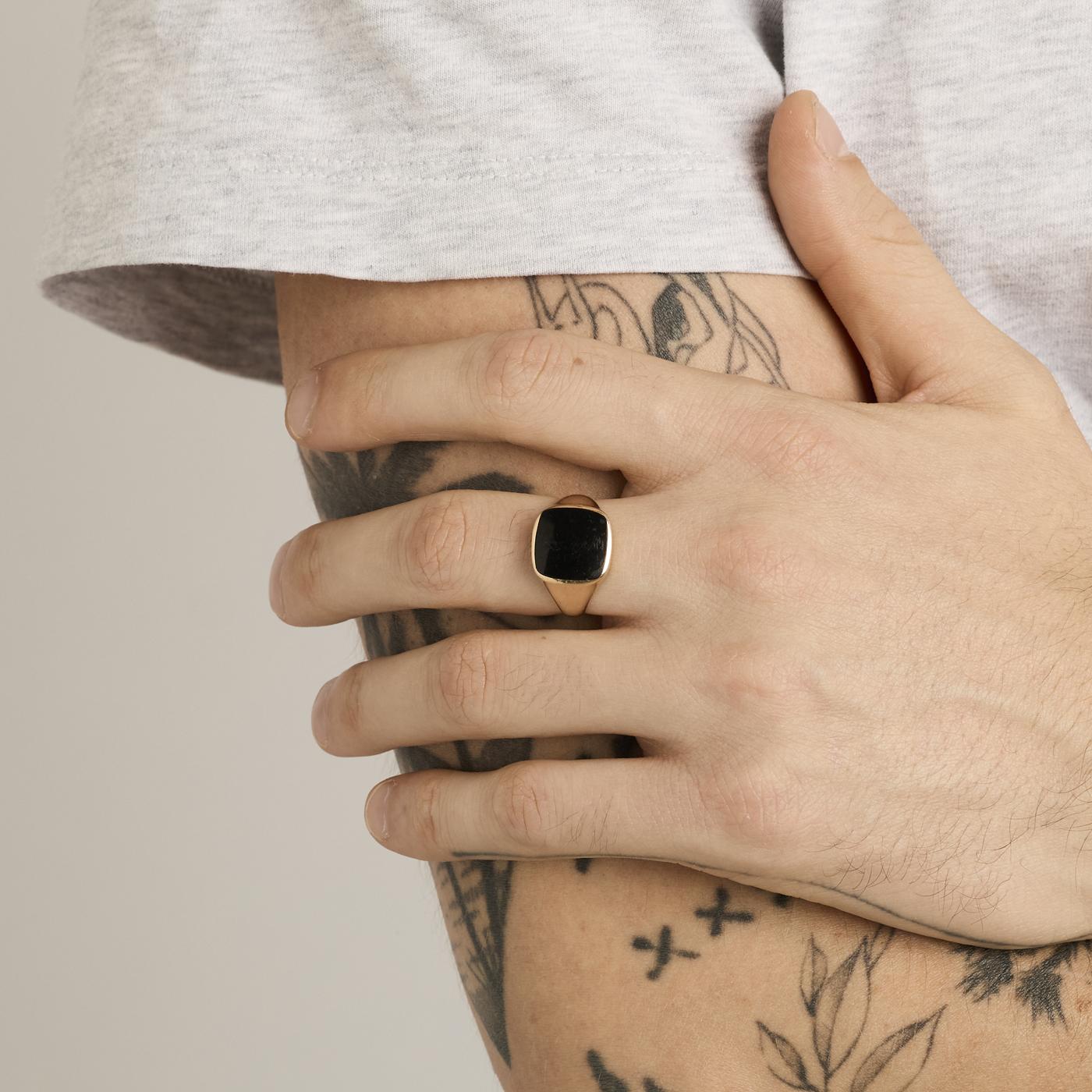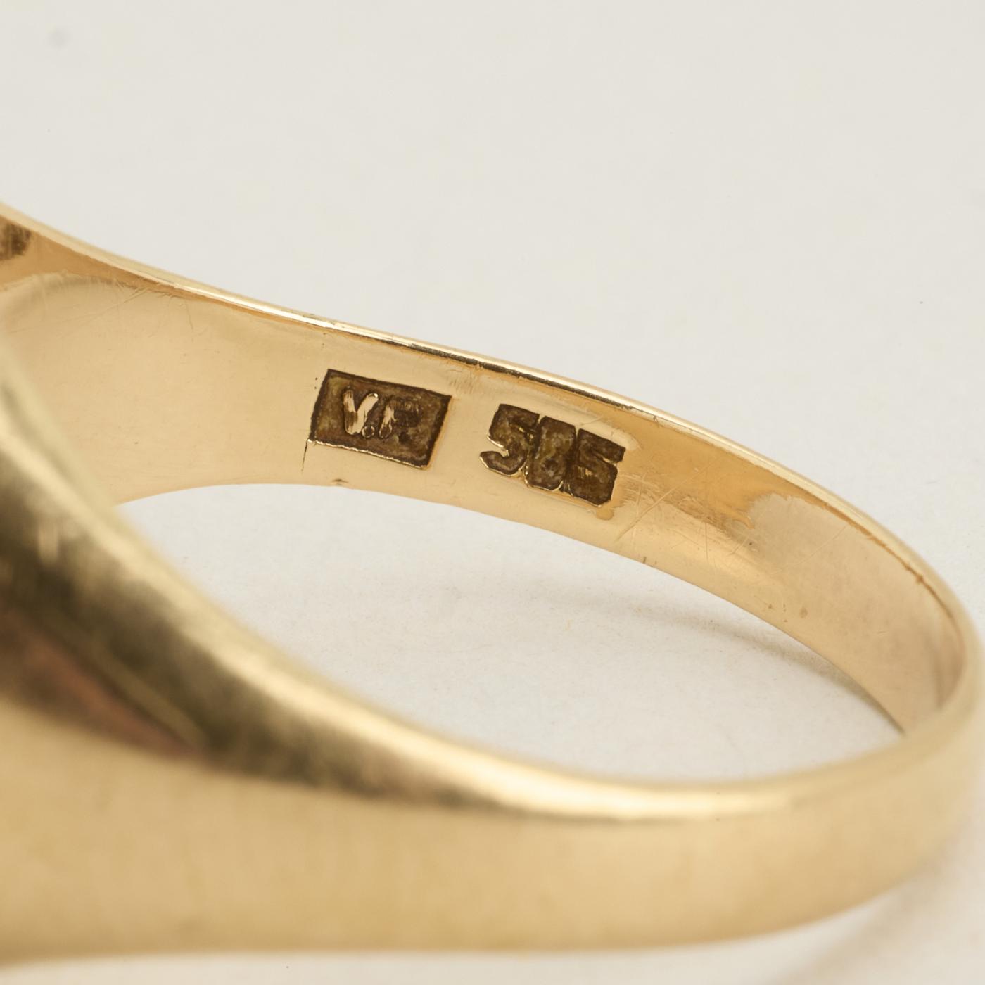 Signetring i 14K guld med sort, uigennemsigtig indlæg, Str. 59