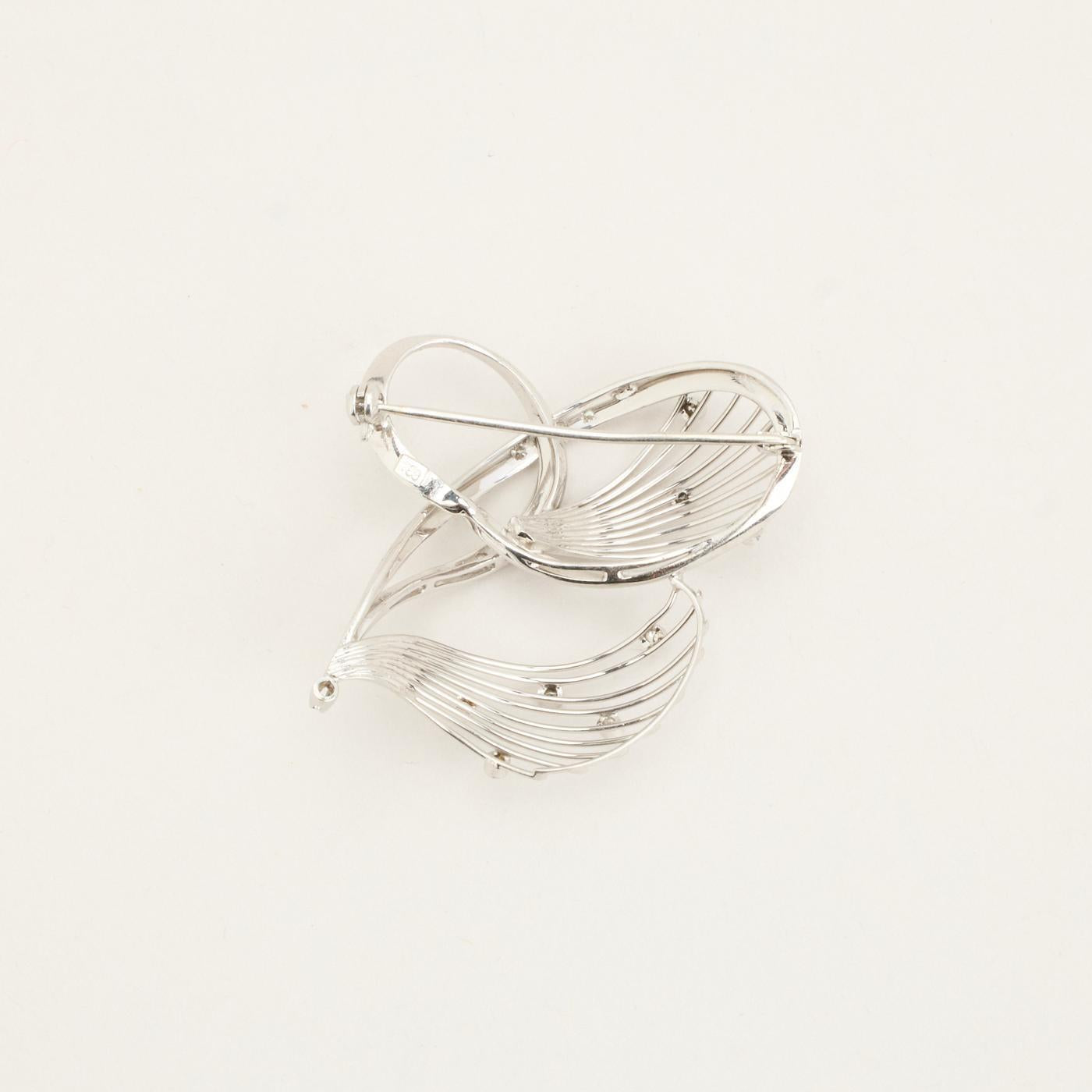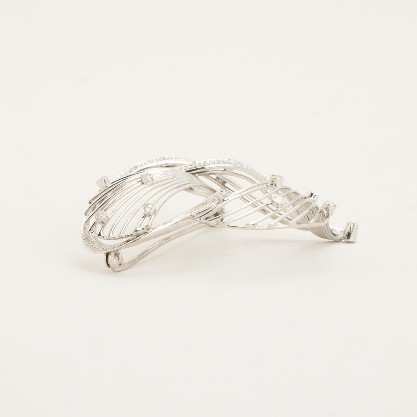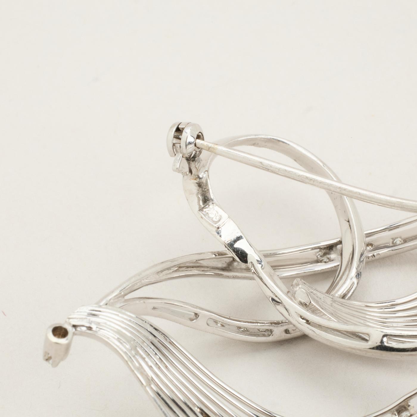 Broche i 18K hvidguld med diamanter (0.14 ct), 4.8 cm