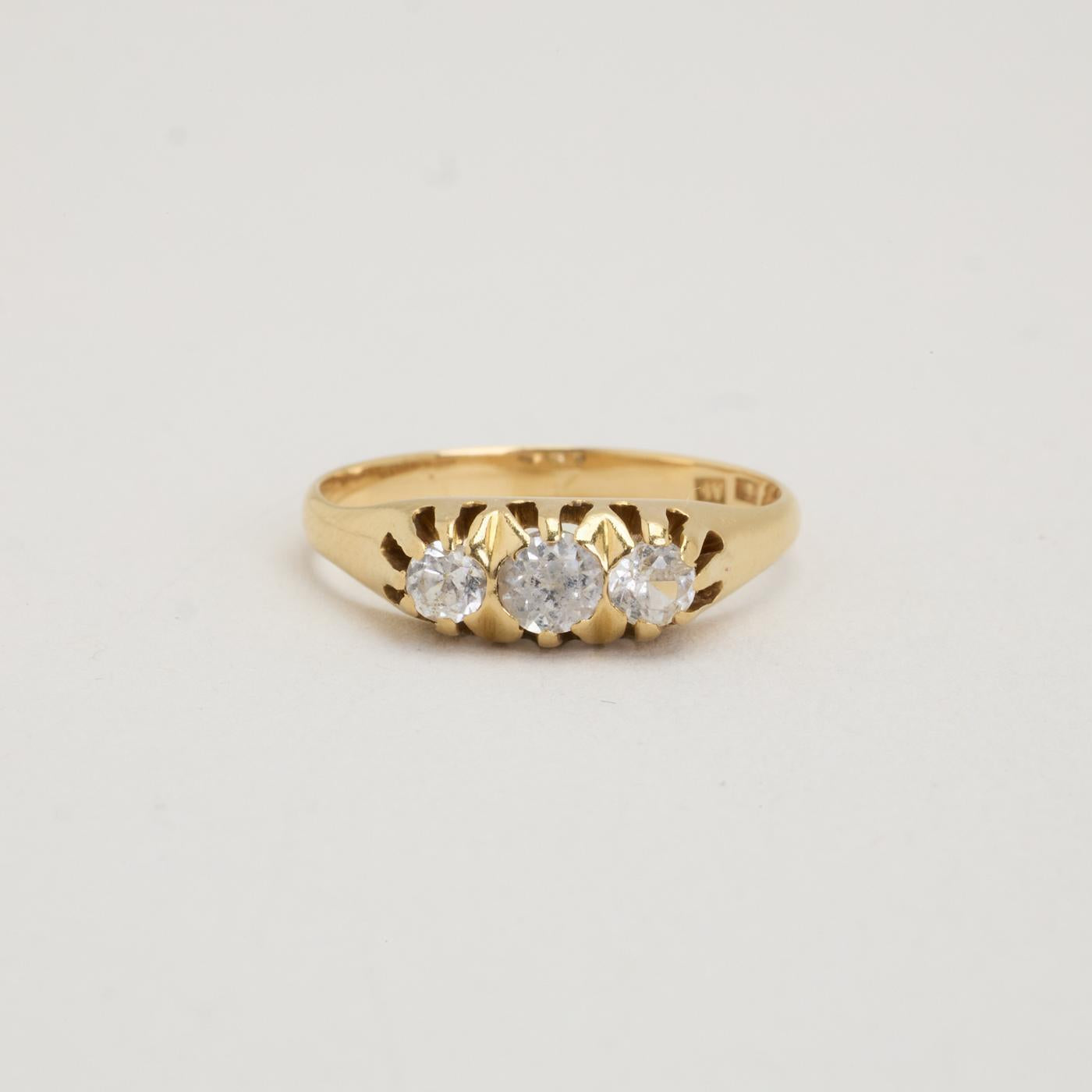Trestensring i 18K guld med diamanter (0,3 ct), Str. 53