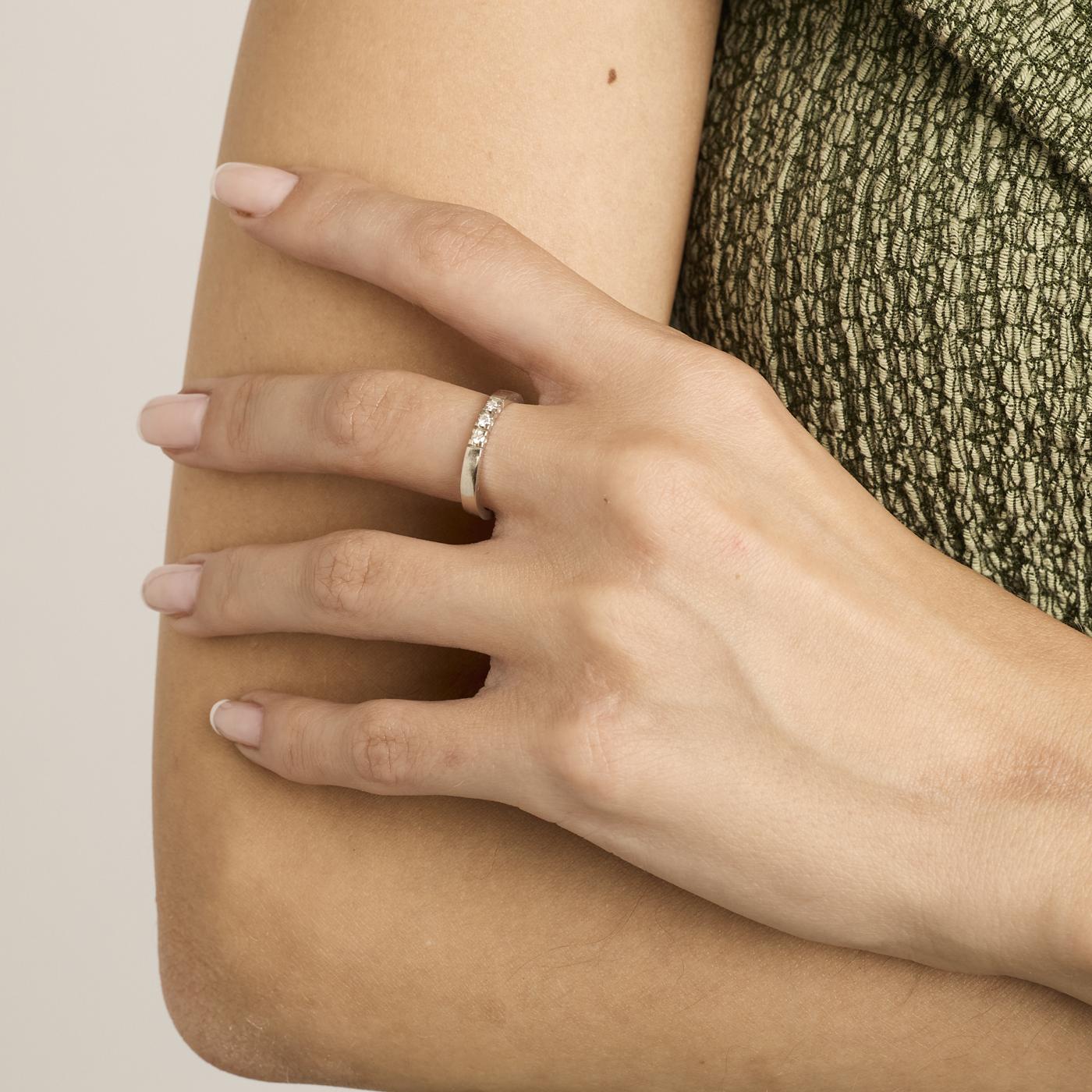 Alliancering i 14K hvidguld med diamanter (0.13 ct), Str. 50