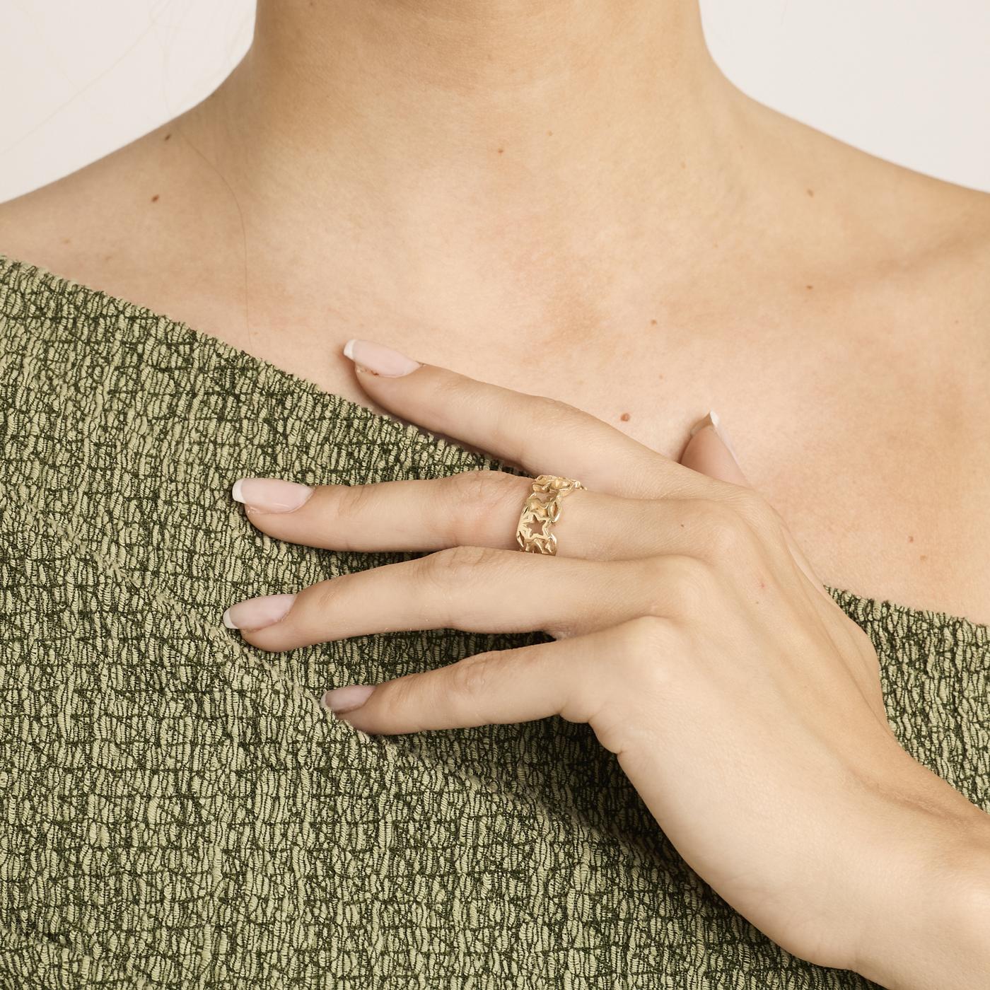 Geometrisk ring i 14K guld med stjerneformet udsnit, Str. 56
