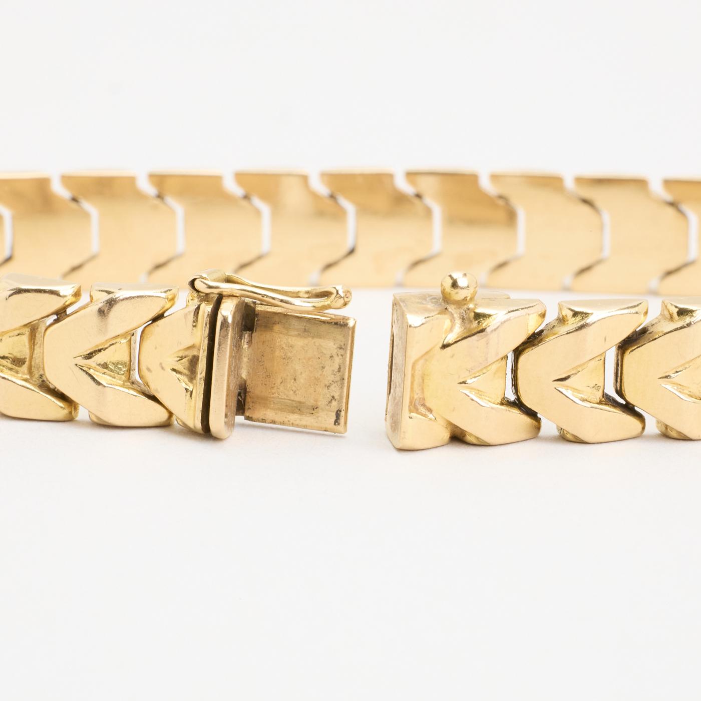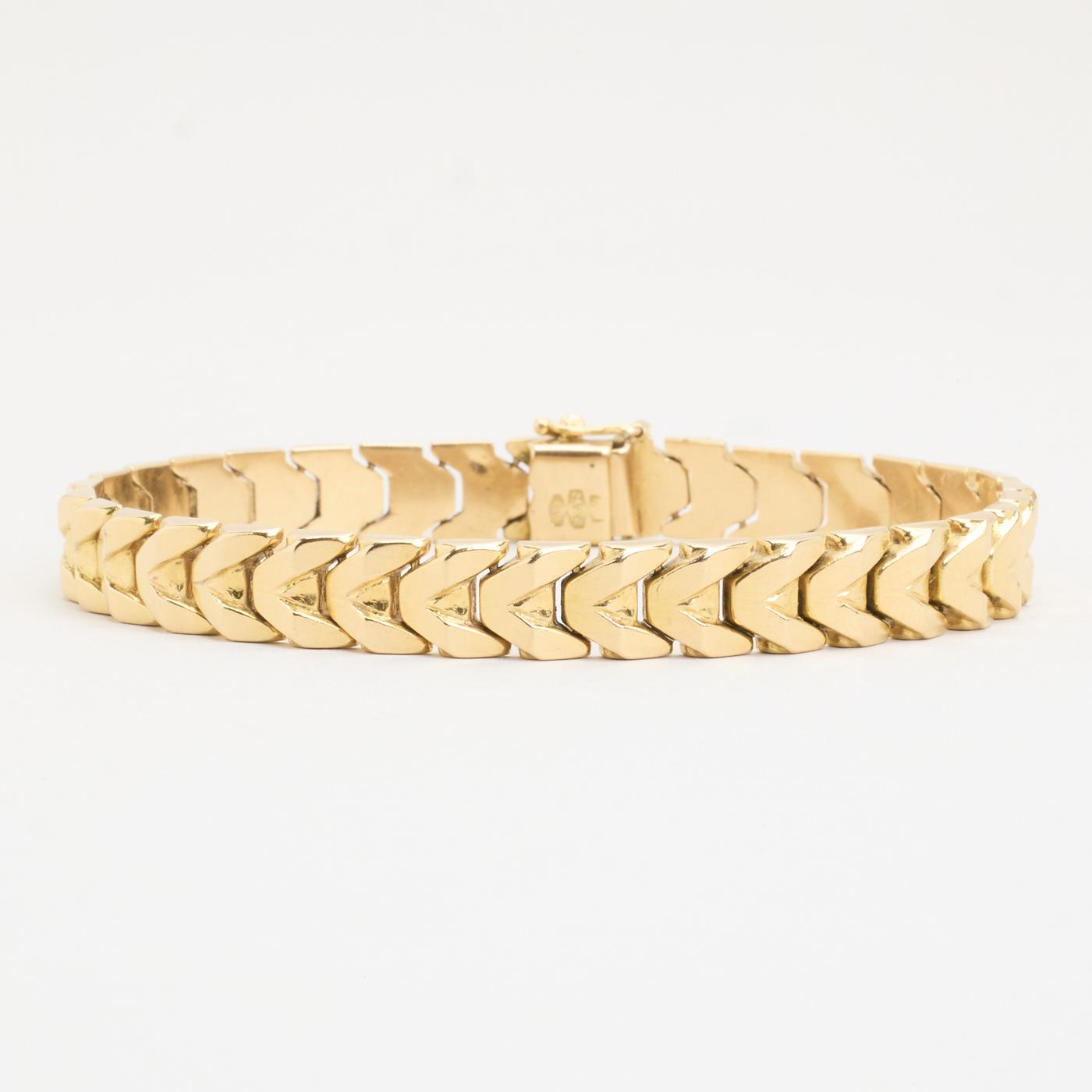 Armbånd i 18K guld med V-formede led, 19,5 cm, kasselås
