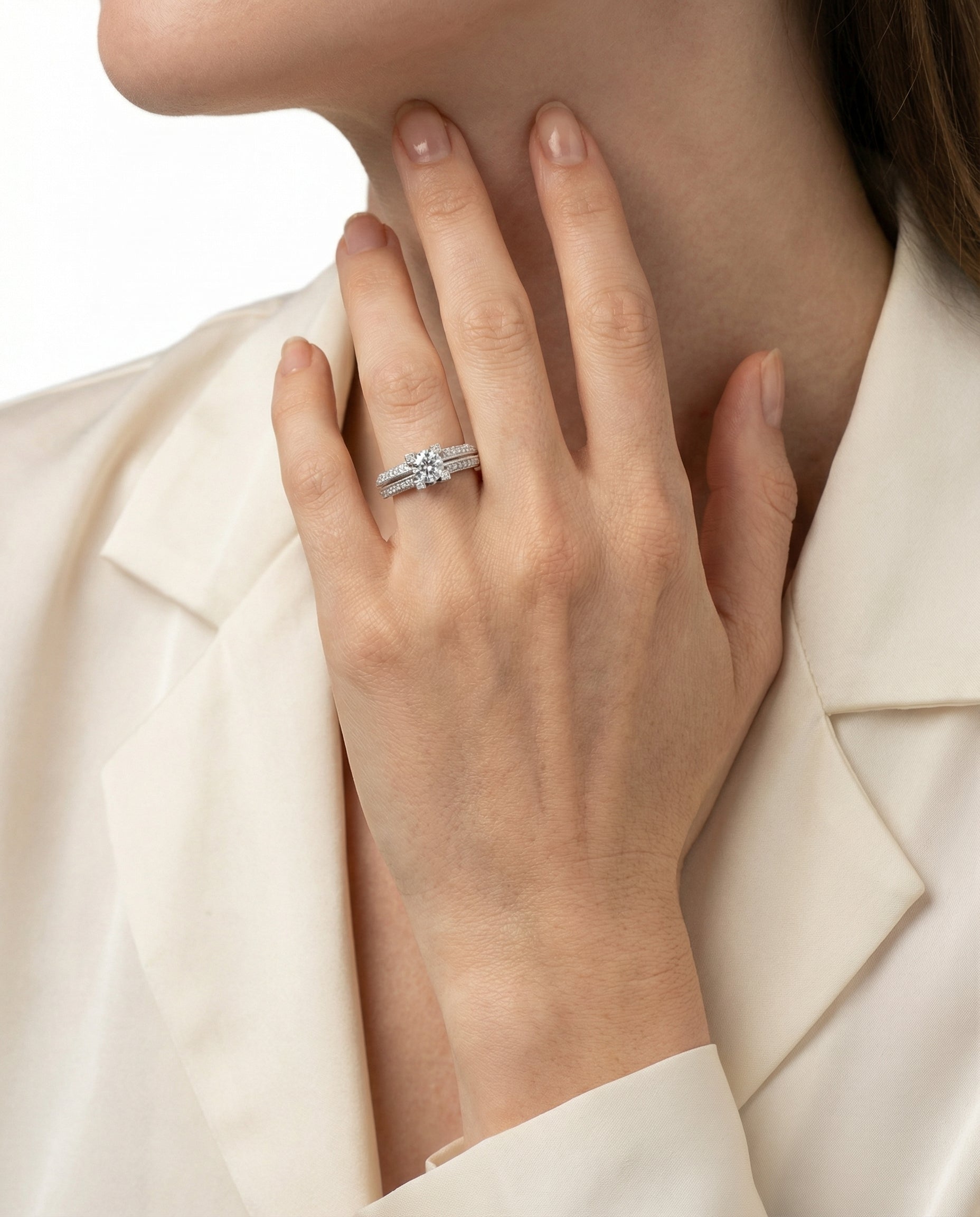 Statement ring i 18K hvidguld med diamanter (0.97 ct), Str. 54