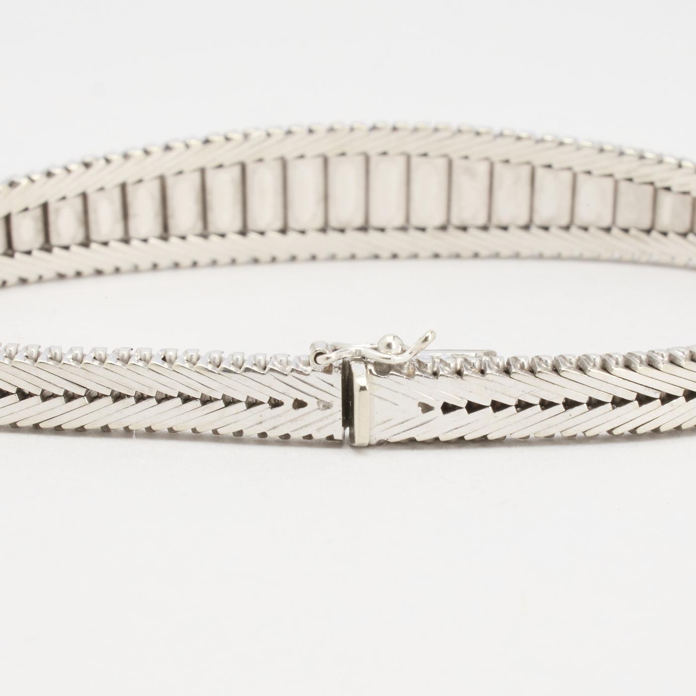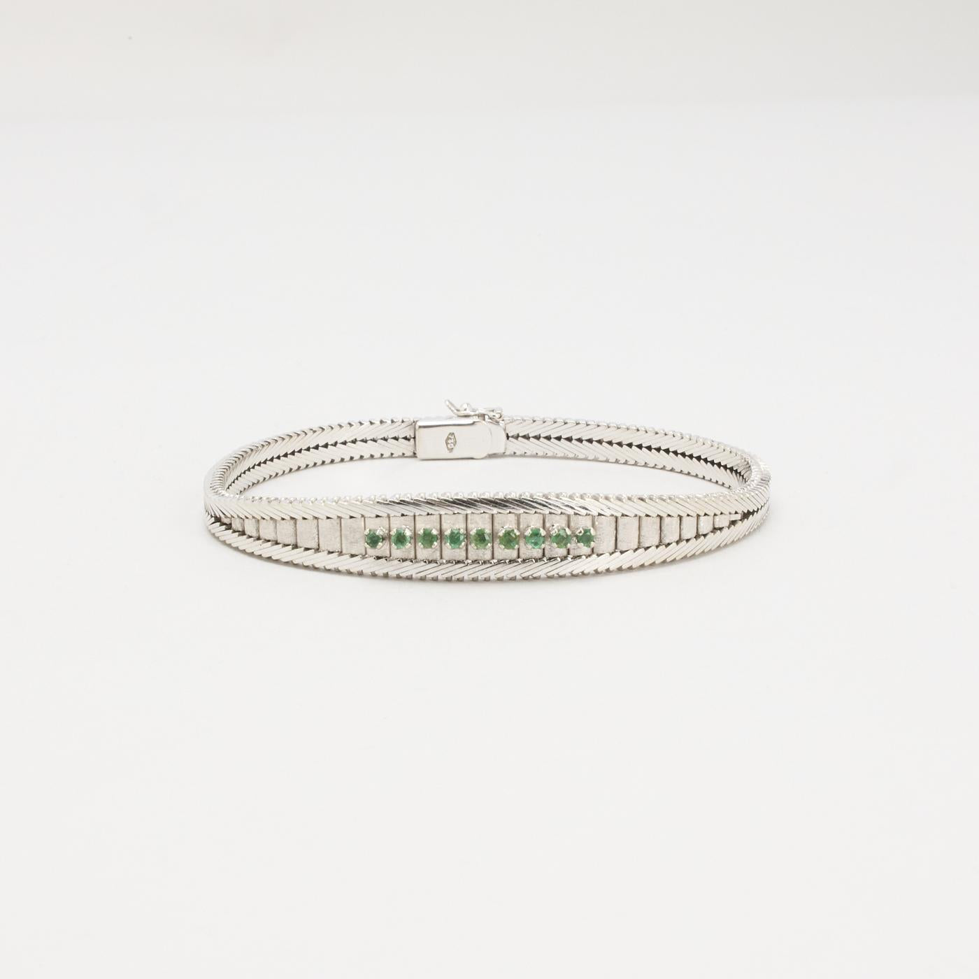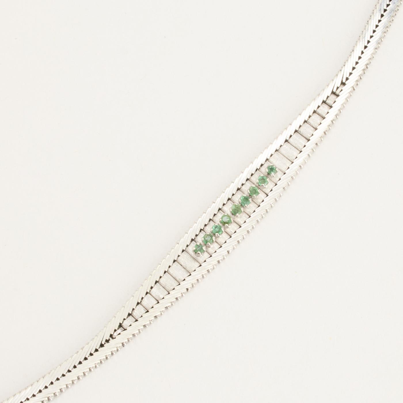 Armbånd i 18K hvidguld med grønne sten, 19 cm, kasselås med sikkerhedslukning
