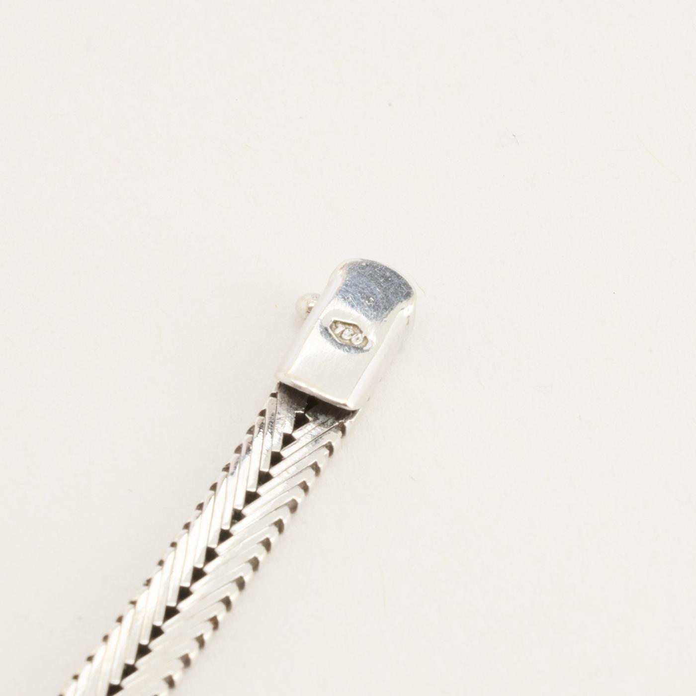 Model: Armbånd i 18K hvidguld med grønne sten, 19 cm, kasselås med sikkerhedslukning