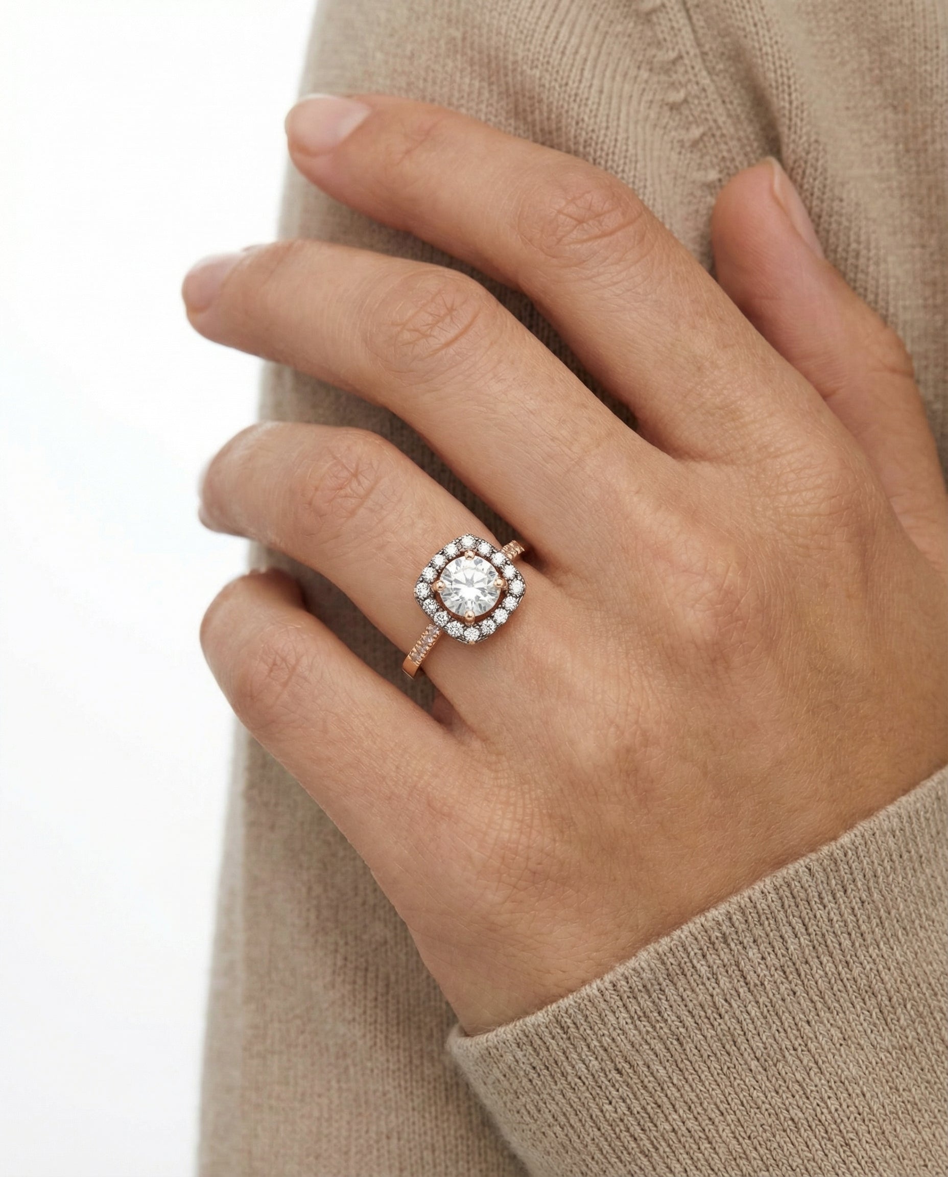 Rosetring i 14K roséguld med flere zirkoniaer, Str. 54