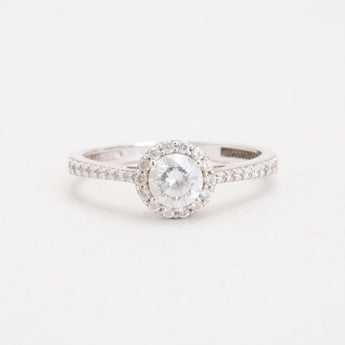 Rosetring i 14K hvidguld med flere zirkoniaer, Str. 55