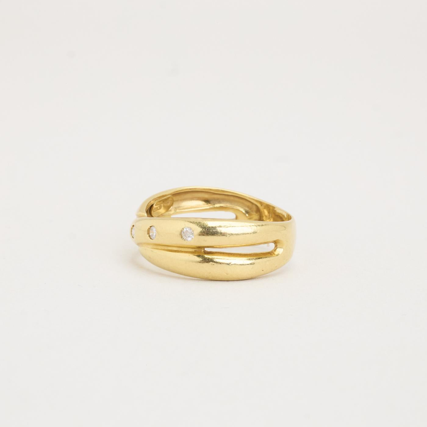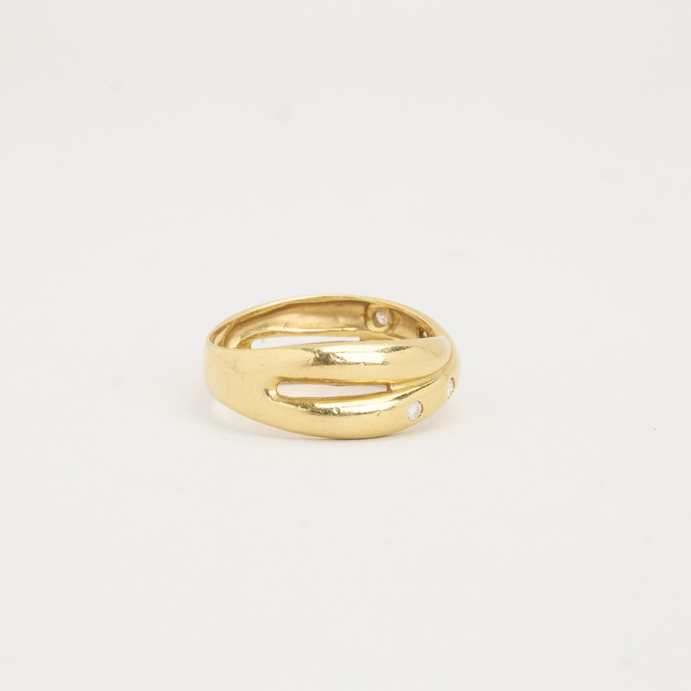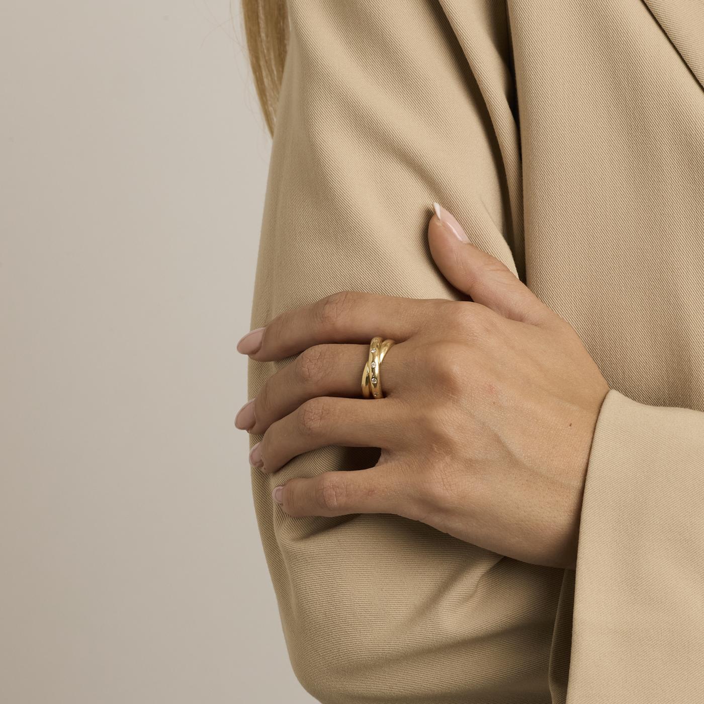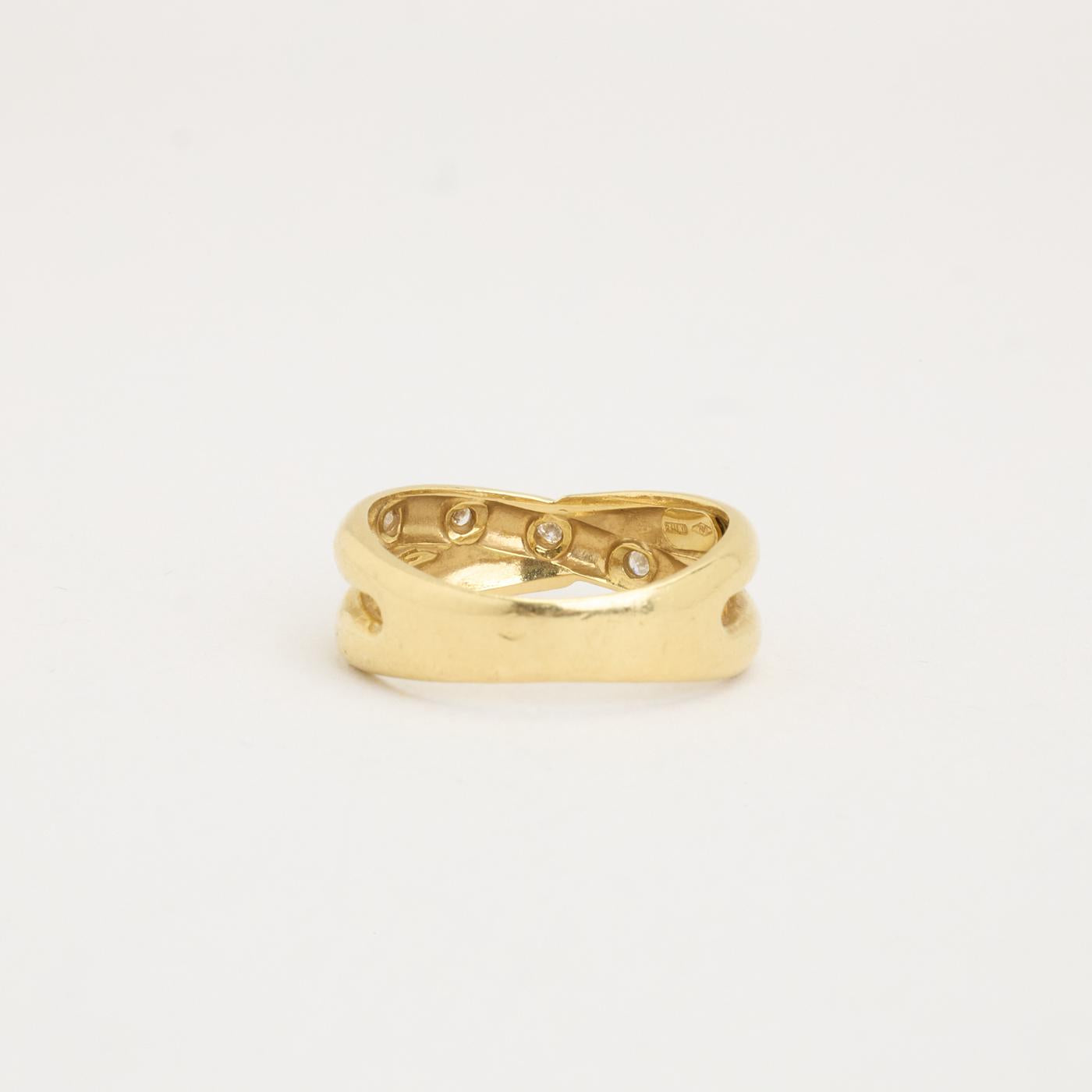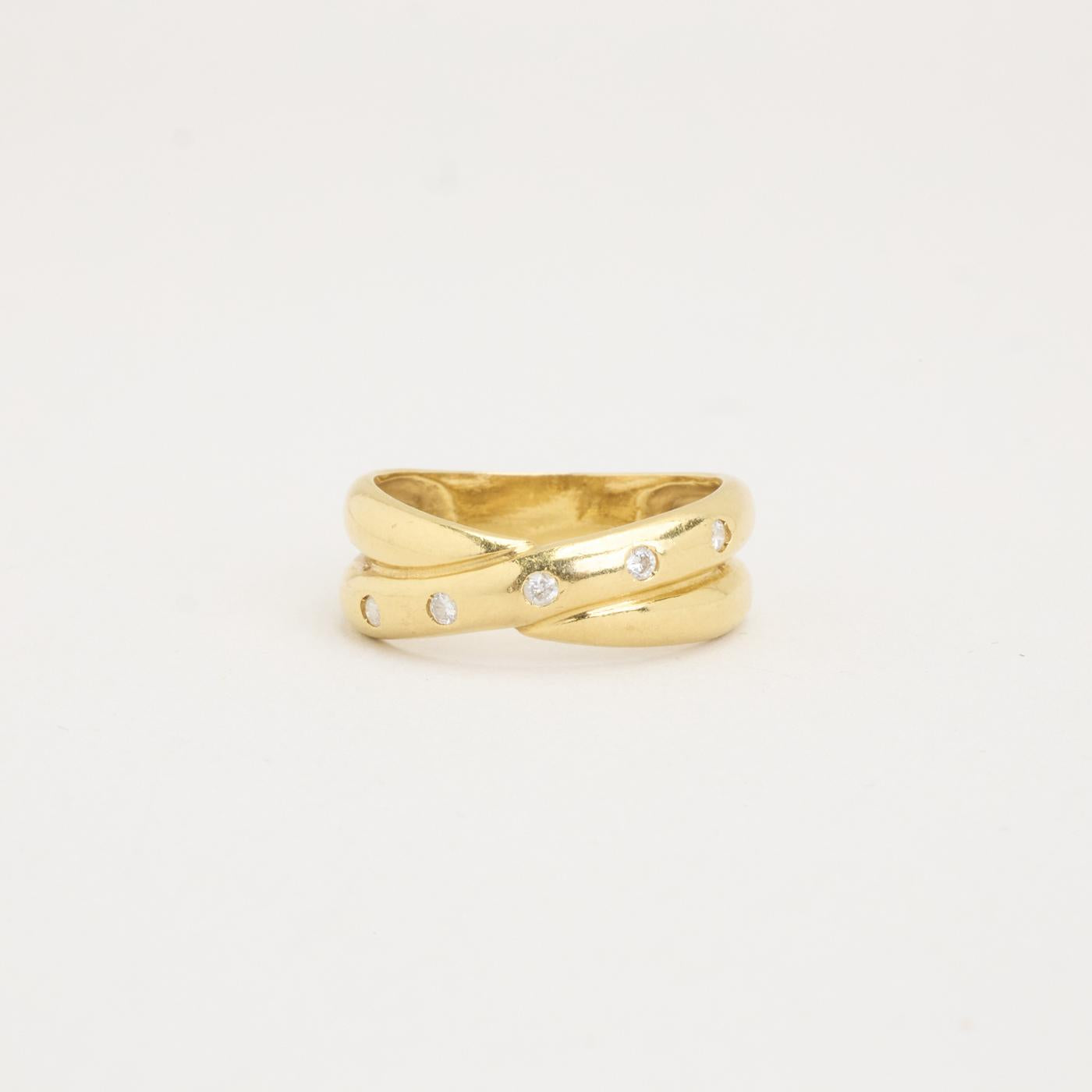 Crossoverring i 18K guld, med diamanter (0,11 ct), Str. 53