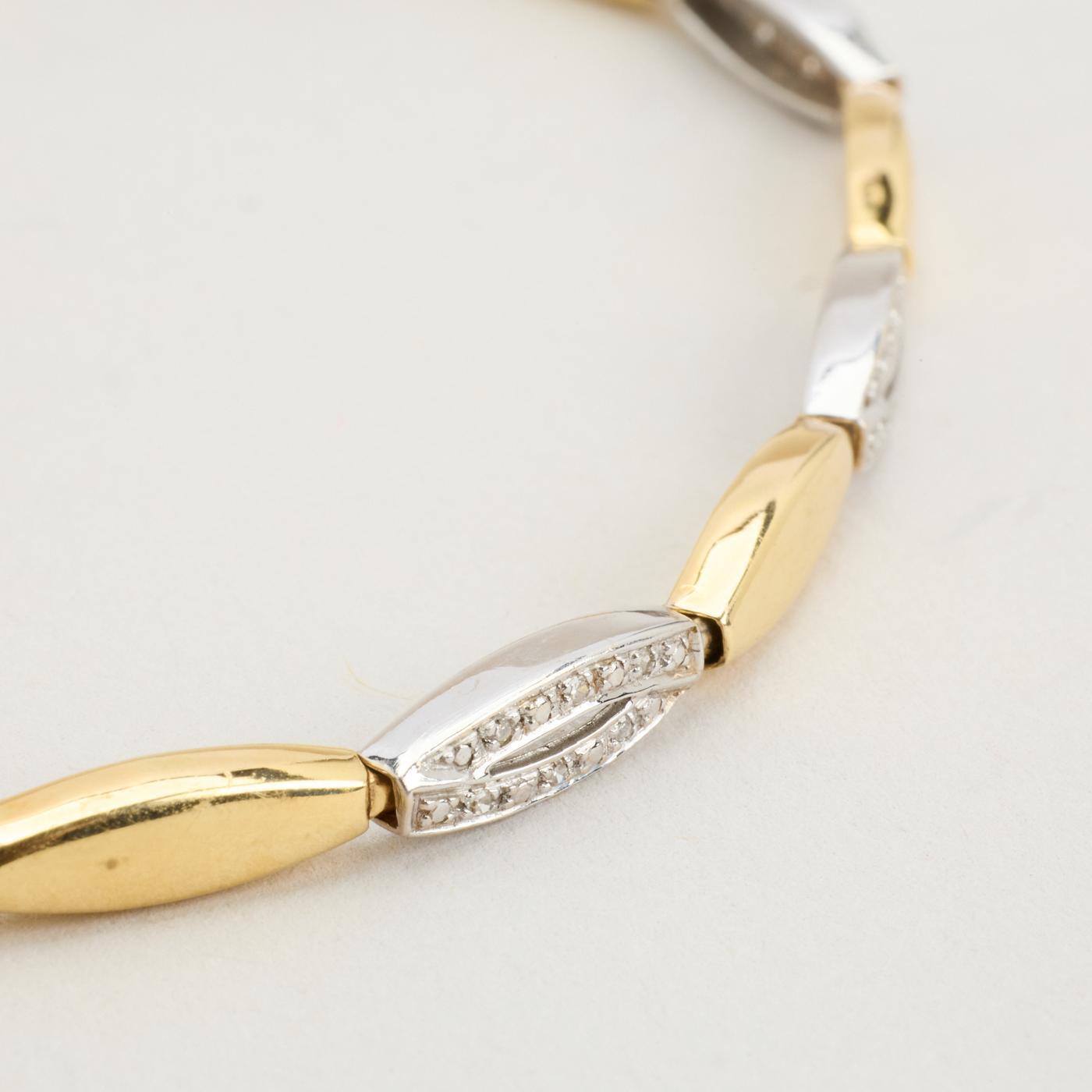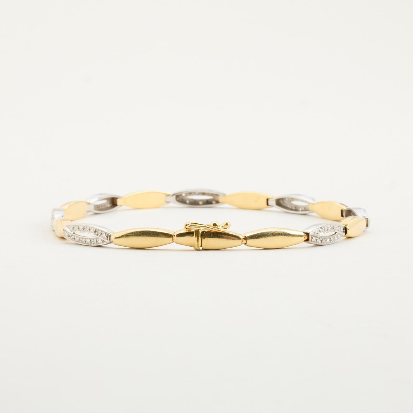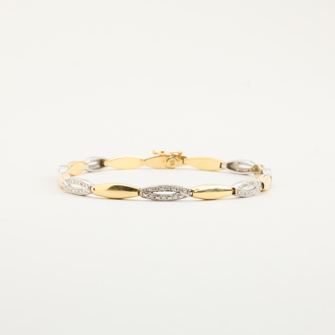 Armbånd i 14K guld og hvidguld med hvide sten, 19.5 cm
