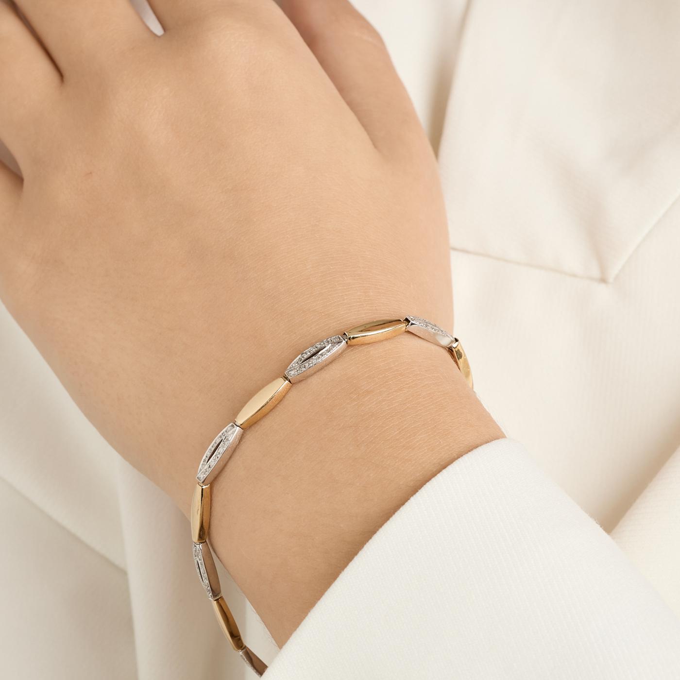 Model: Armbånd i 14K guld og hvidguld med hvide sten, 19.5 cm