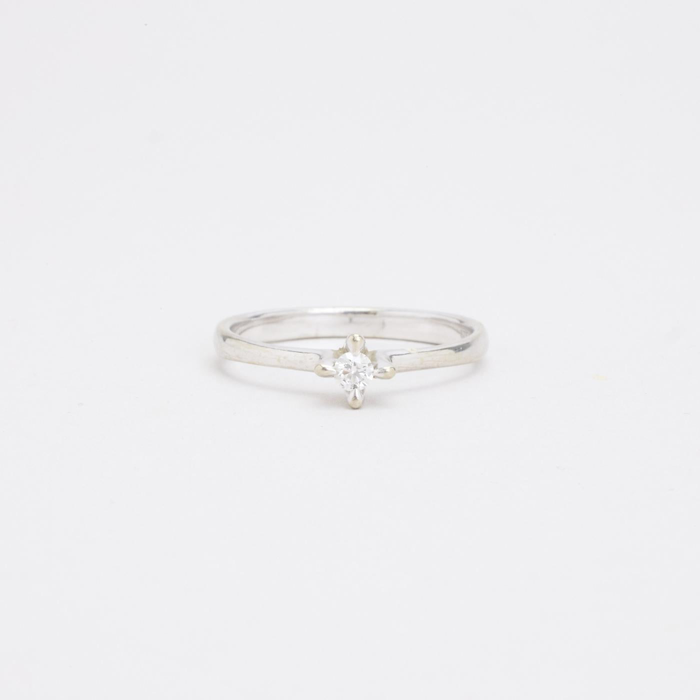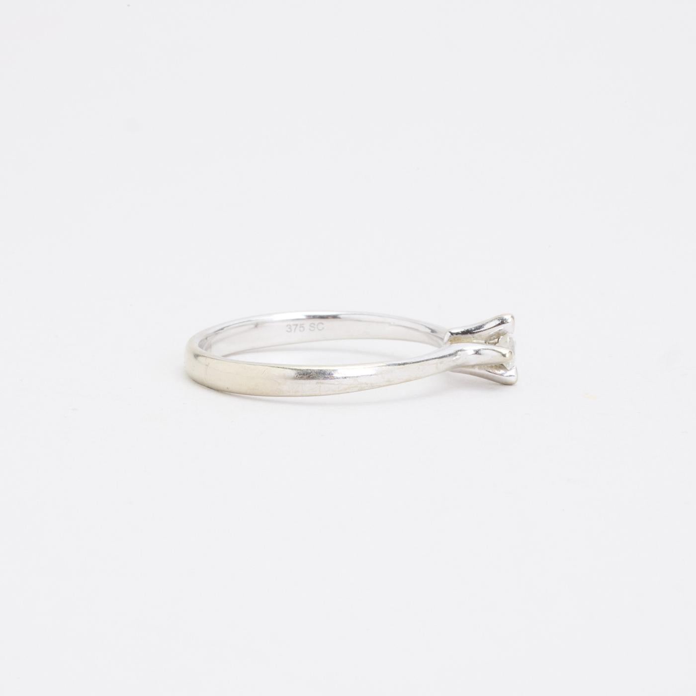 Solitairering i 9K hvidguld, med diamant (0,11 ct), Str. 60