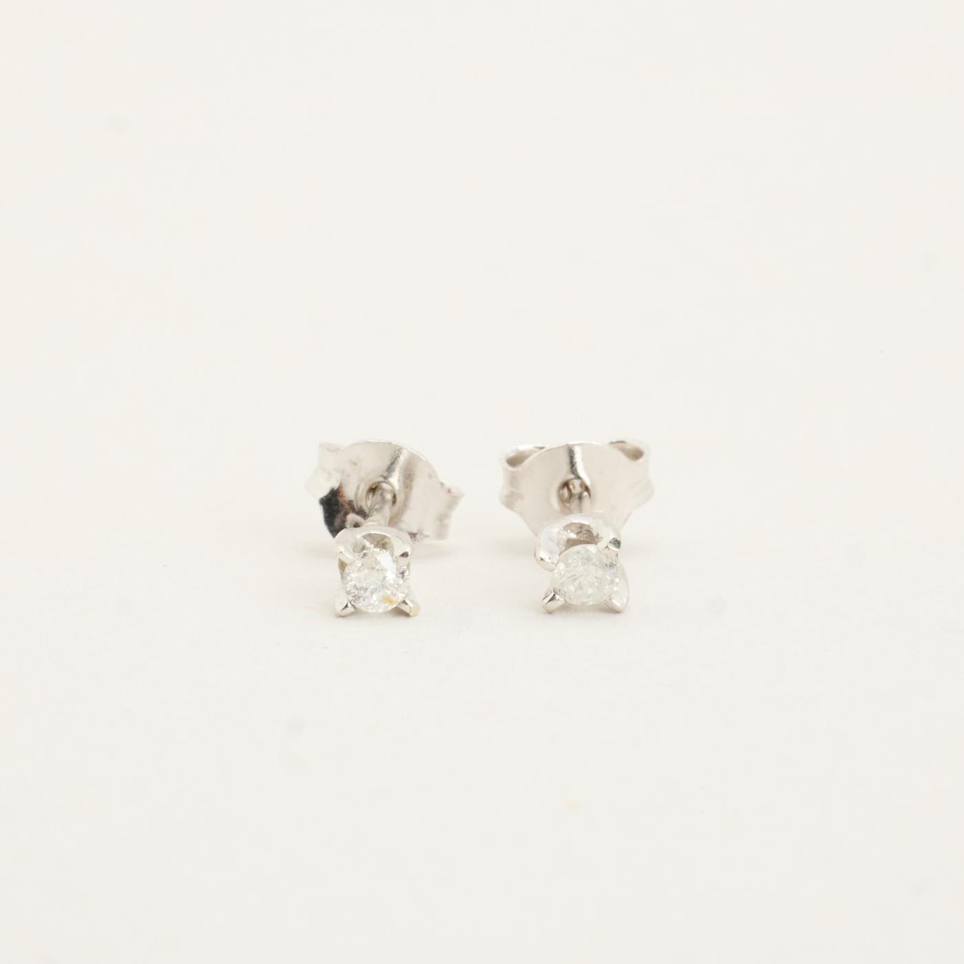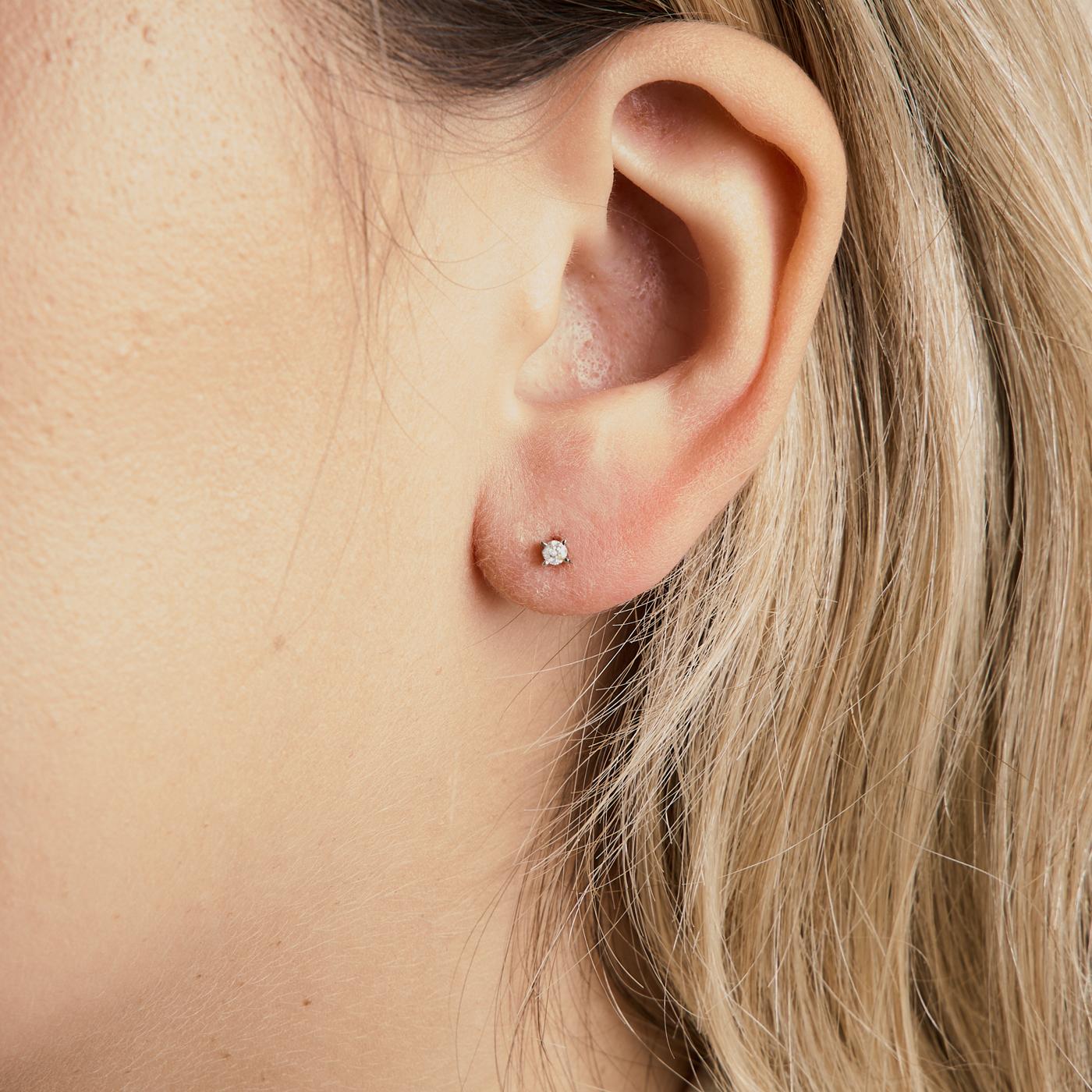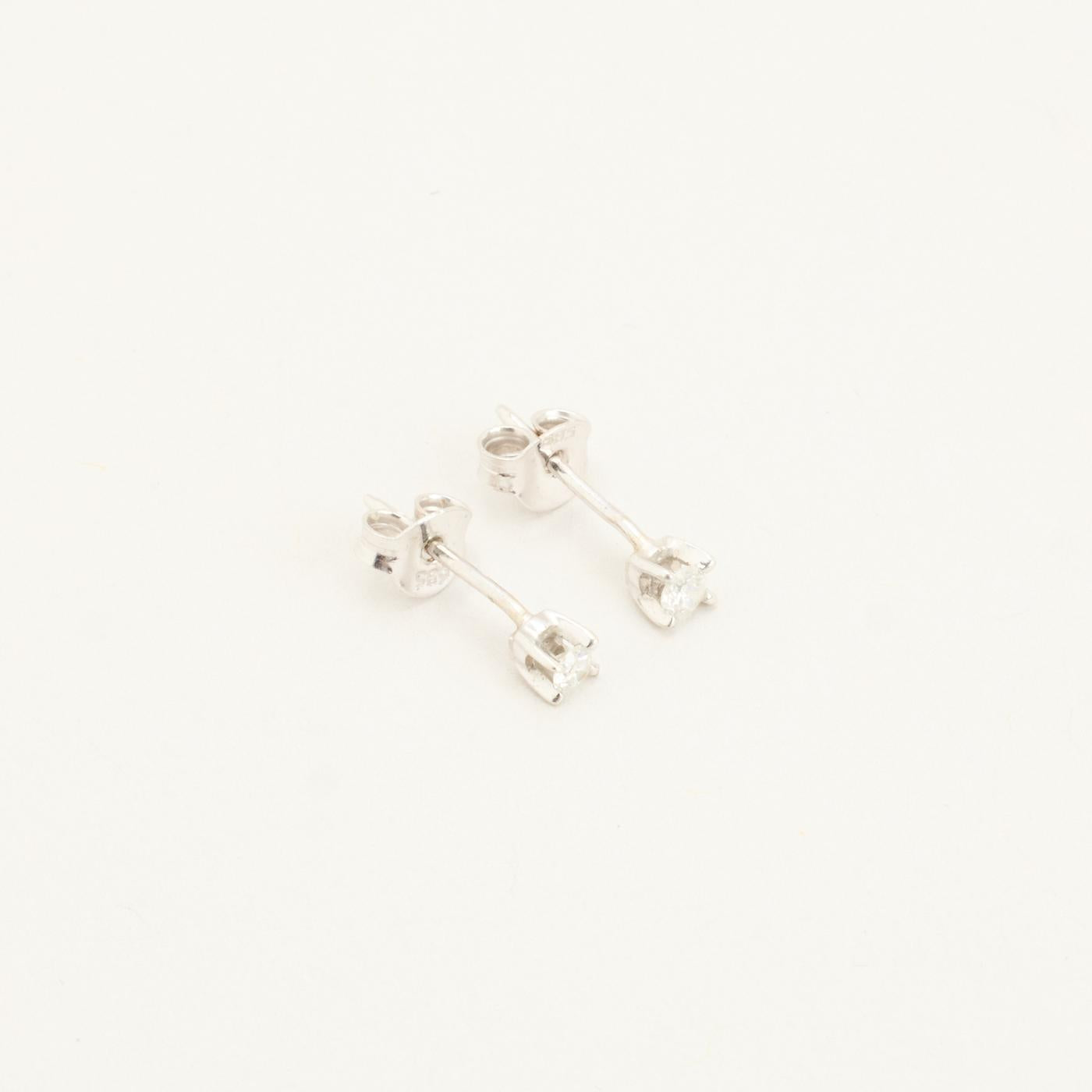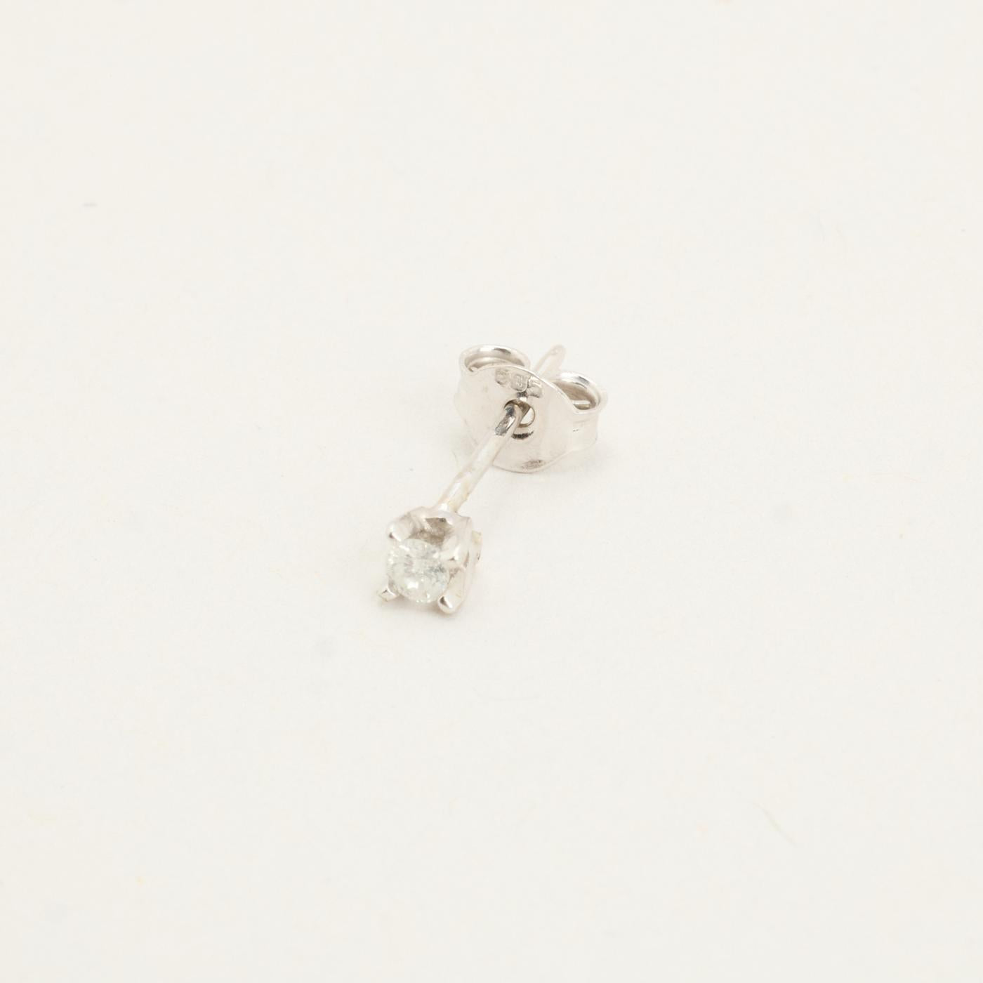 Solitaire ørestikker i 14K hvidguld, med klare sten, 0,3 cm
