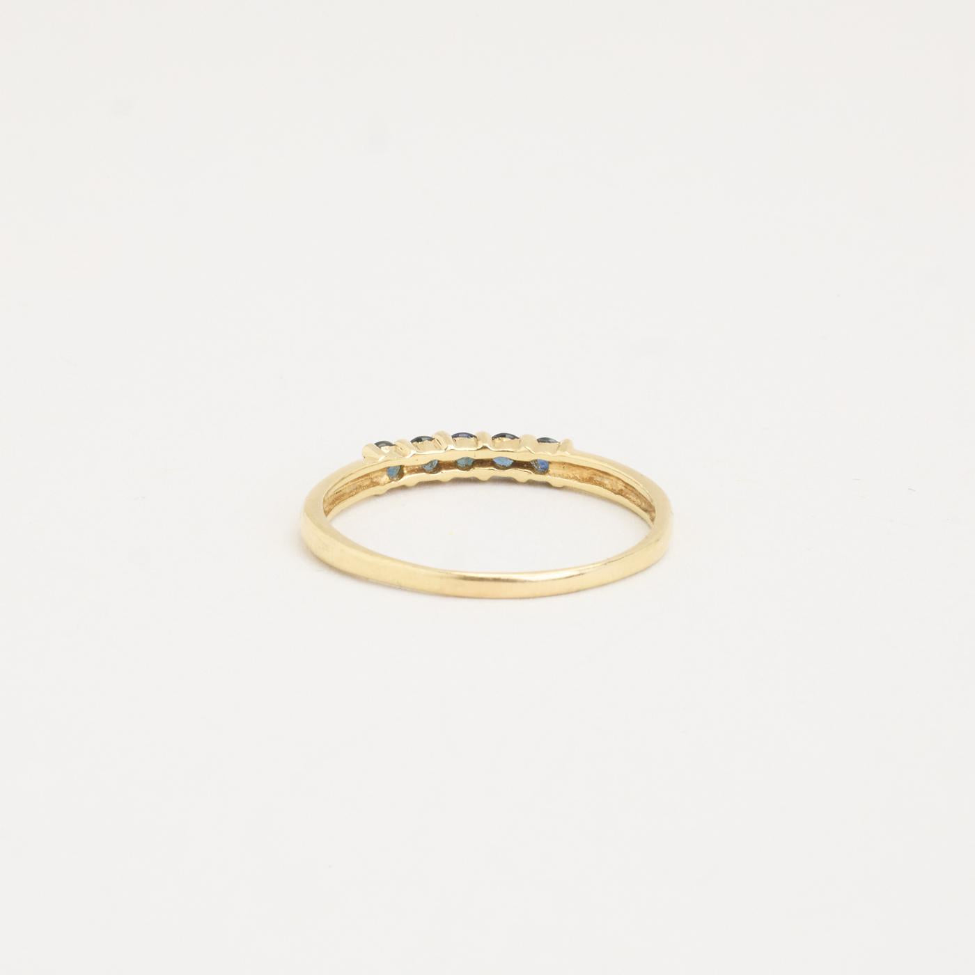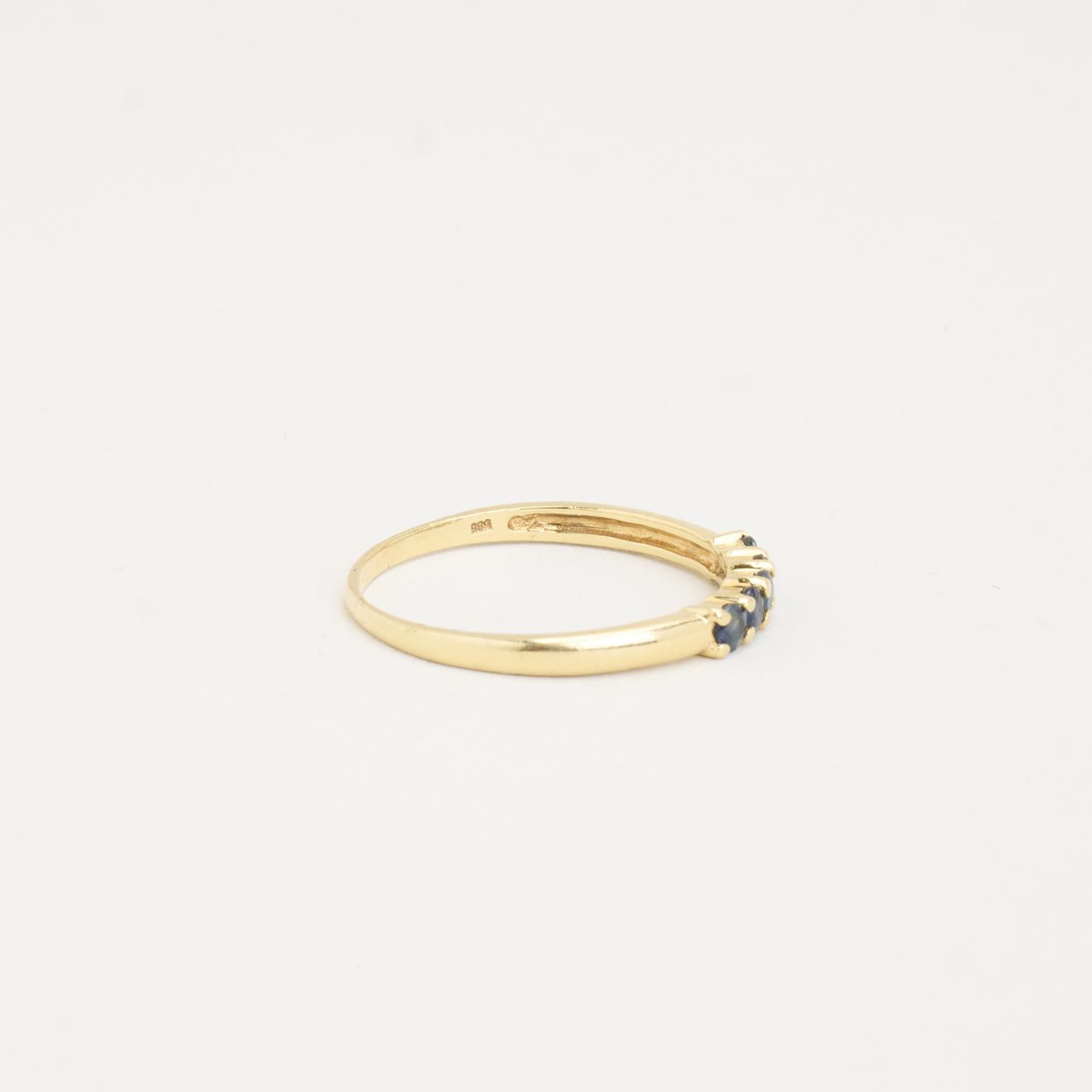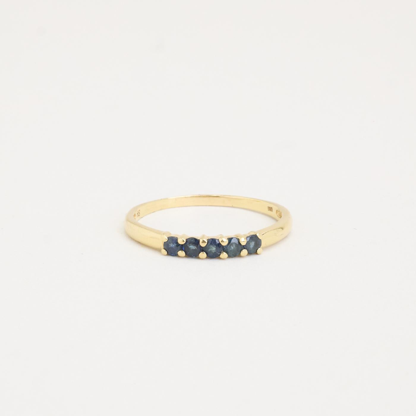 Femstensring i 14K guld med fem små blå sten, Str. 60