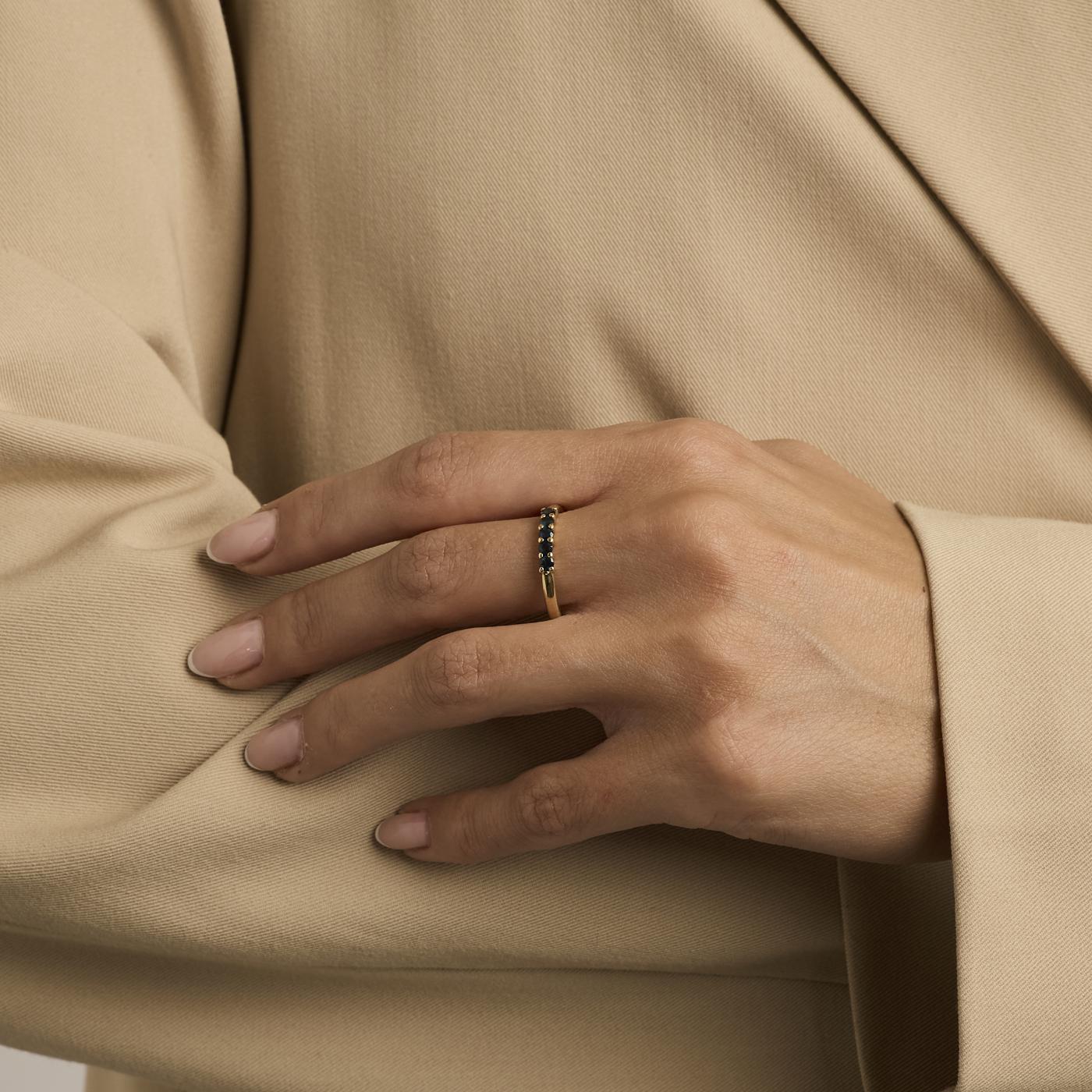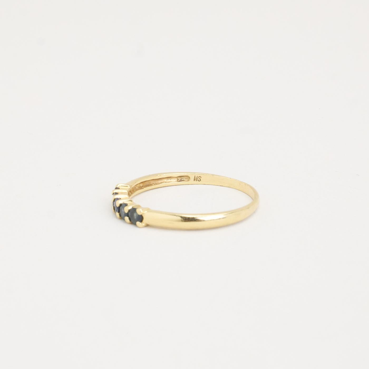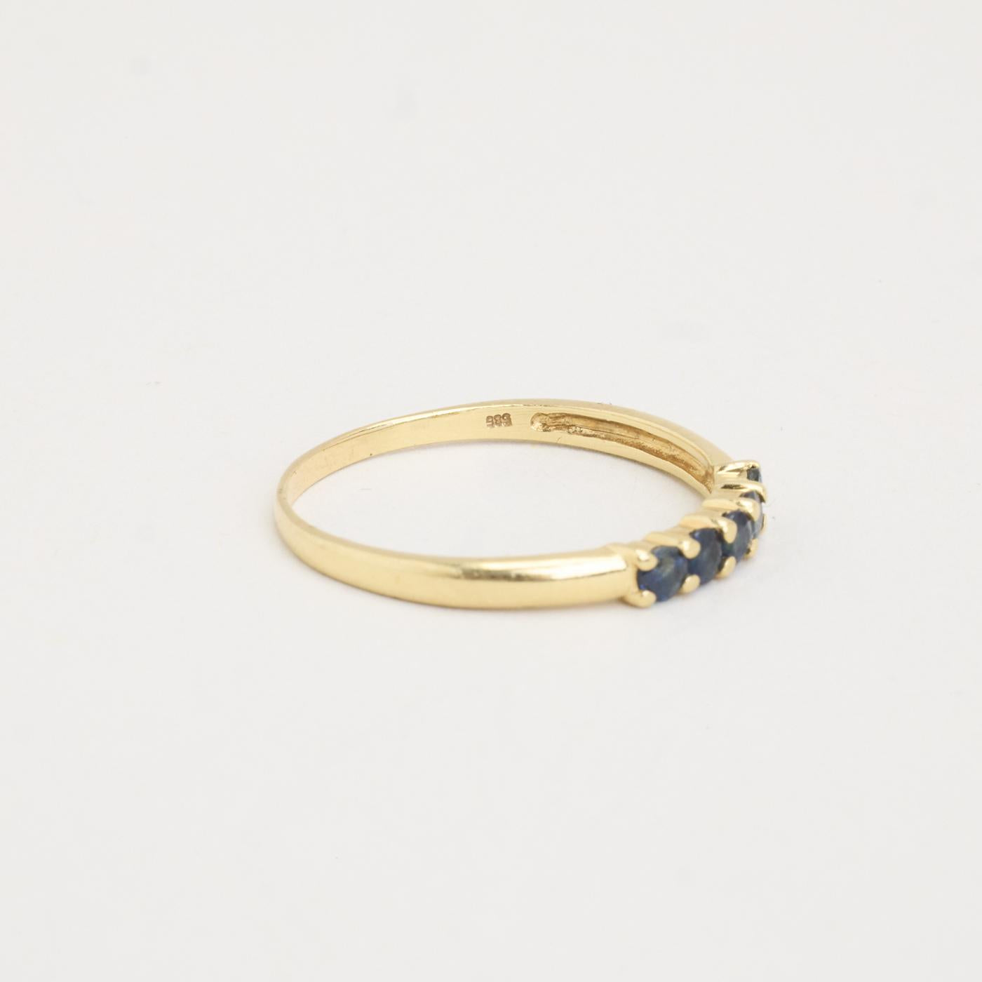 Femstensring i 14K guld med fem små blå sten, Str. 60