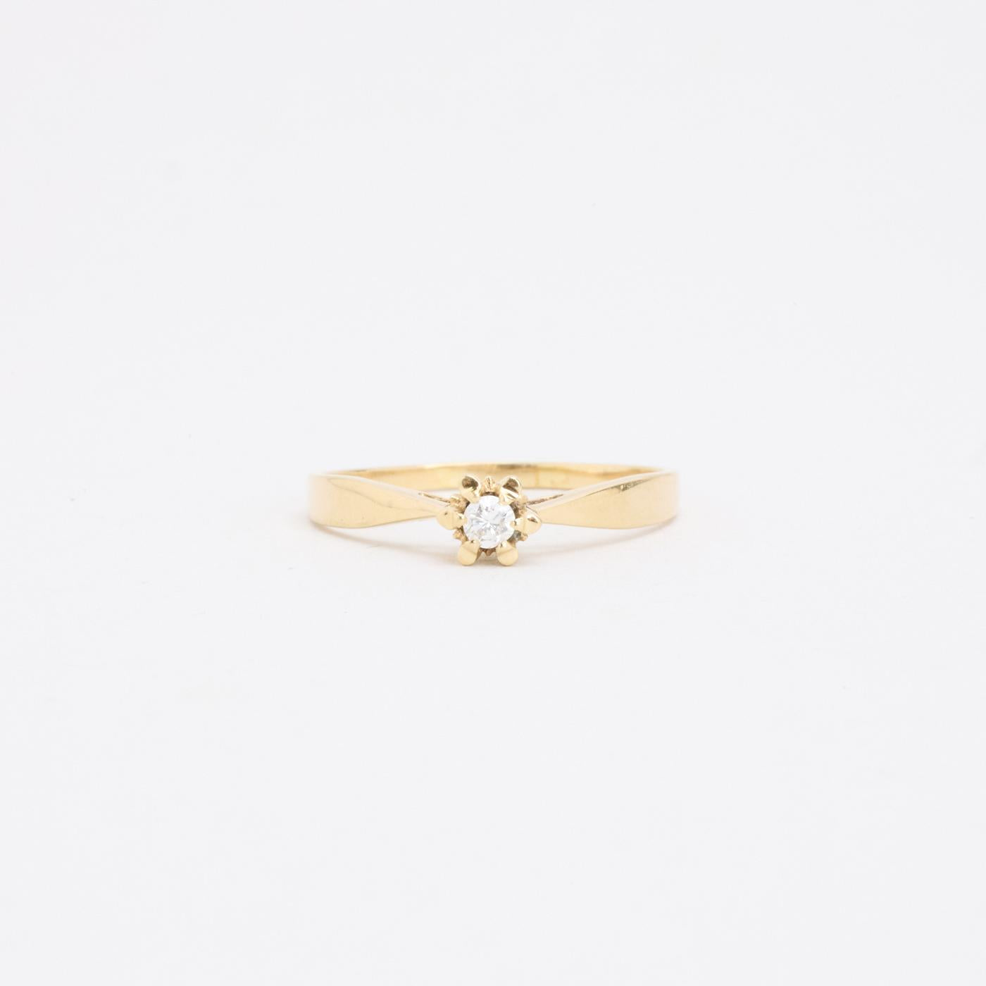 Solitaire ring i 14K guld, med diamant (0,07 ct), Str. 58