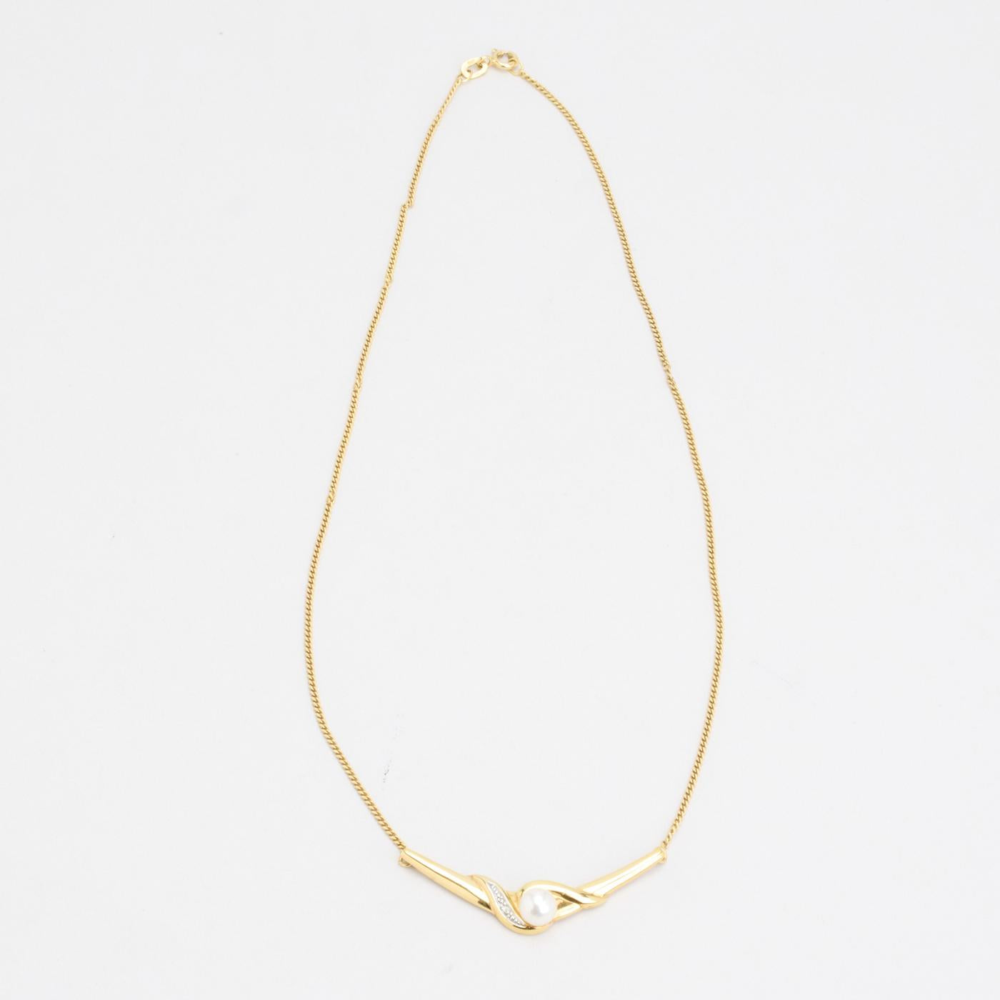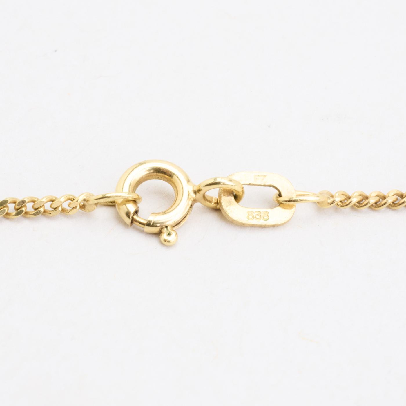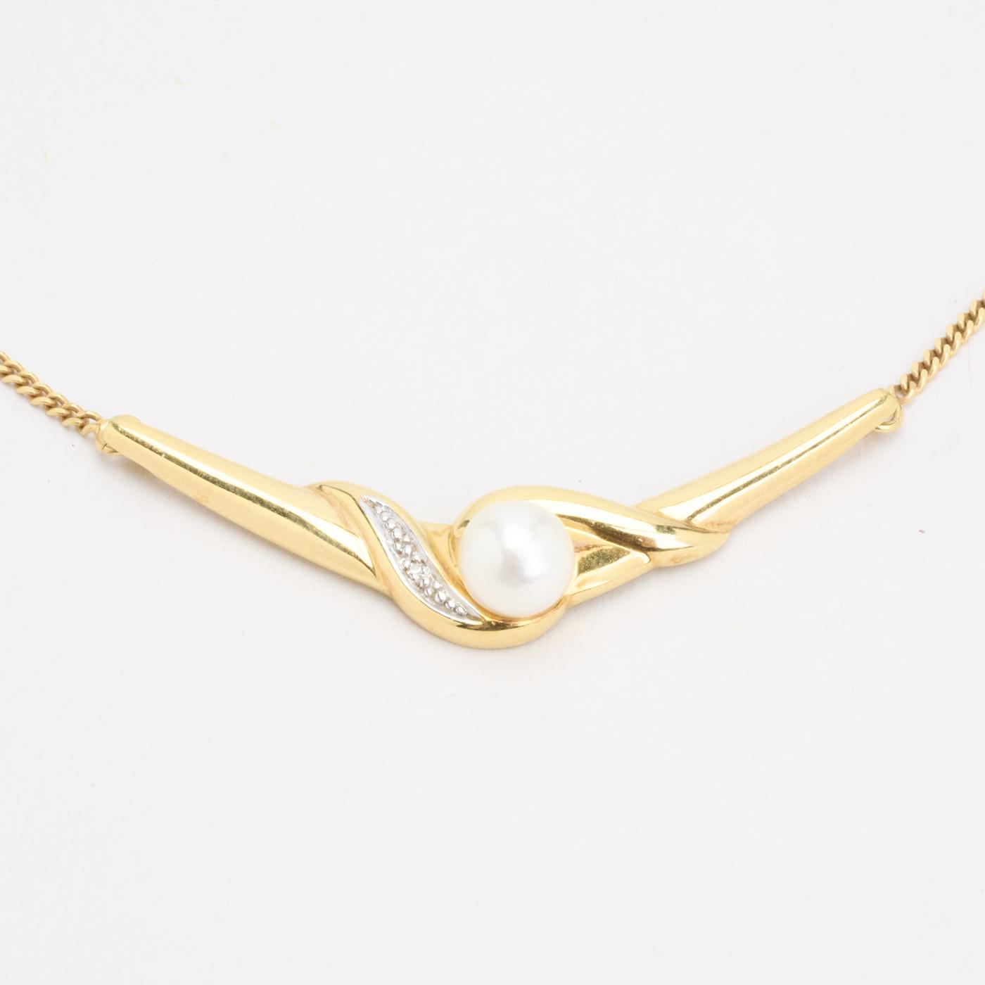 Panser halskæde i 8K guld med perle og zirkonia, 41,5 cm