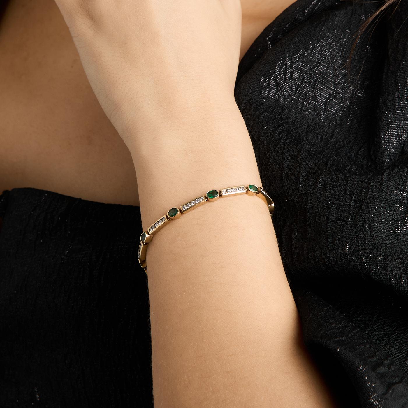 Model: Armbånd i 14K guld med diamanter (1.57 ct) og smaragder, 18 cm