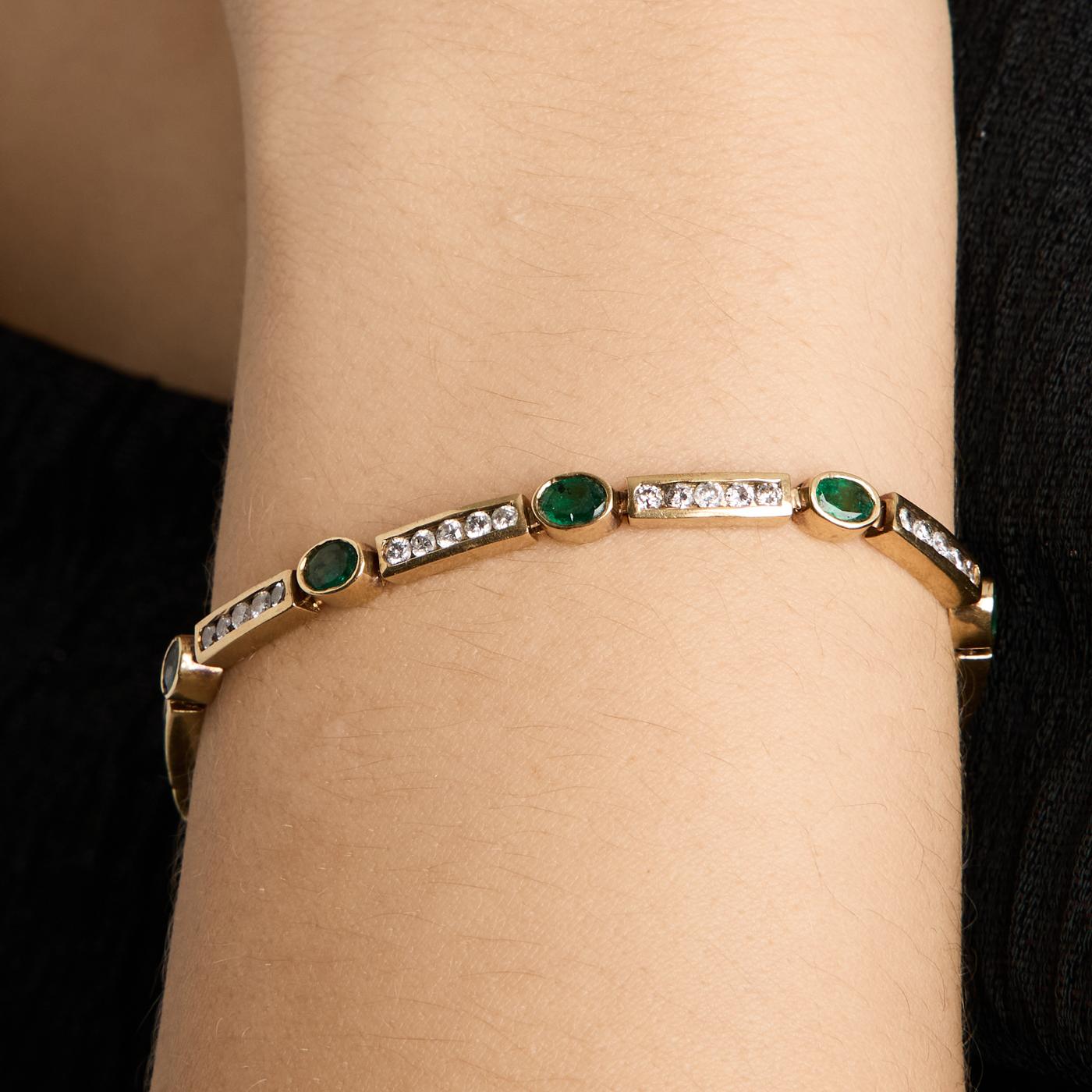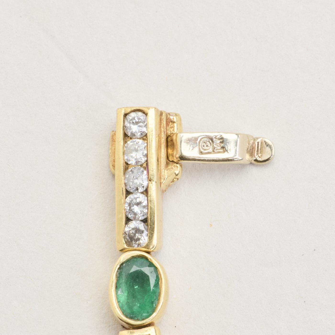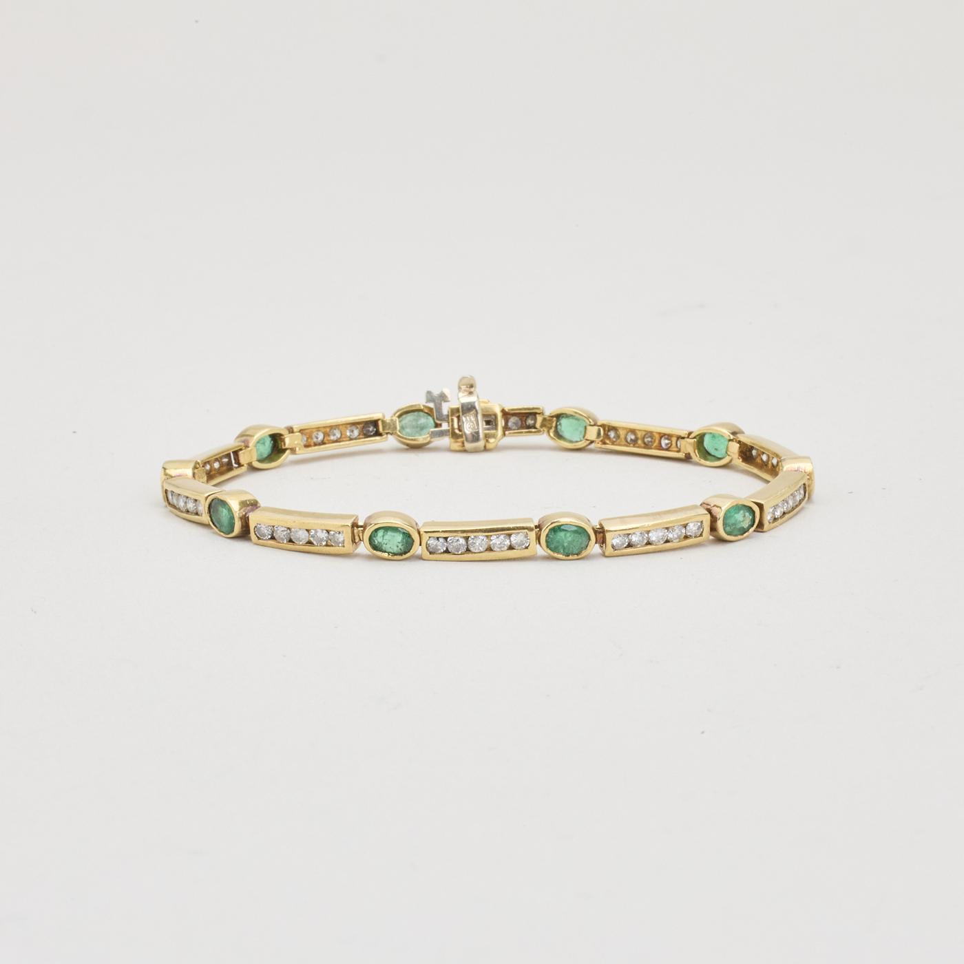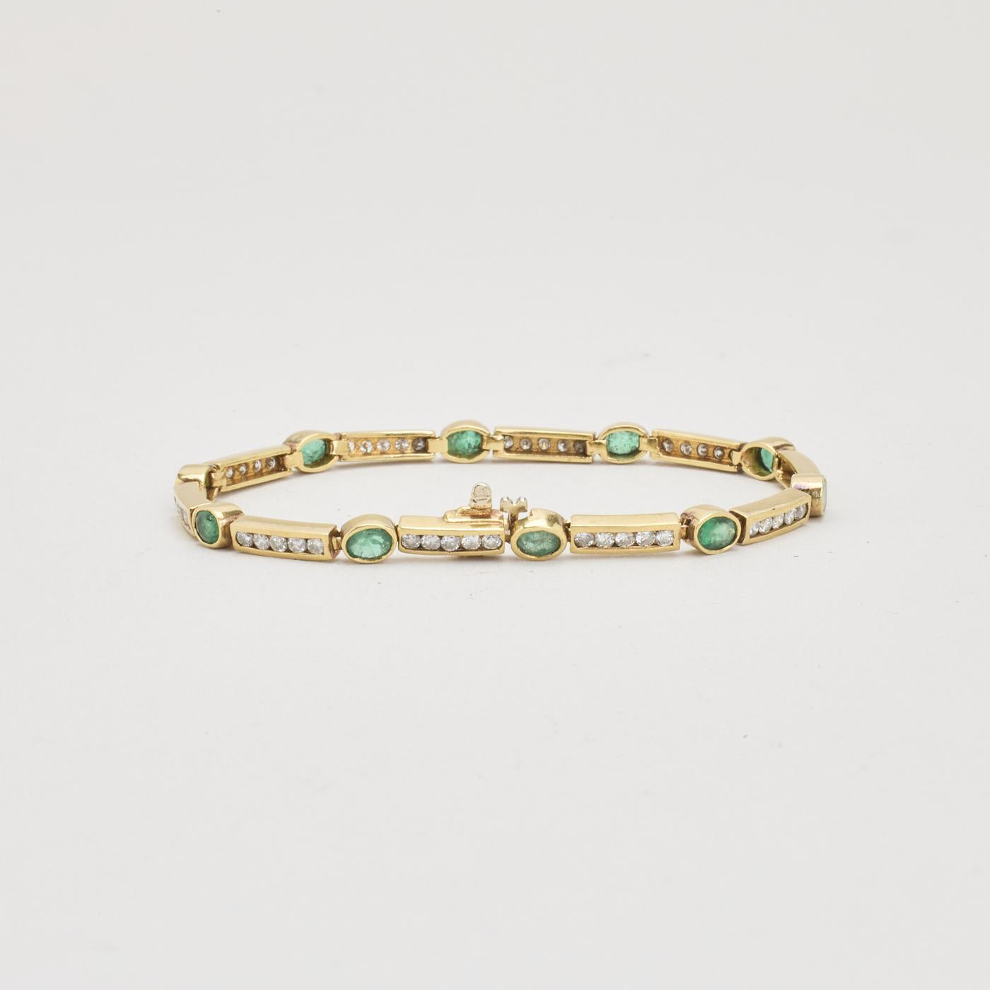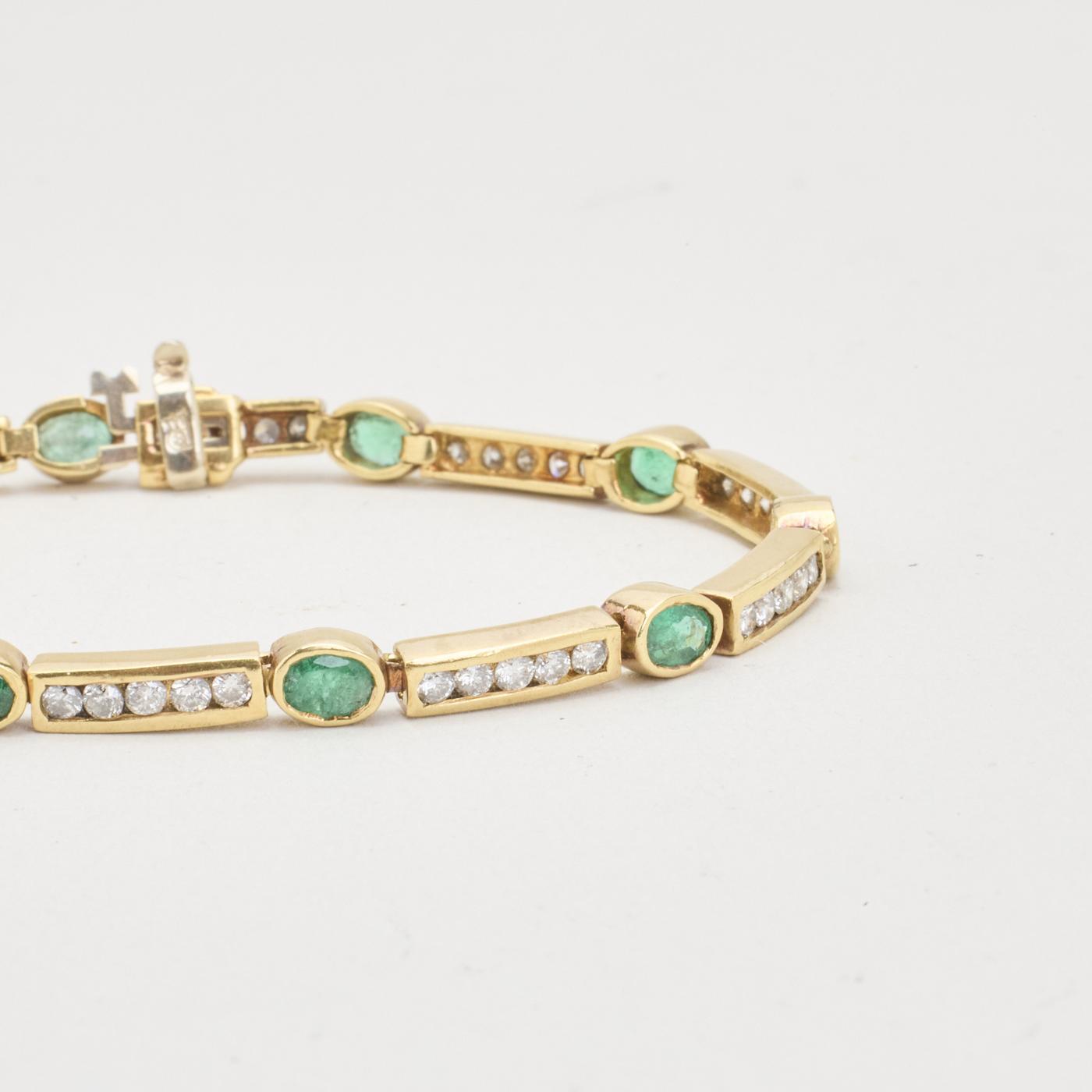 Armbånd i 14K guld med diamanter (1.57 ct) og smaragder, 18 cm