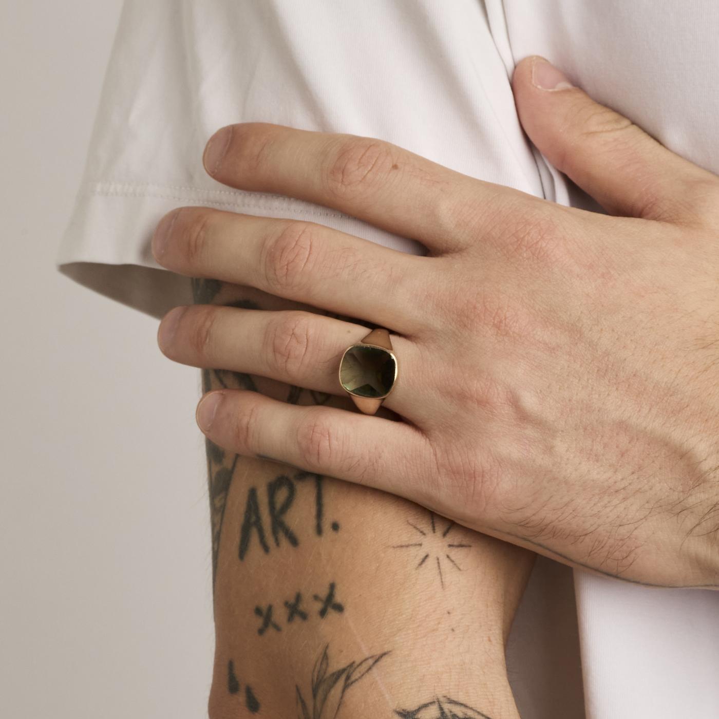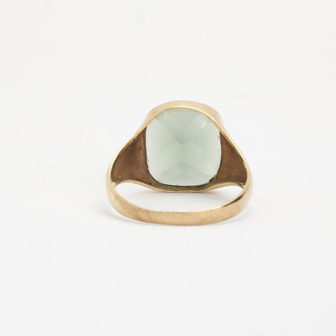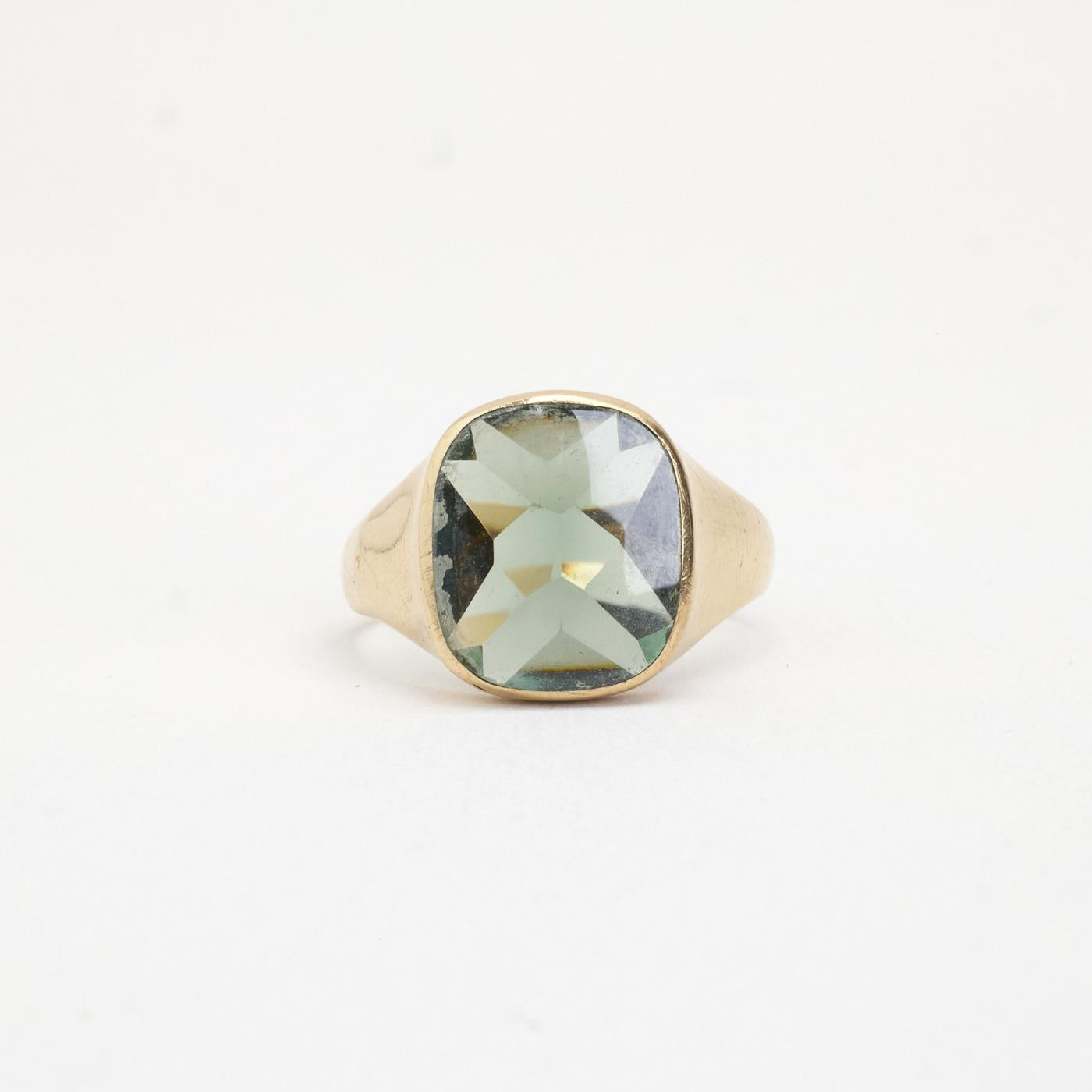 Statement ring i 8K guld med stor, lysegrøn, facetteret sten, Str. 62