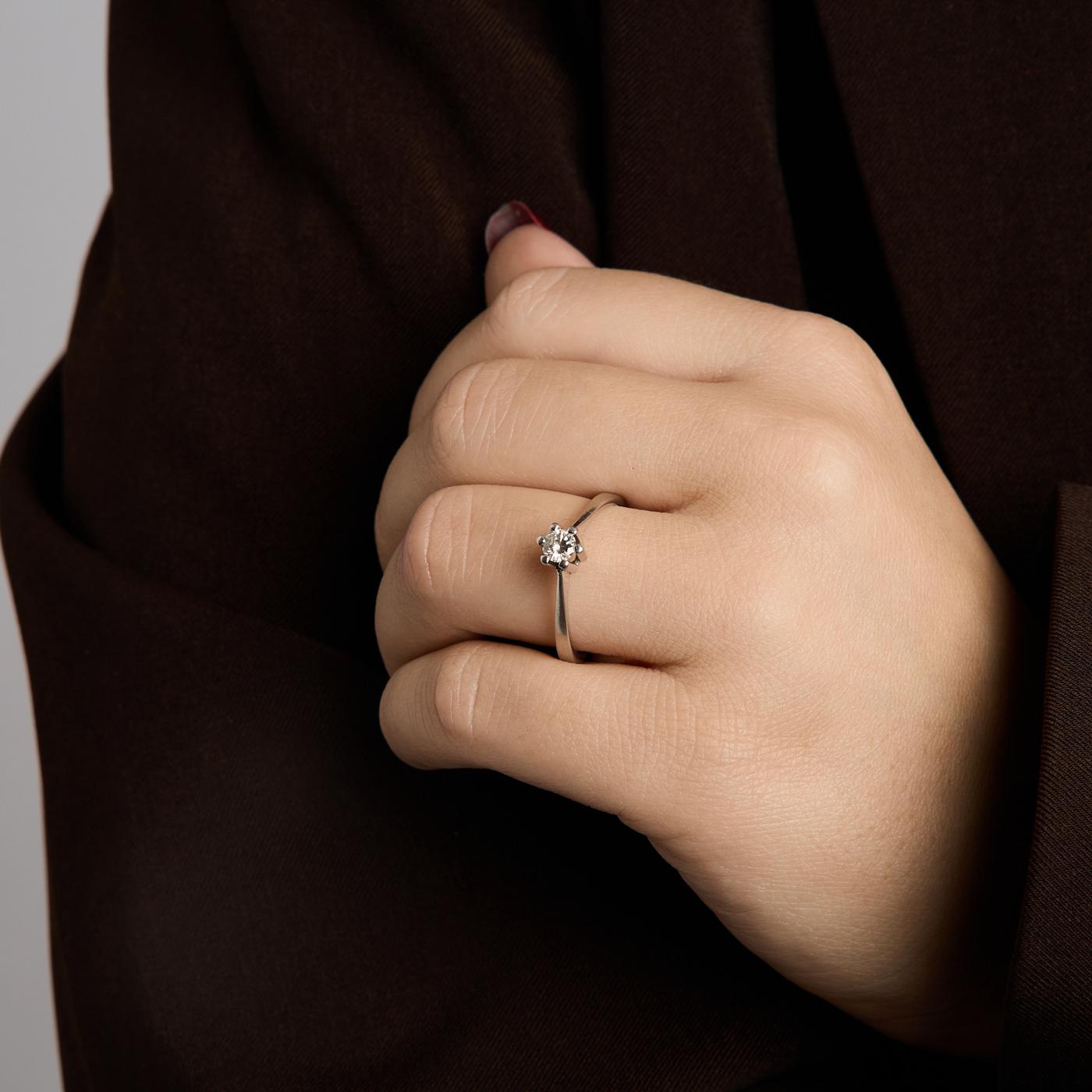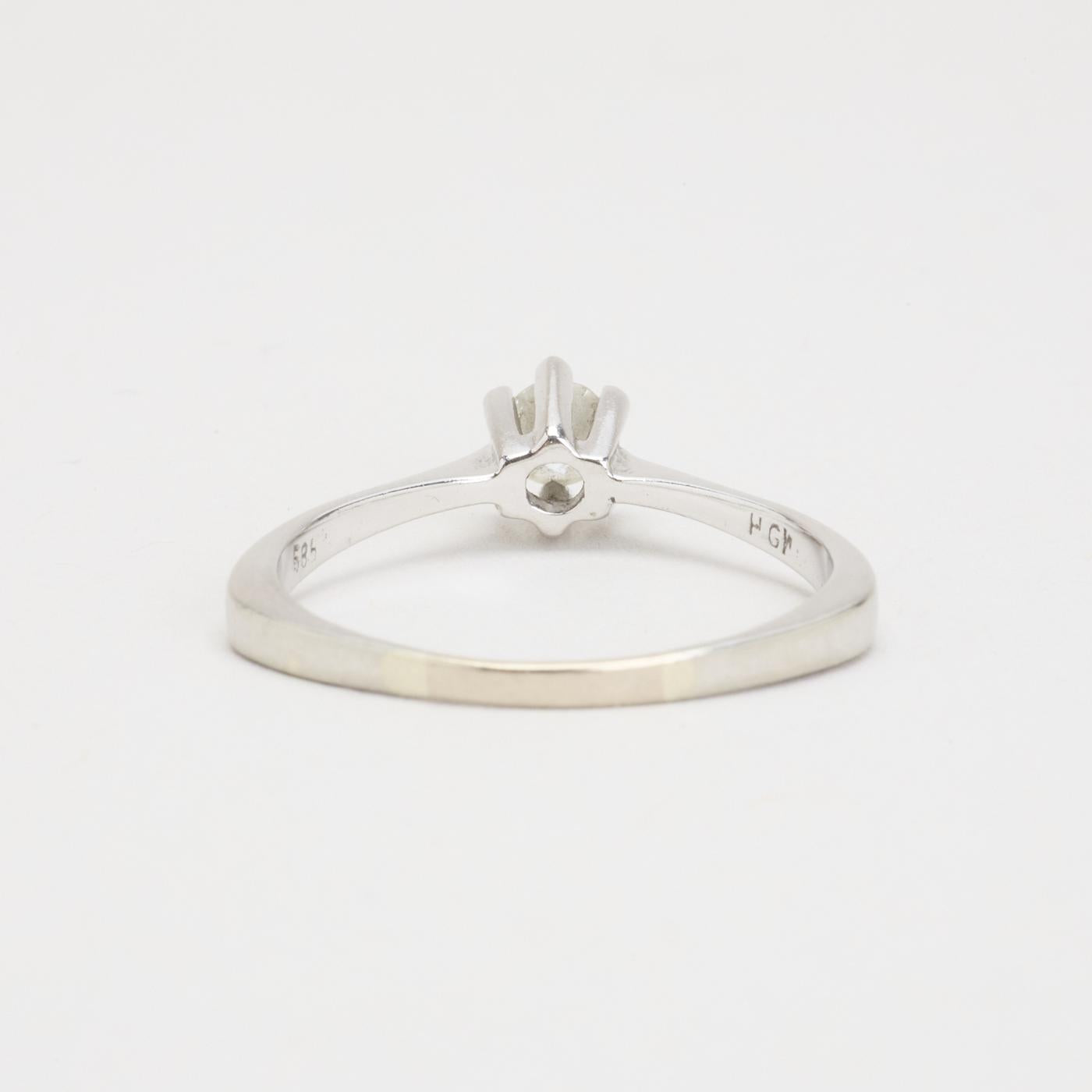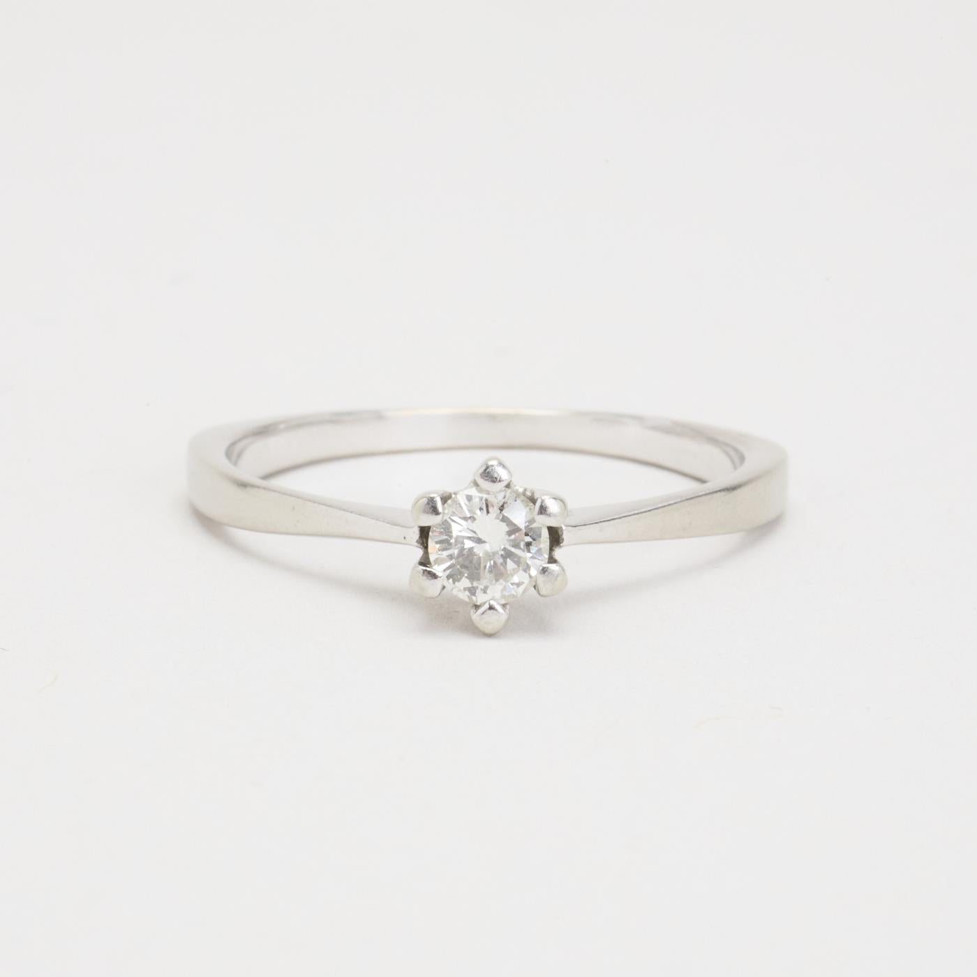 Solitairering i 14K hvidguld med en diamant (0.27 ct), Str. 59