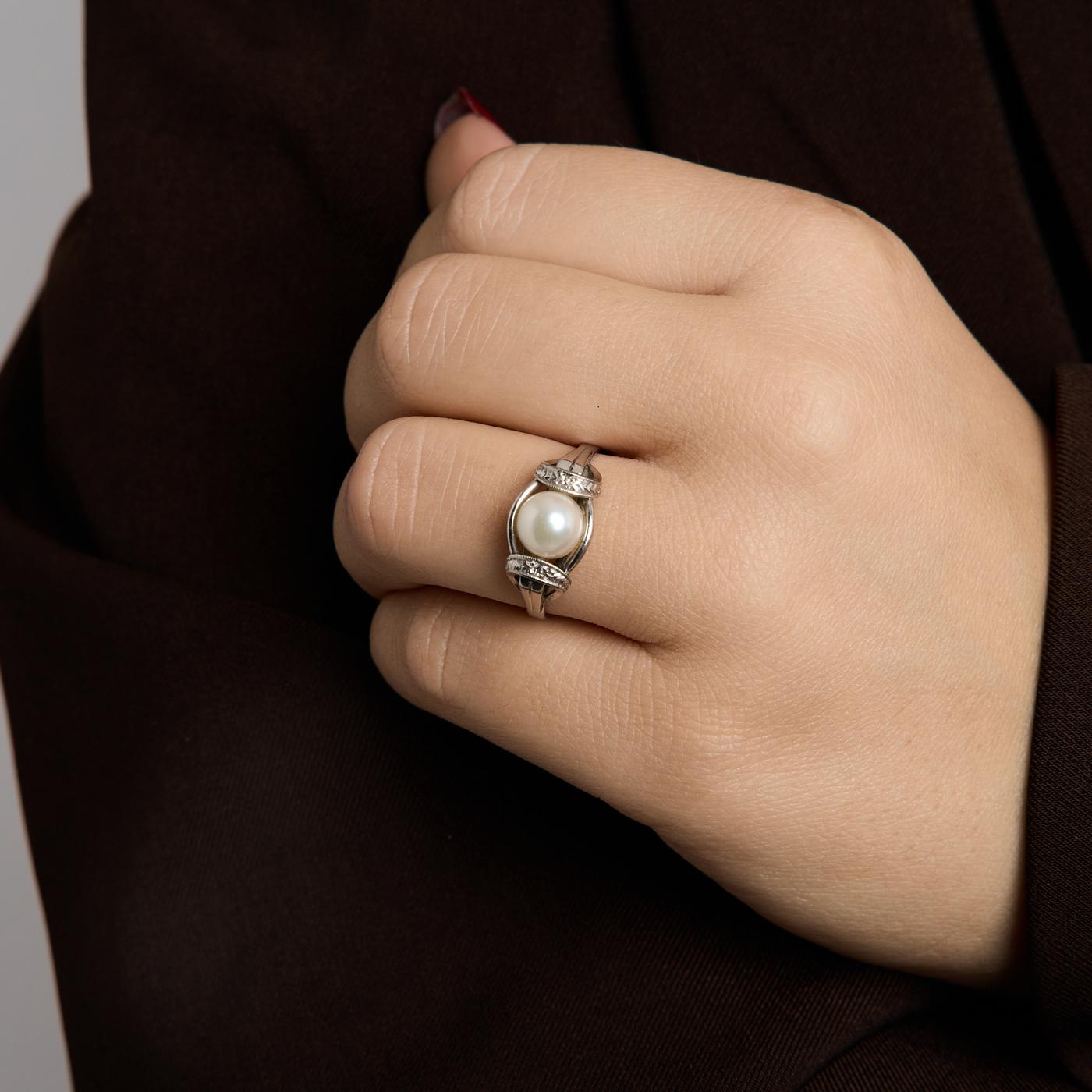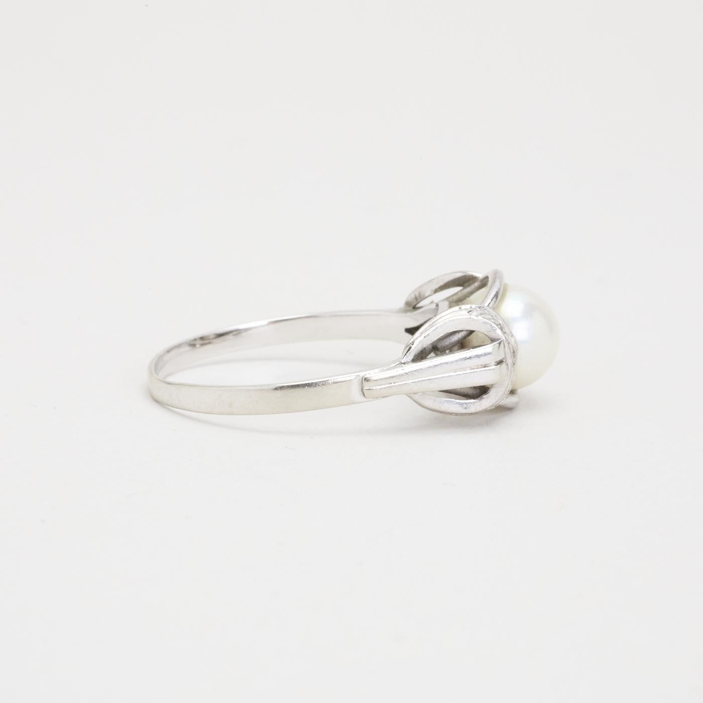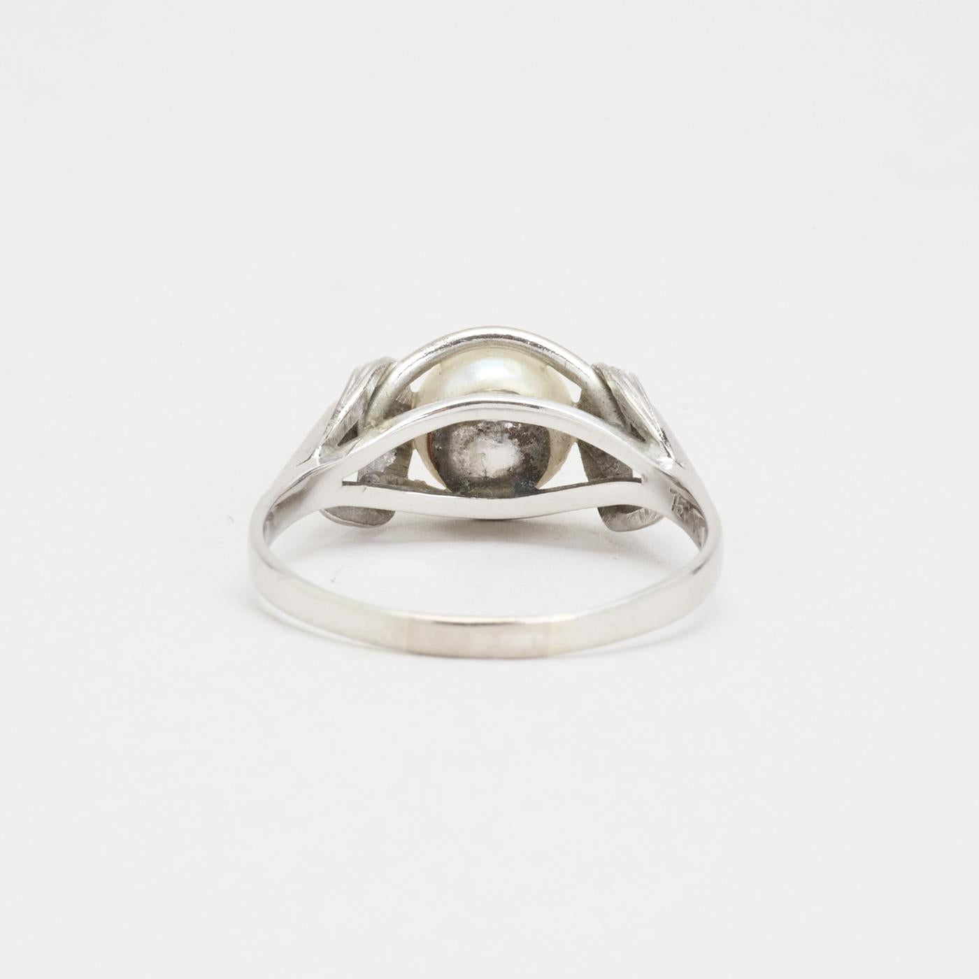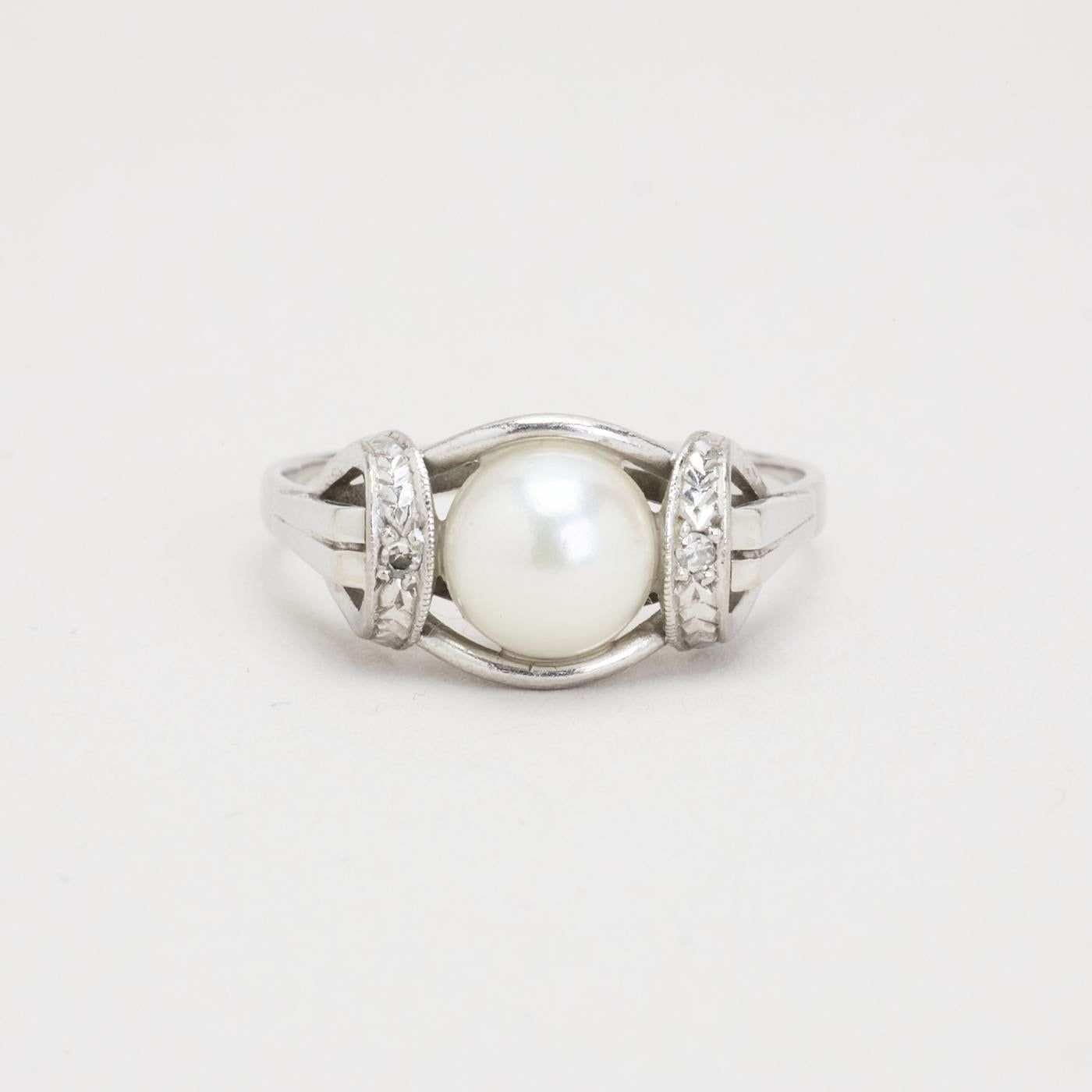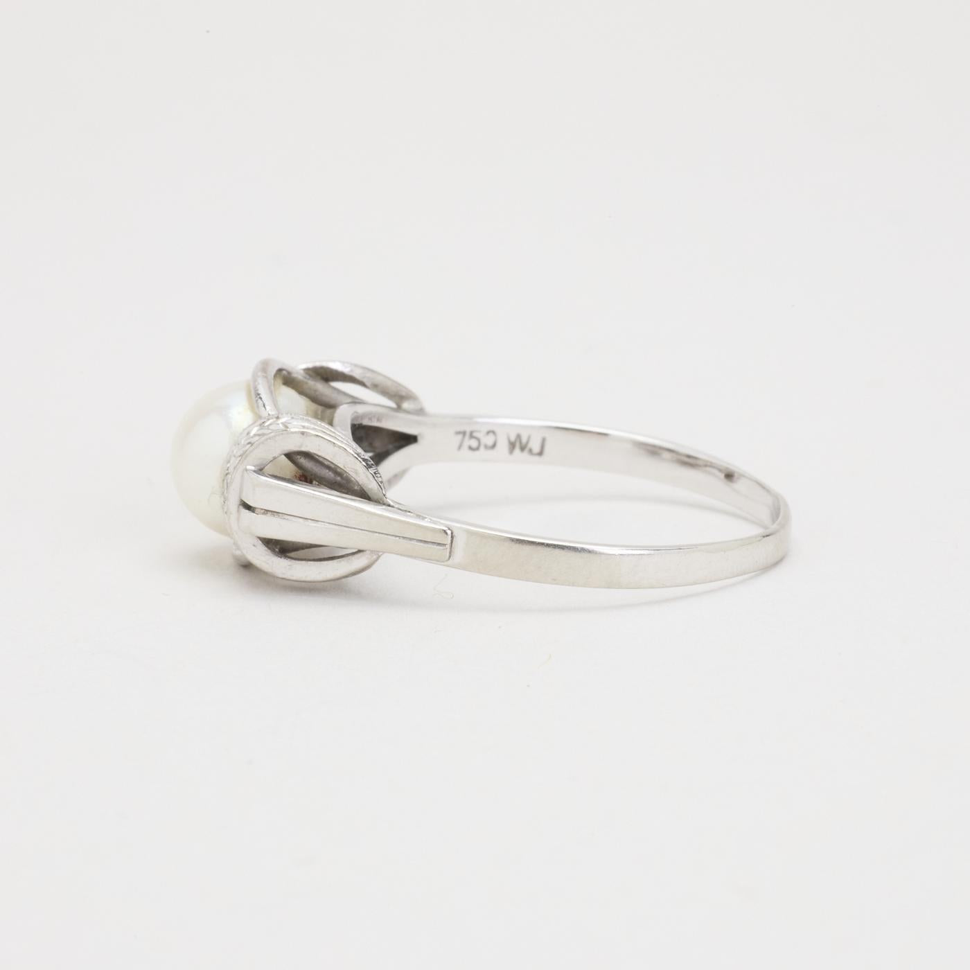 Perle ring i 18K hvidguld med diamant (0.02 ct), Str. 58