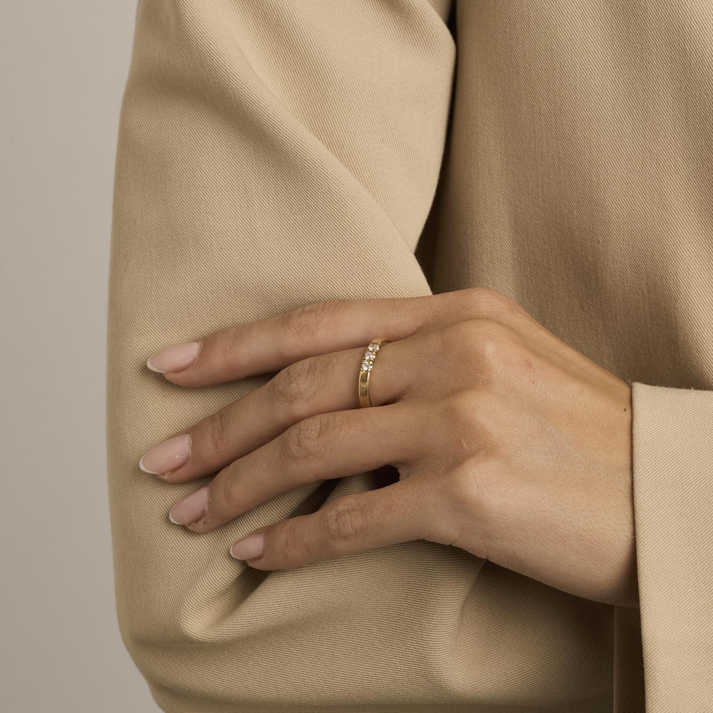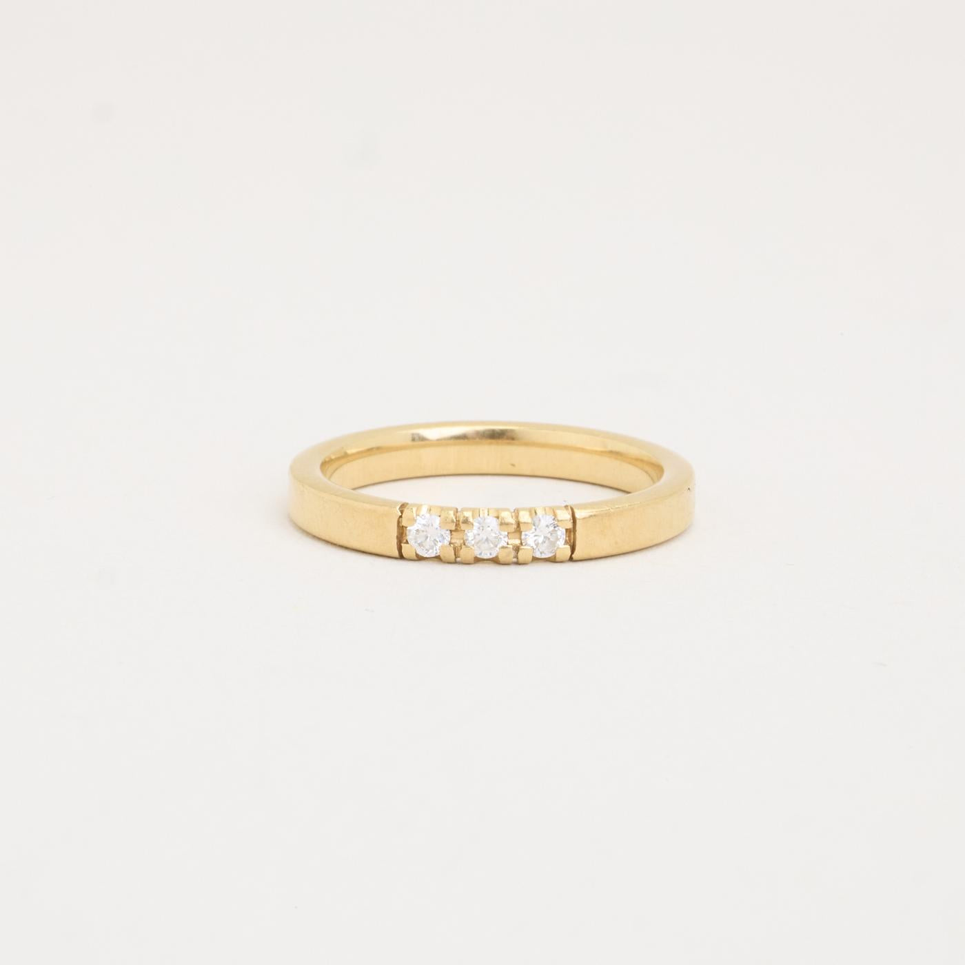 Alliancering i 14K guld med tre diamanter (0.11 ct), Str. 54