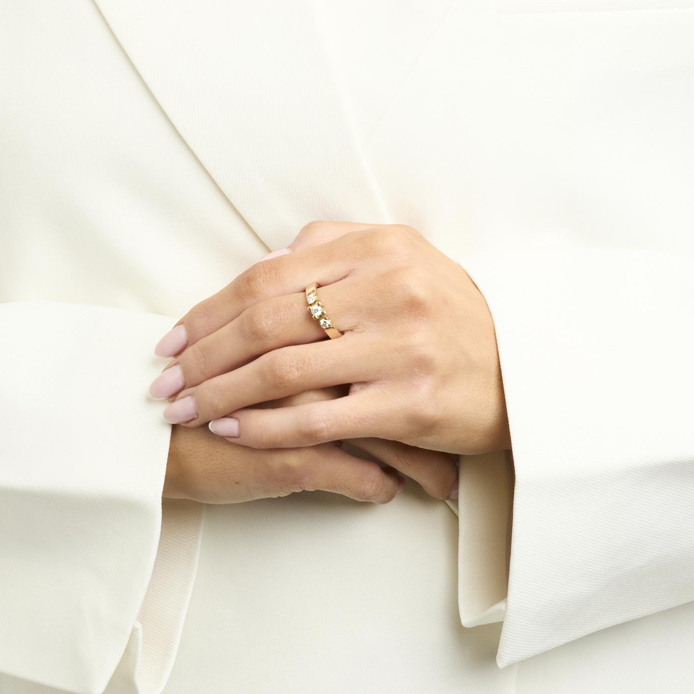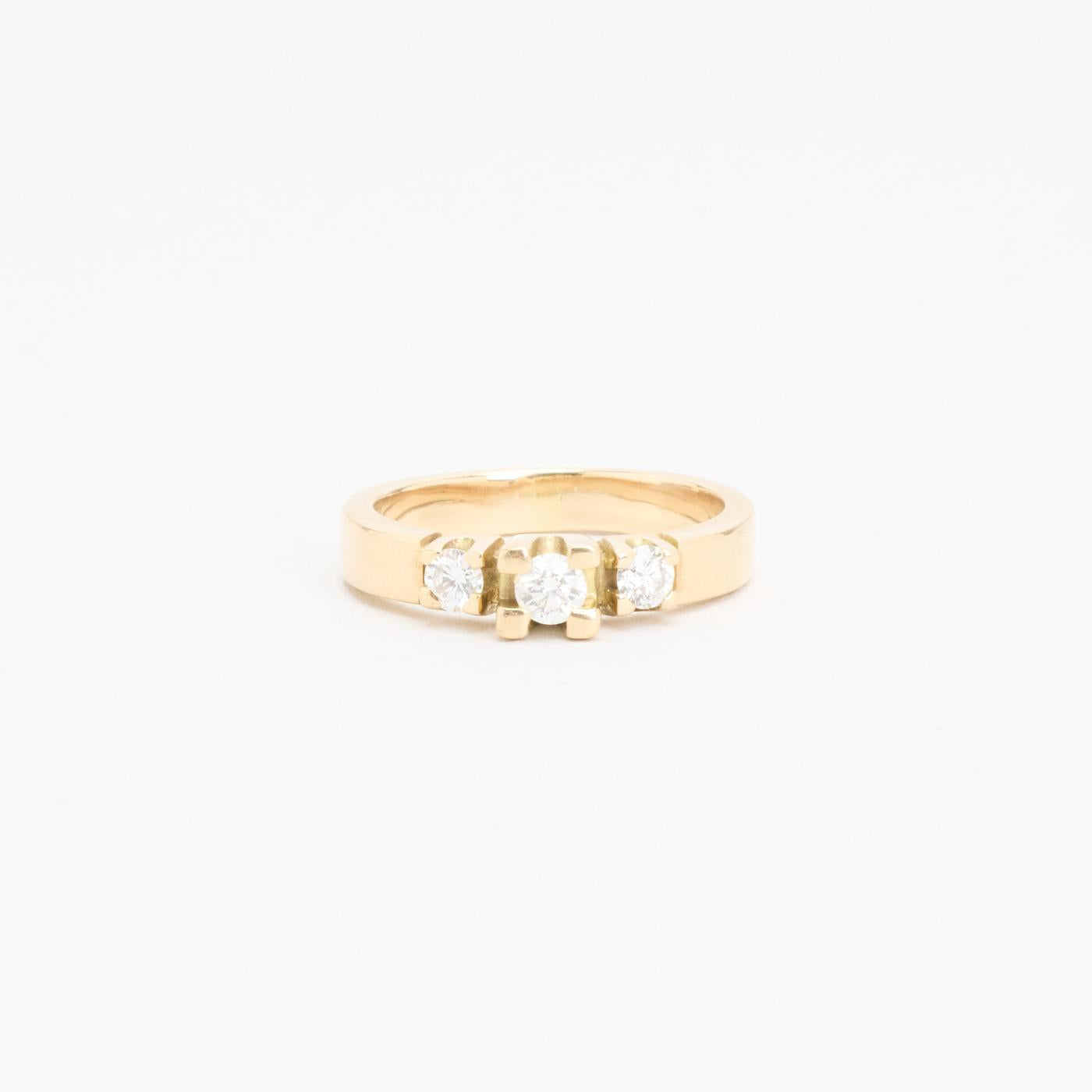 Trestensring i 14K guld, med diamanter (0,43 ct), Str. 54