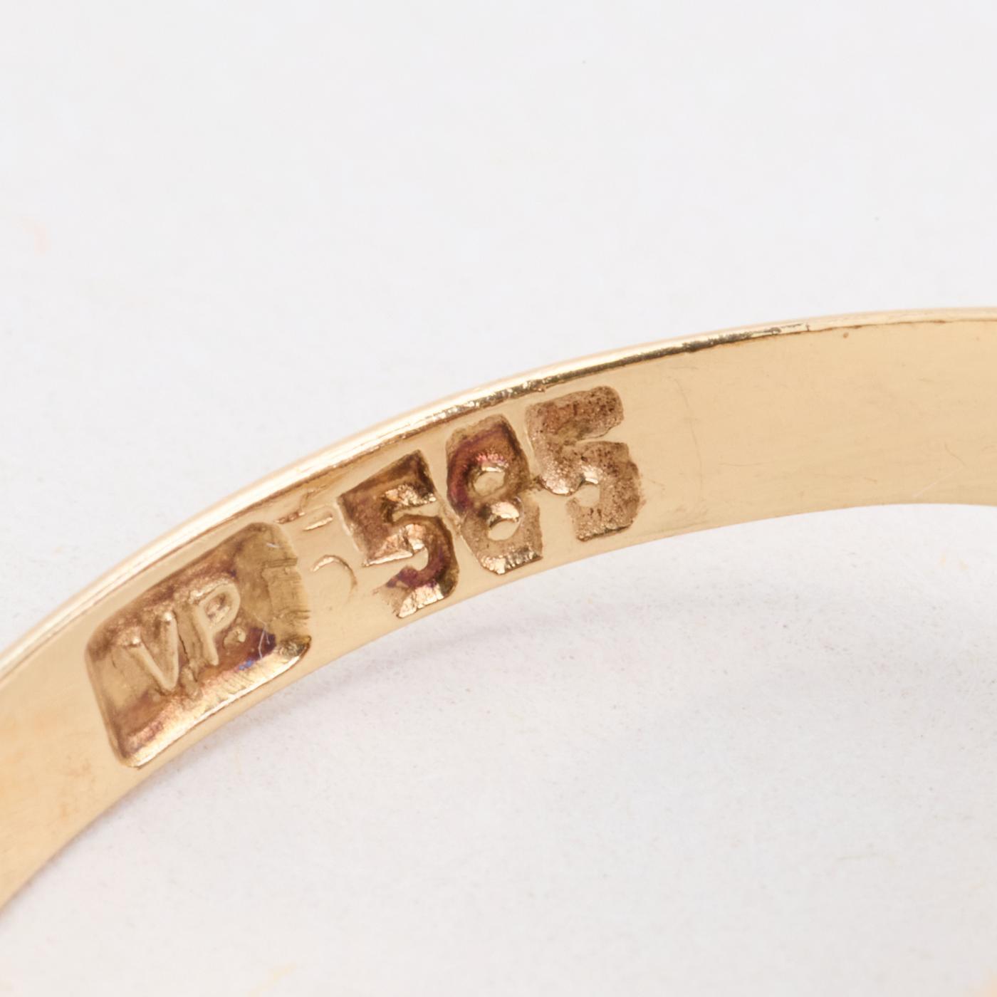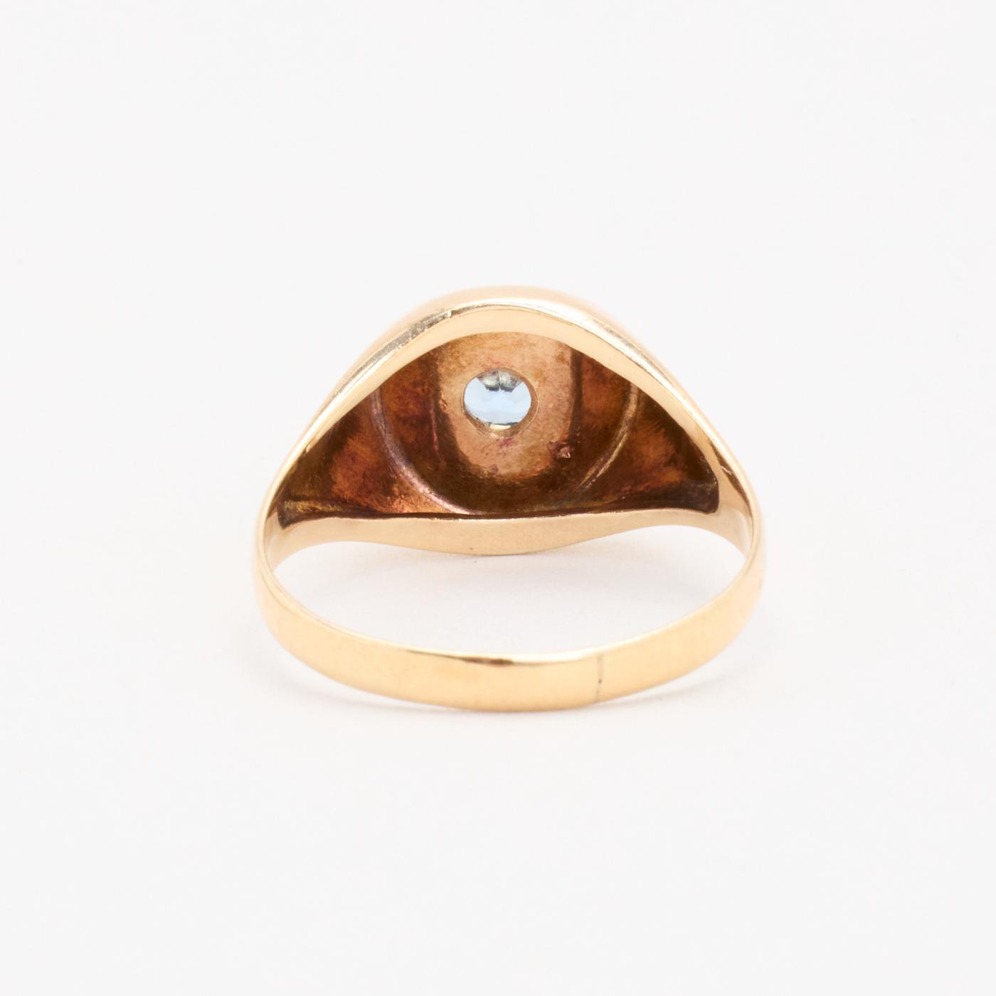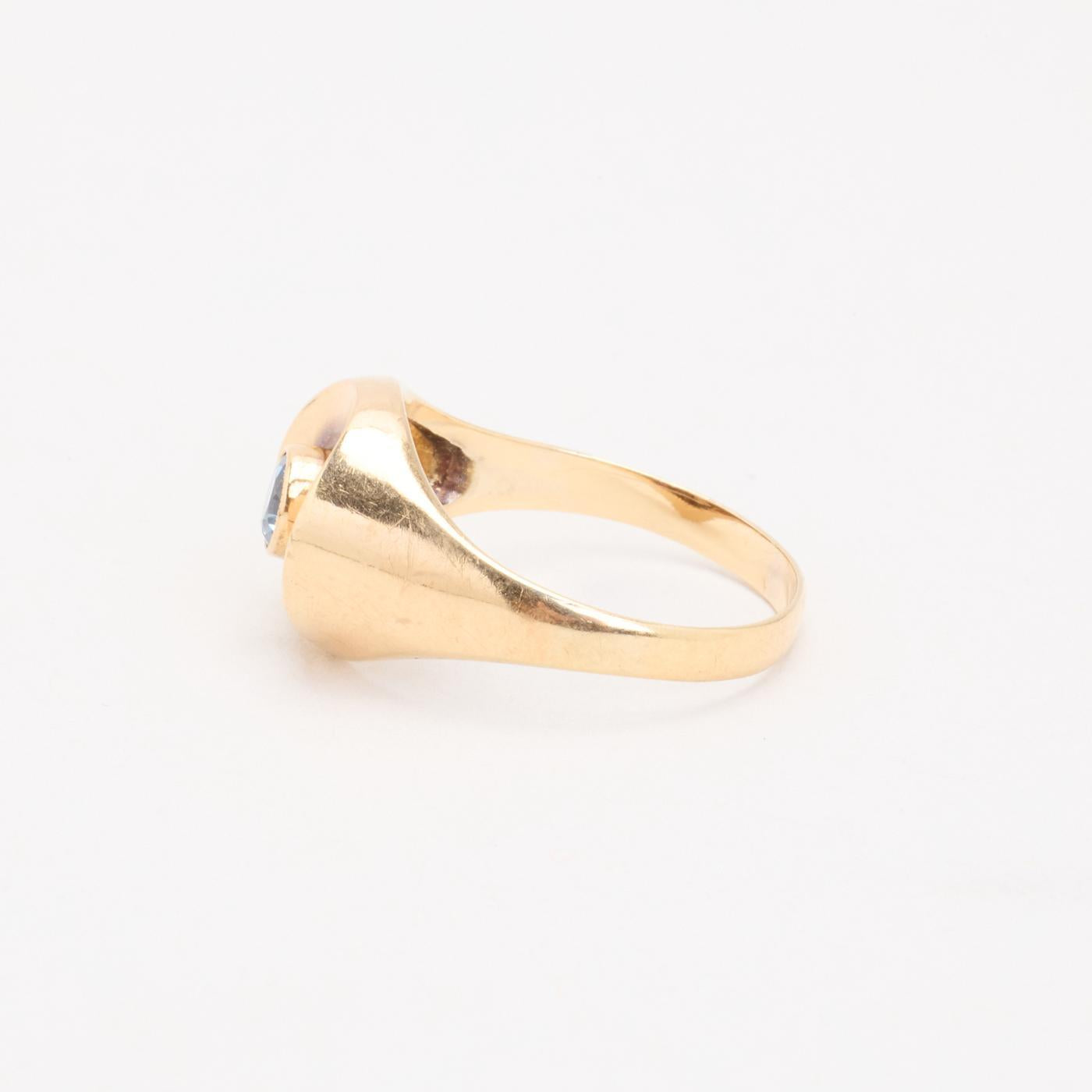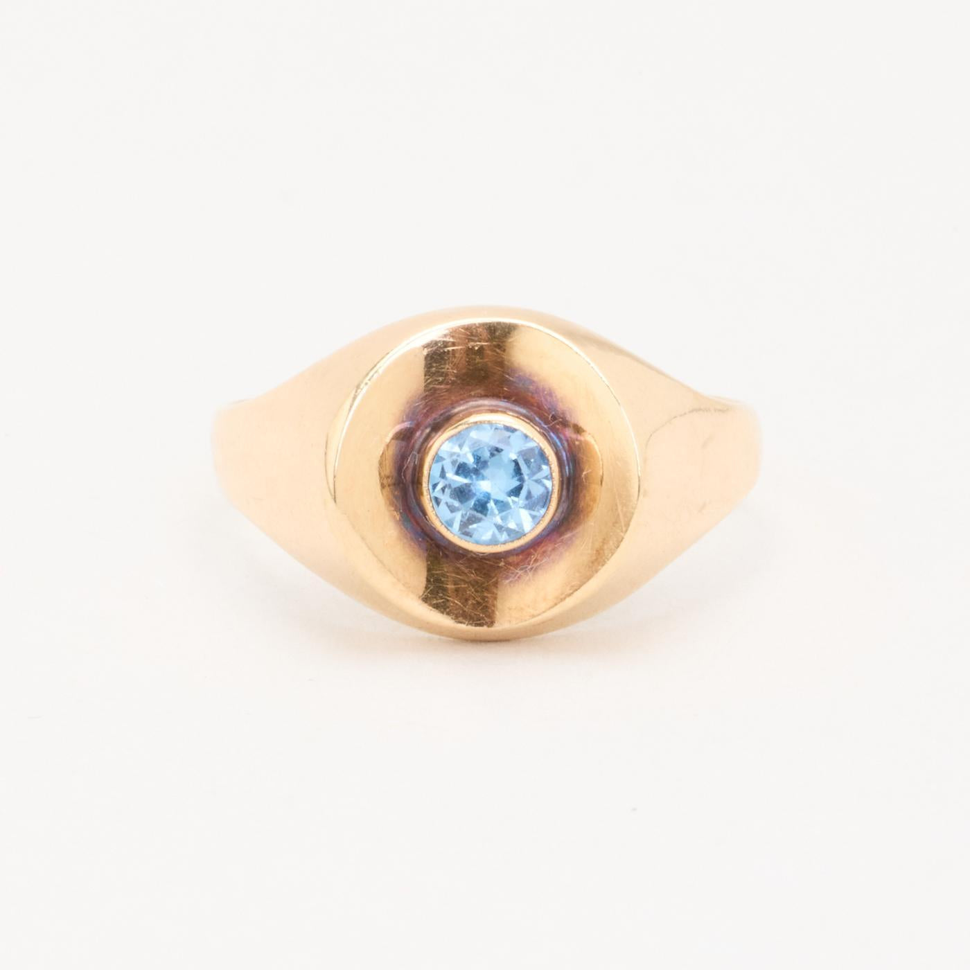 Signetring i 14K guld med lyseblå sten, Str. 54