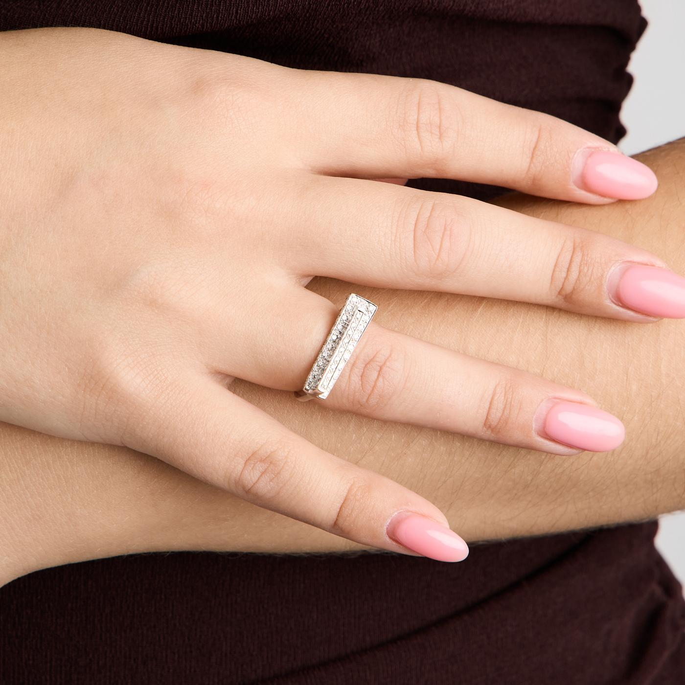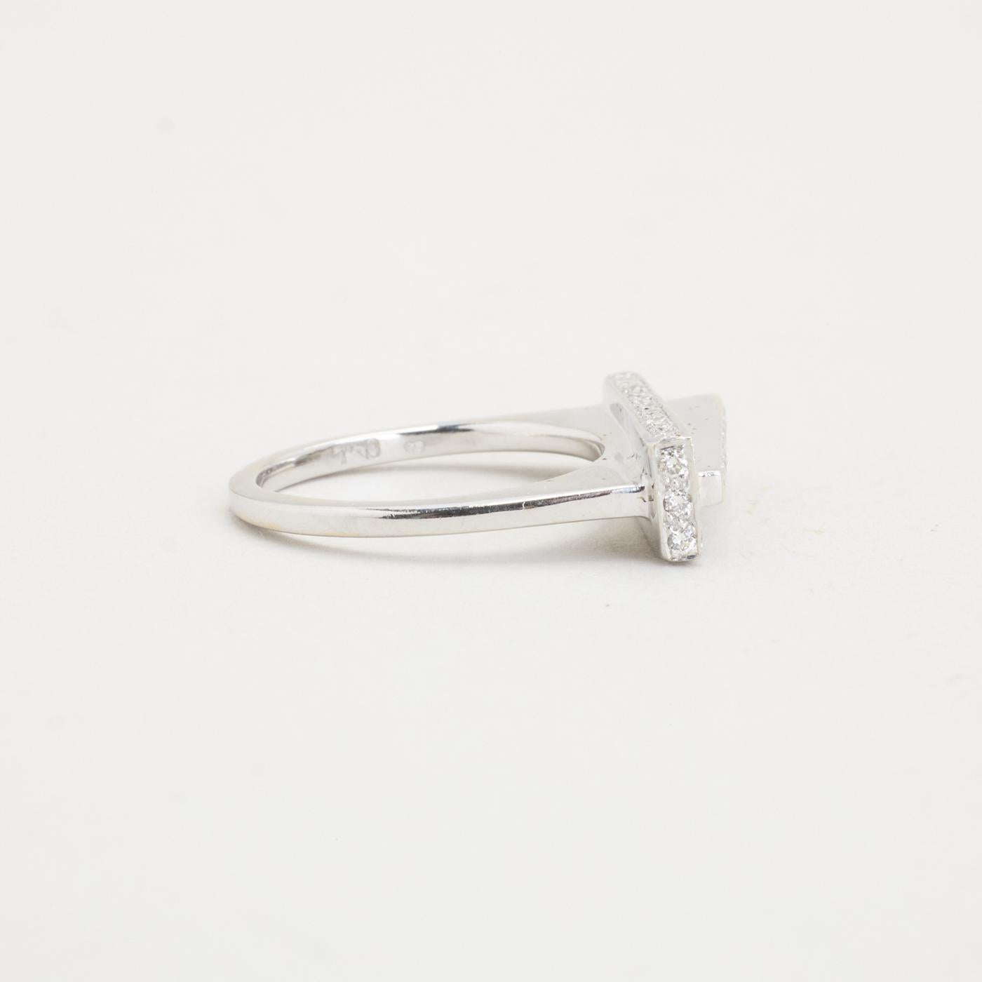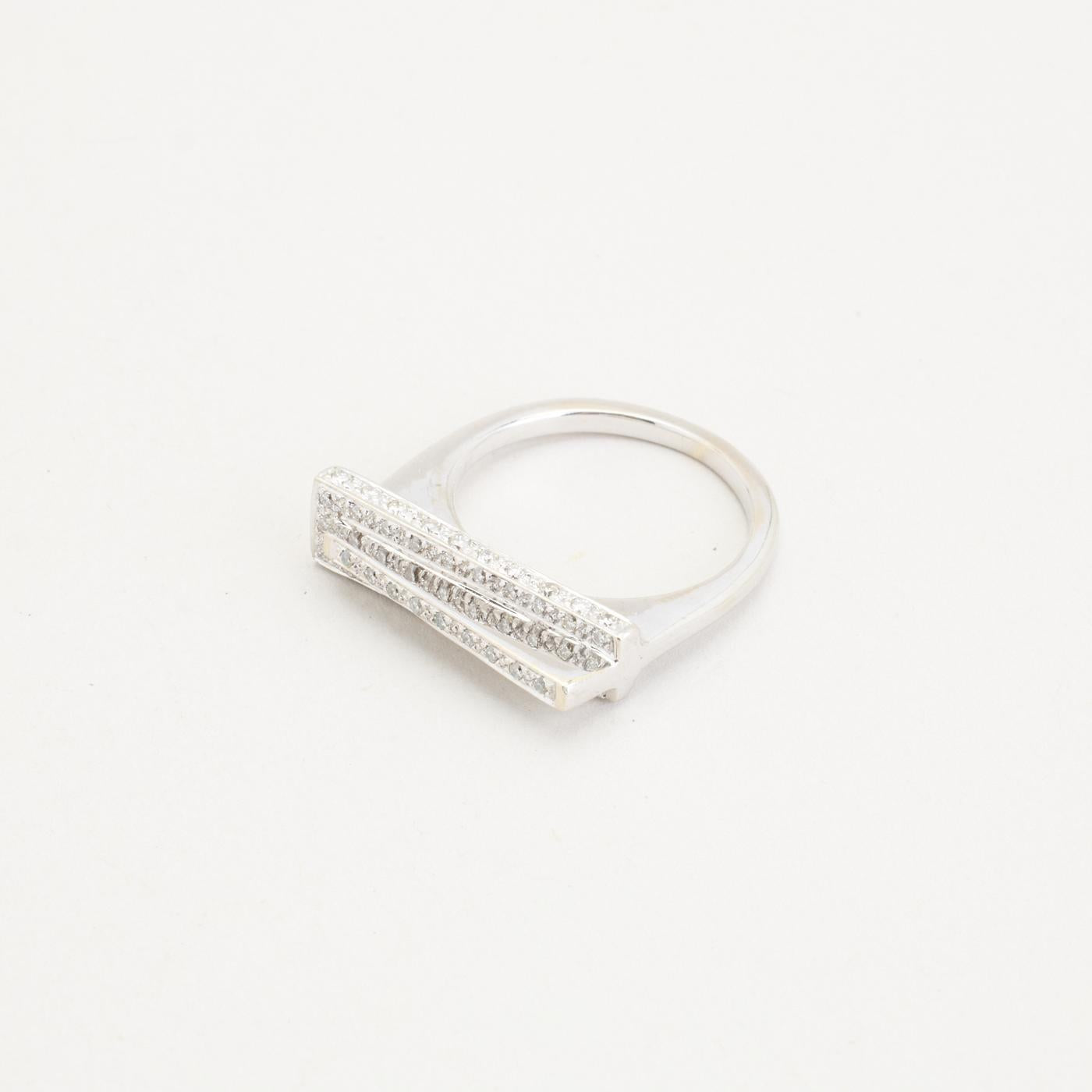 Geometrisk ring i 18K hvidguld, med diamanter (0,39 ct), Str. 52