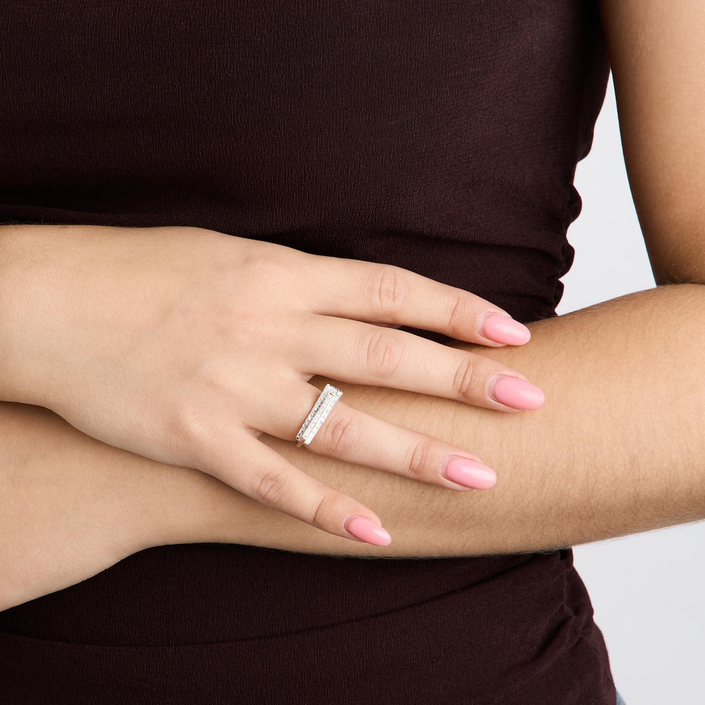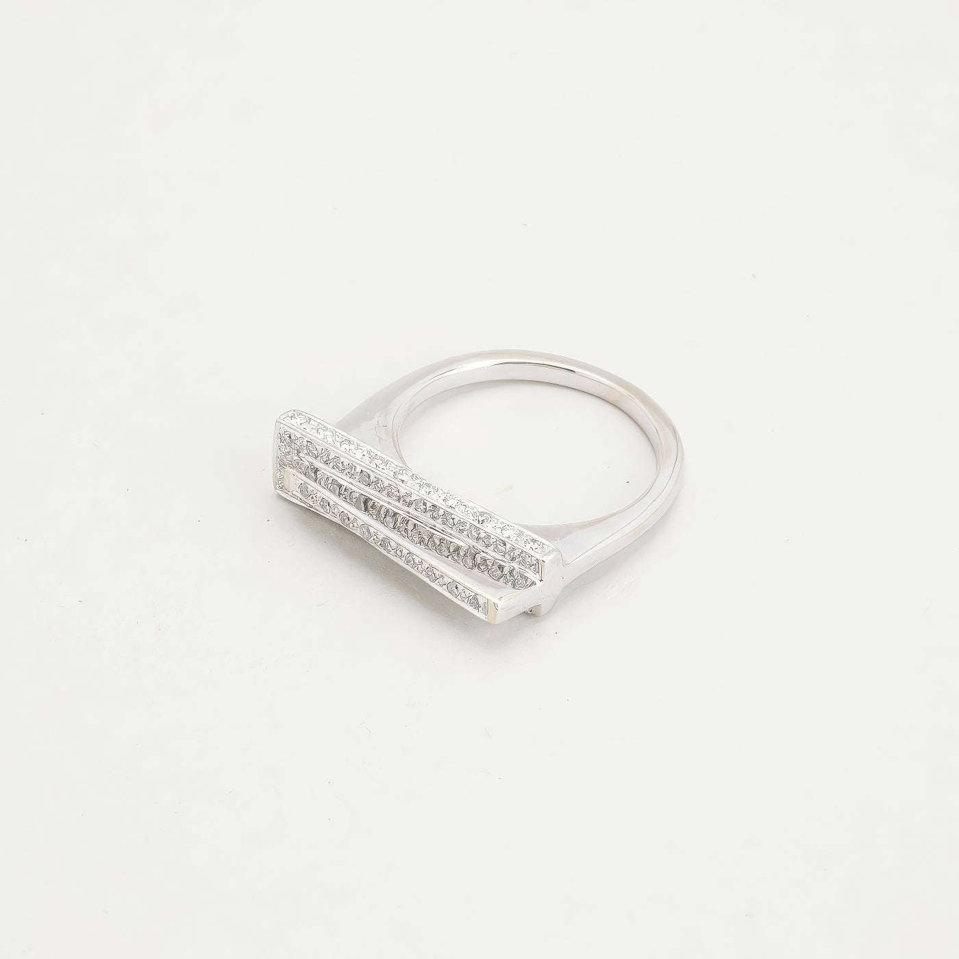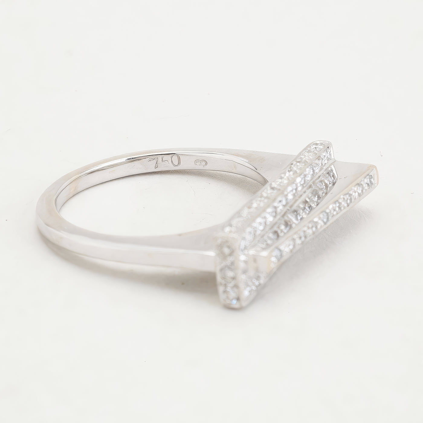 Geometrisk ring i 18K hvidguld, med diamanter (0,39 ct), Str. 52
