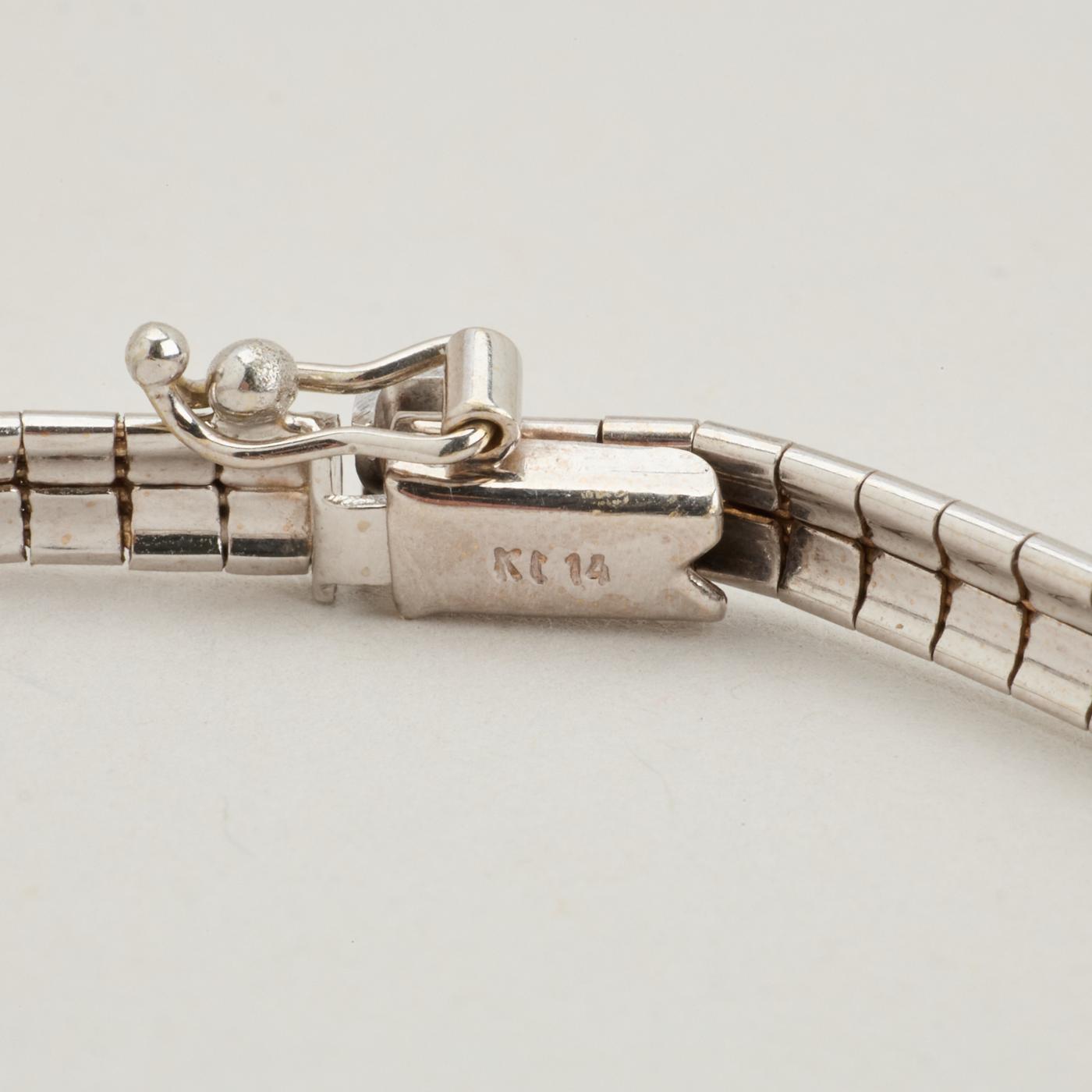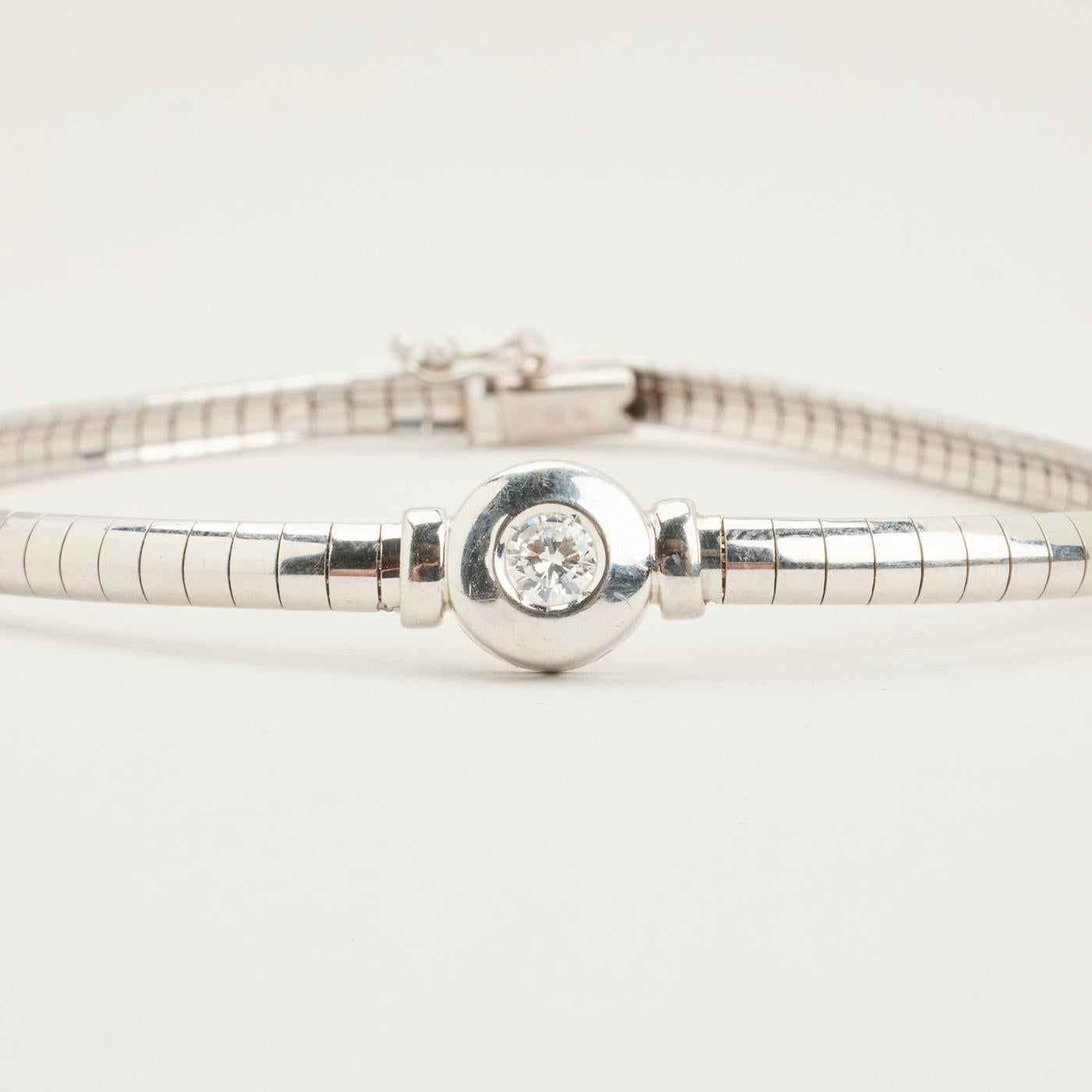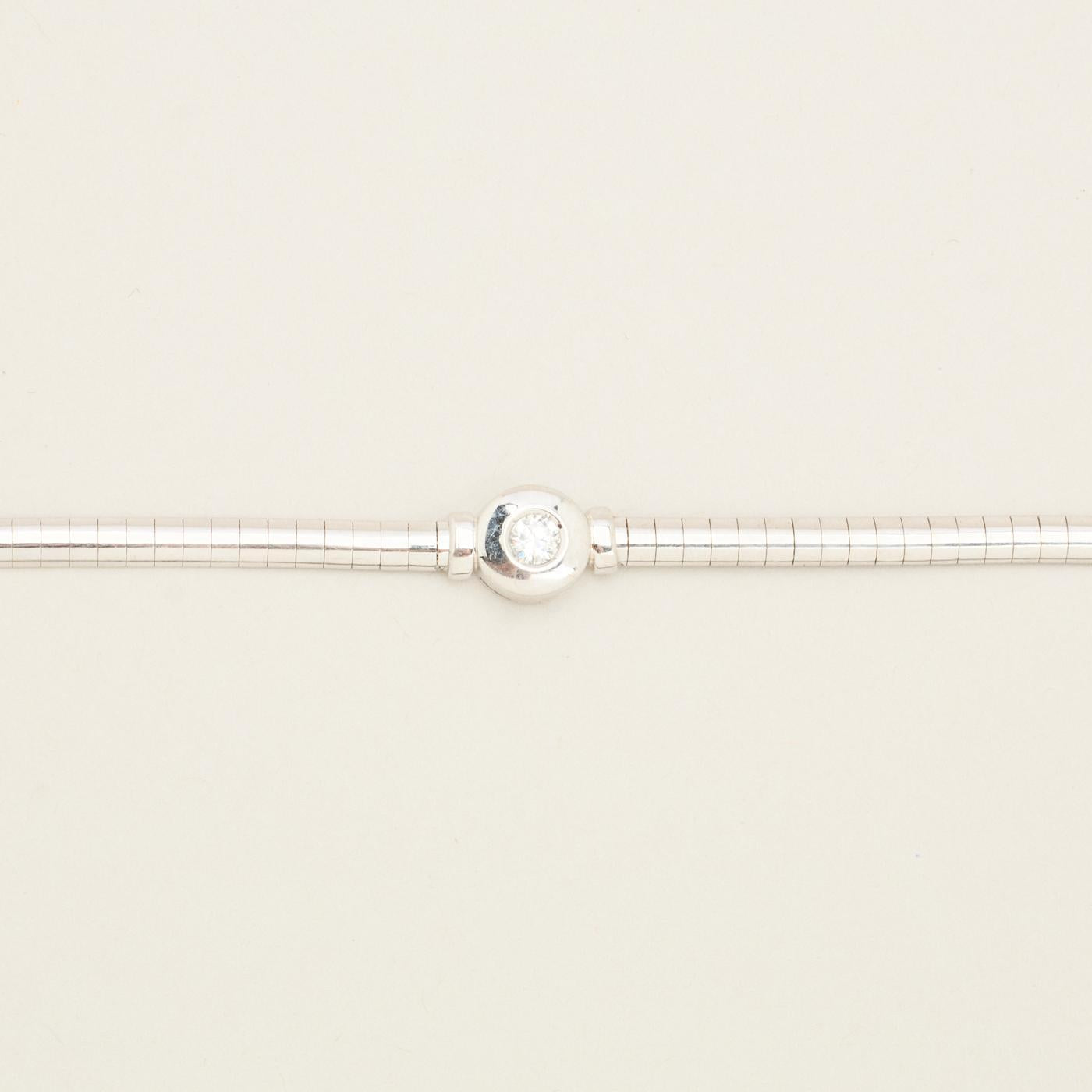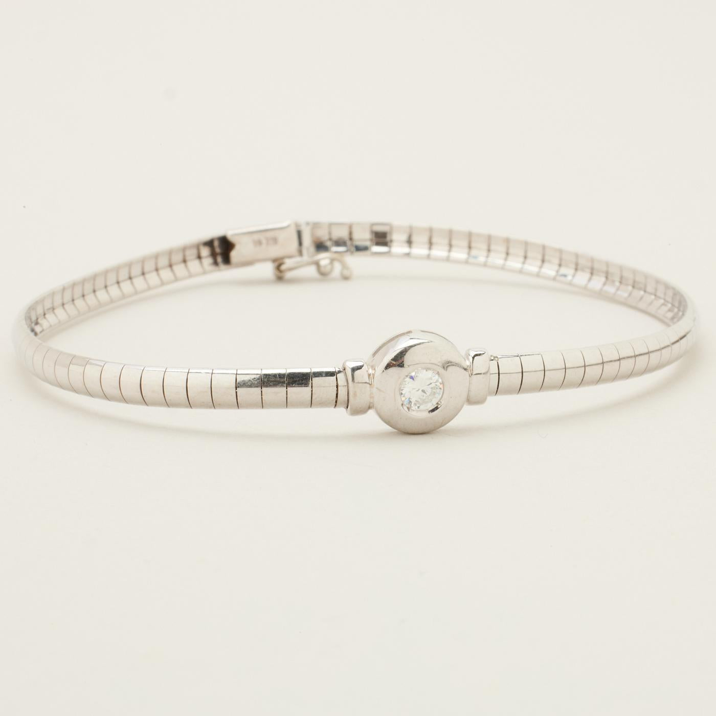 Rørkæde armbånd i 14K hvidguld, med diamant (0,19 ct), 20 cm, kasselås med sikkerhedslås
