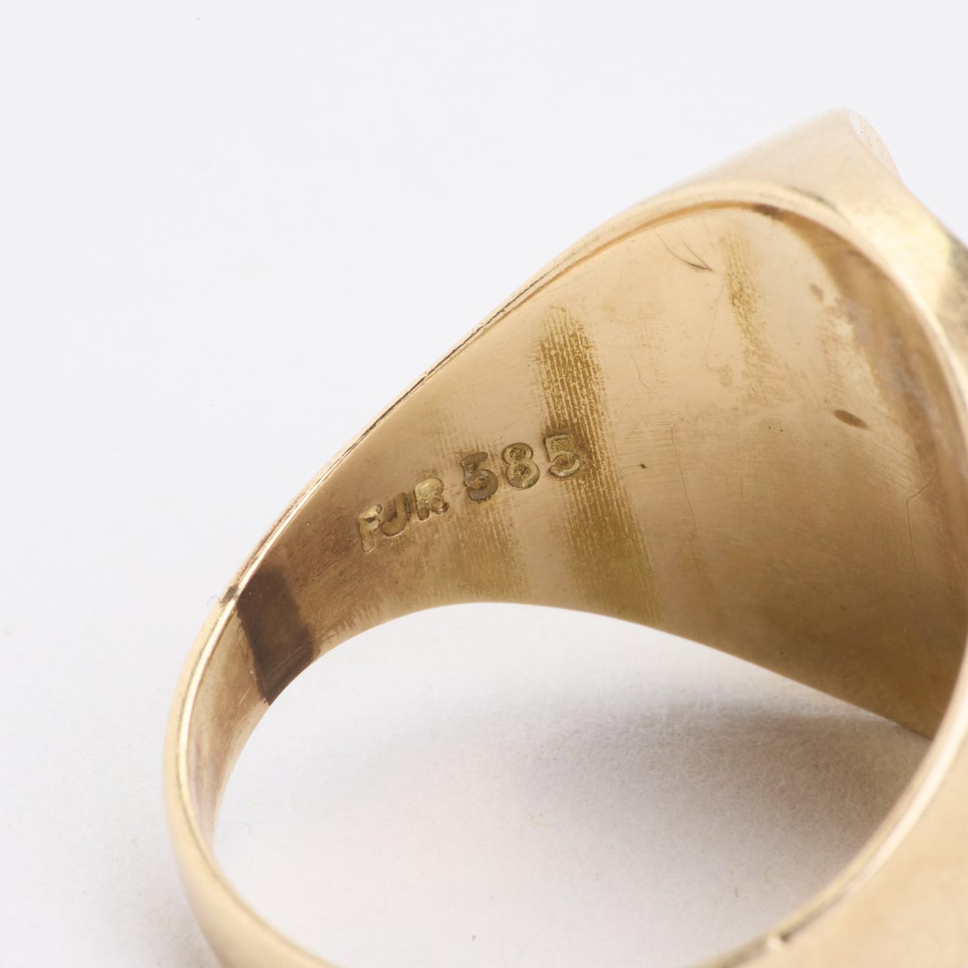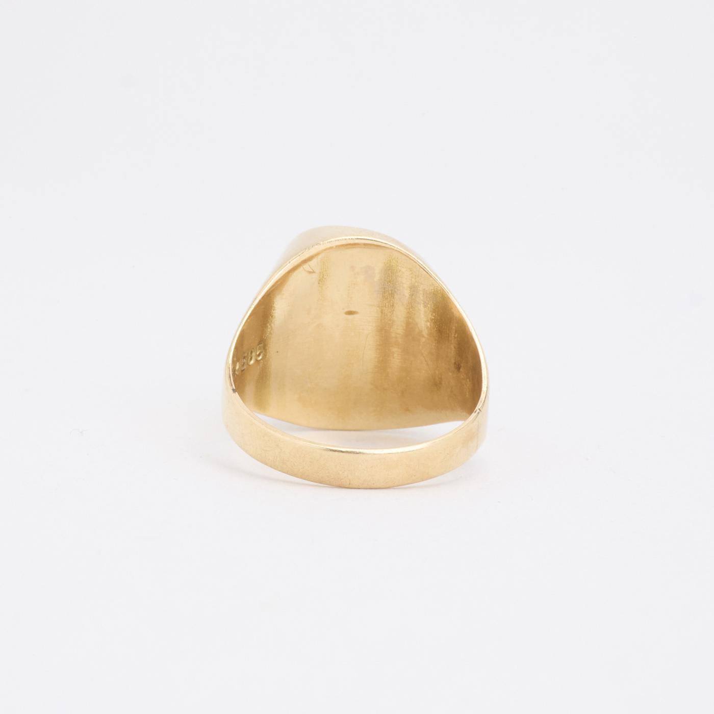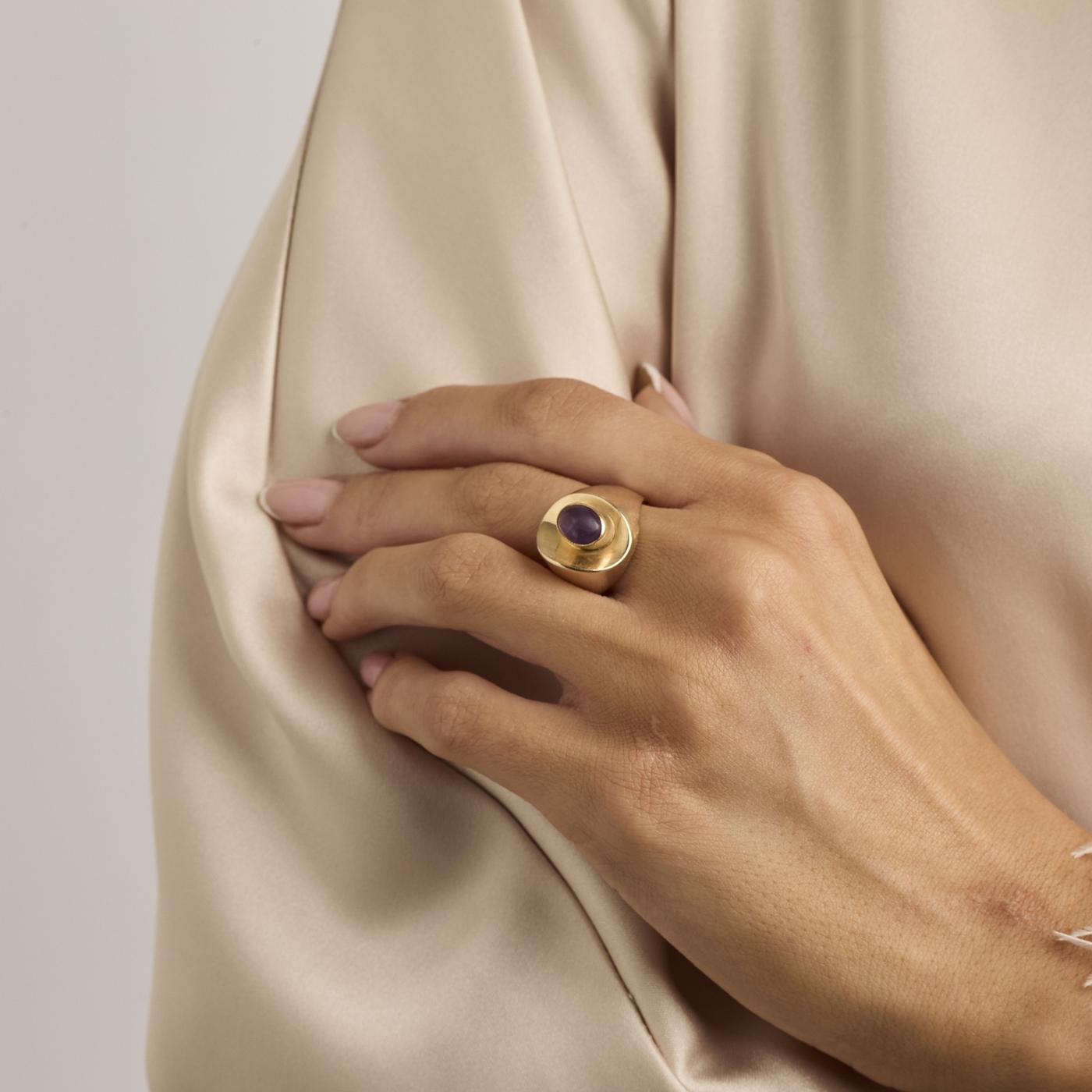 Signetring i 14K guld med cabochonsleben violet sten, Str. 54